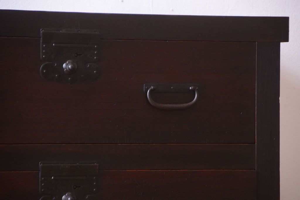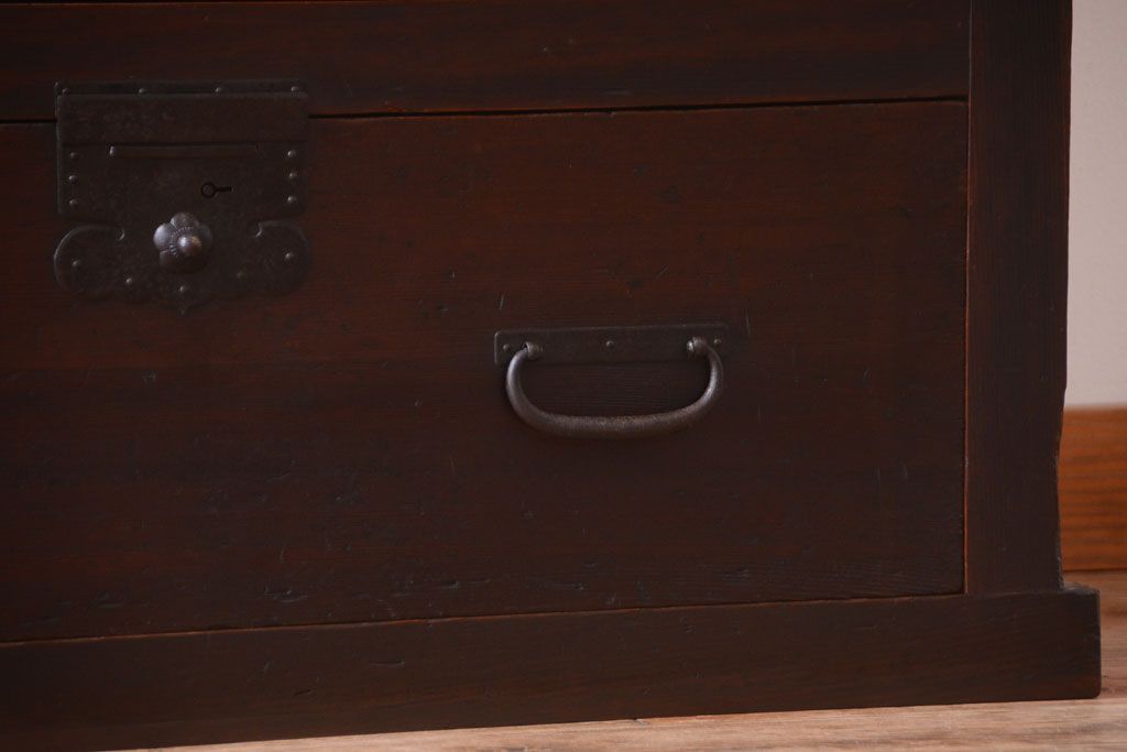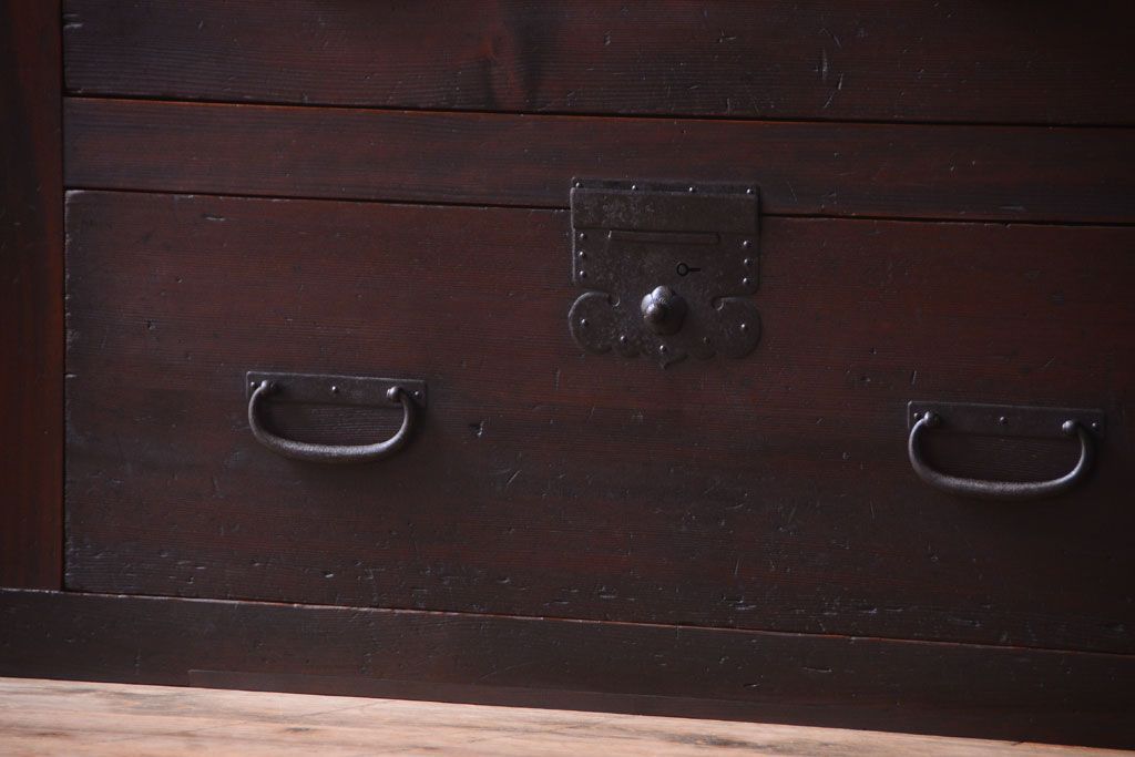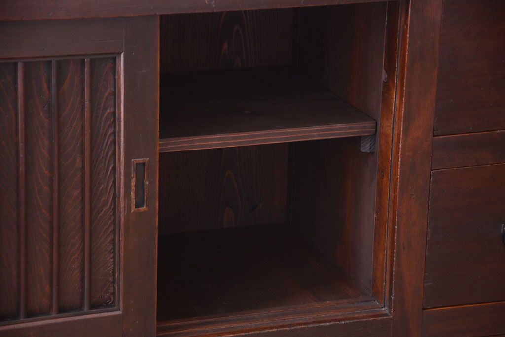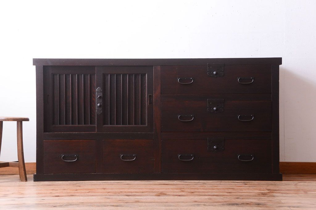 和箪笥 > アンティーク家具 古民具・骨董 明治期 和モダンスタイル!収納箪笥ローボード(水屋箪笥、テレビ台、キャビネット、収納棚)(2)