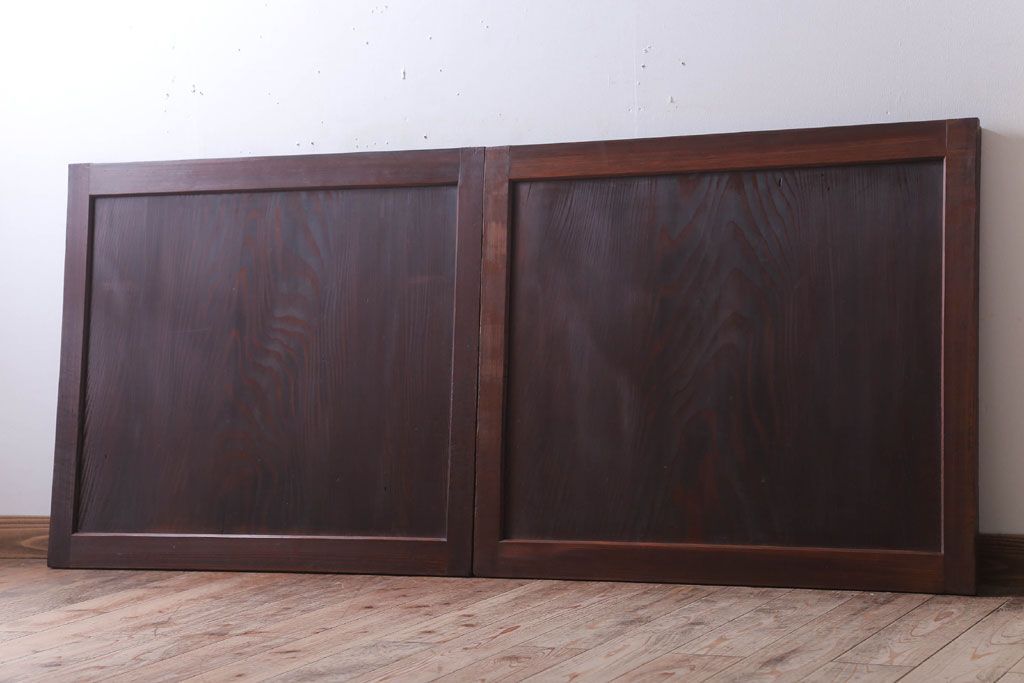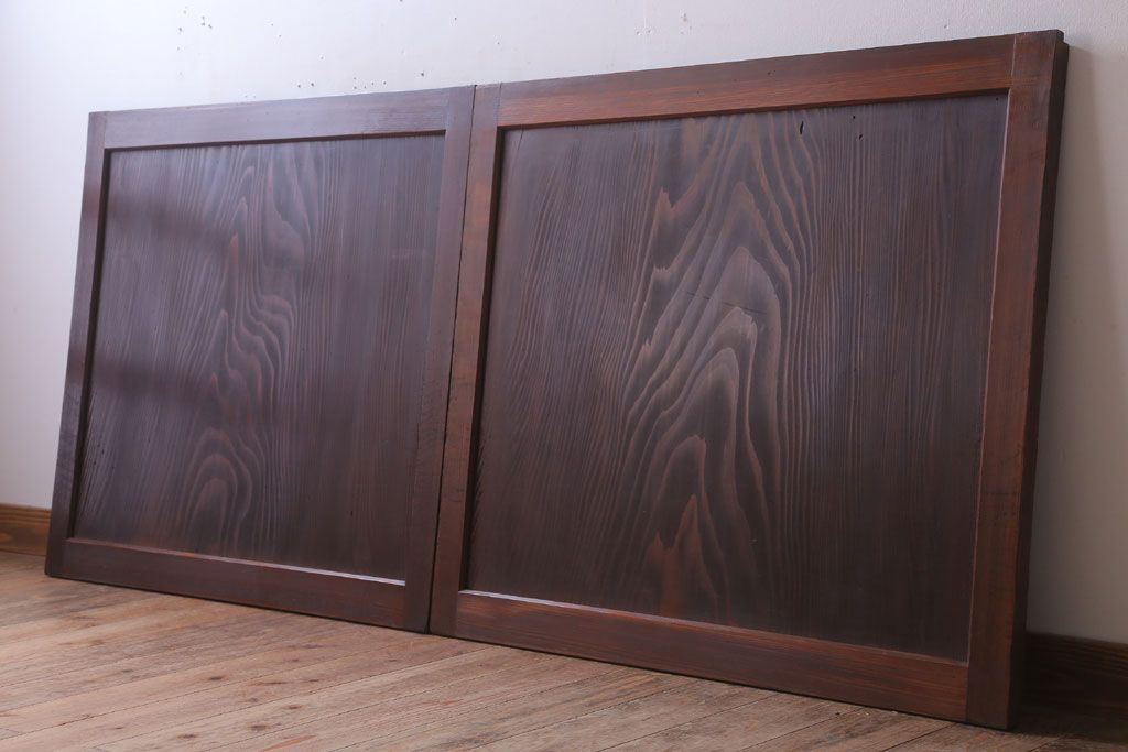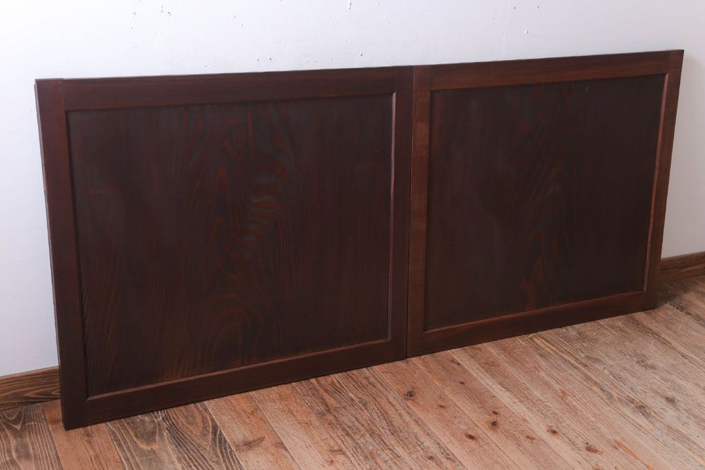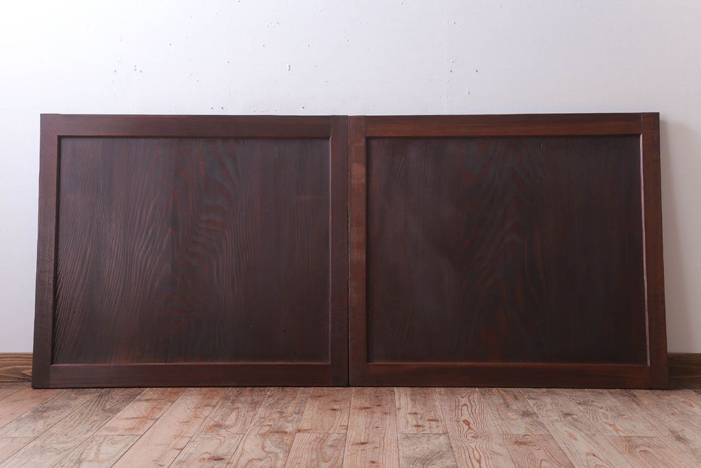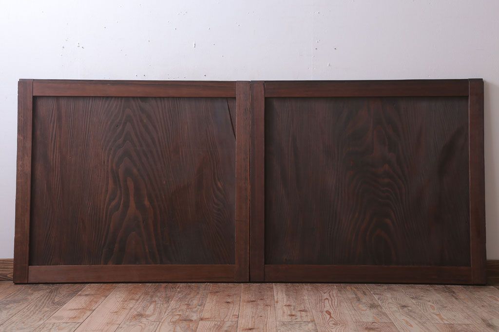 古民具・骨董 明治〜大正期 杉材一枚板!シンプルな板戸2枚セット(小窓)