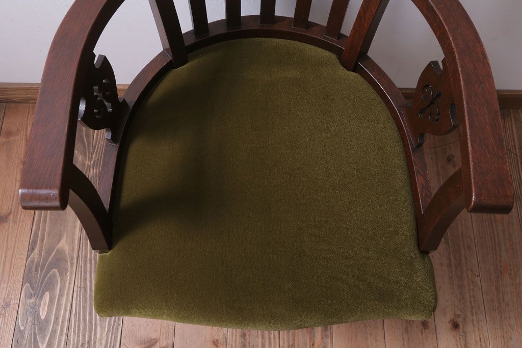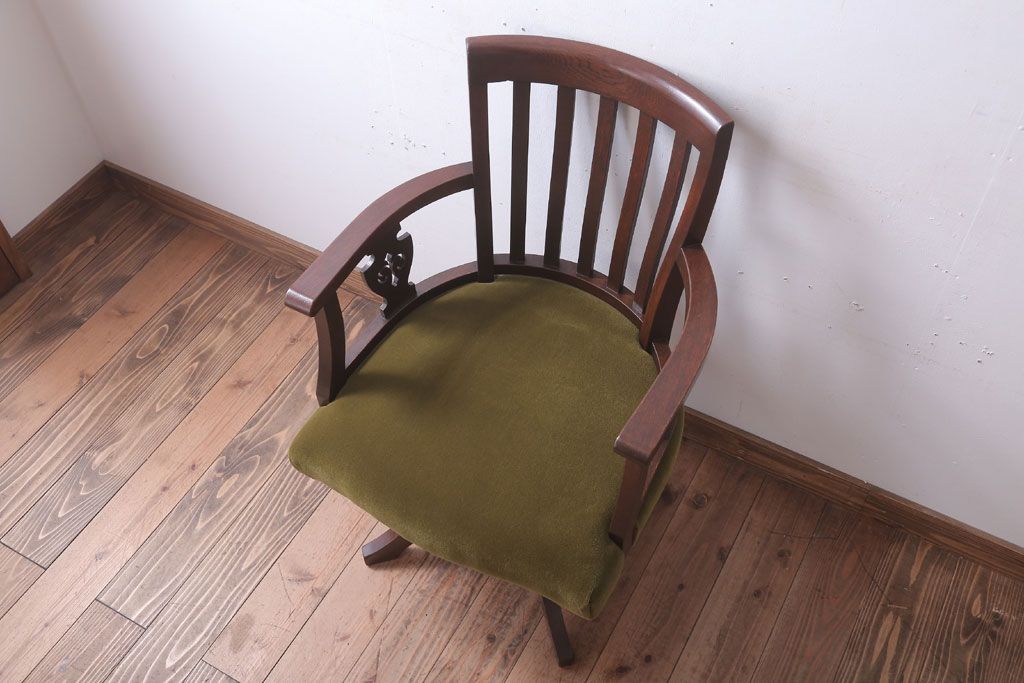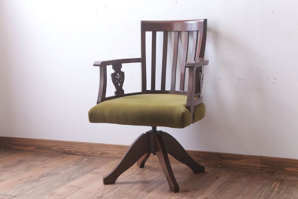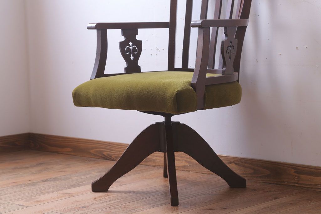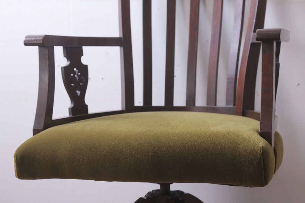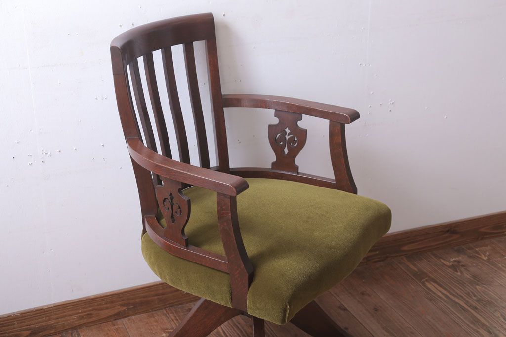 アンティーク家具 和製アンティーク 明治〜大正期 透かし彫り!アーム付きのシックな回転椅子