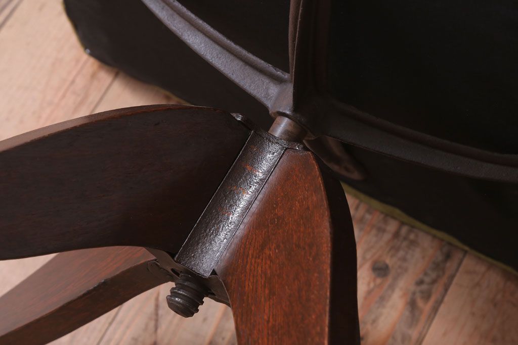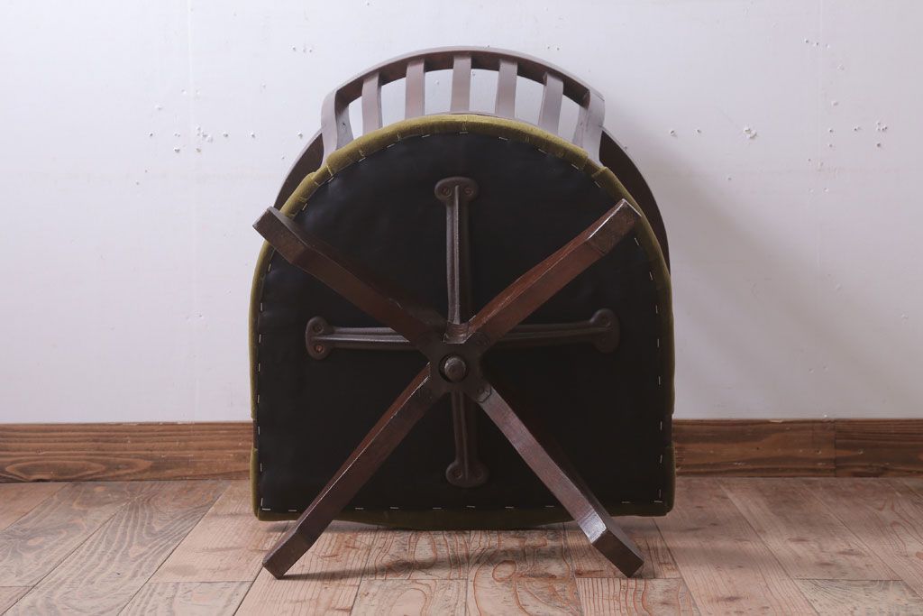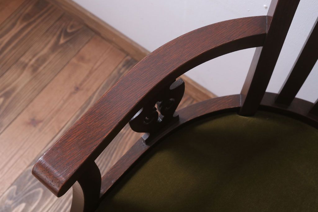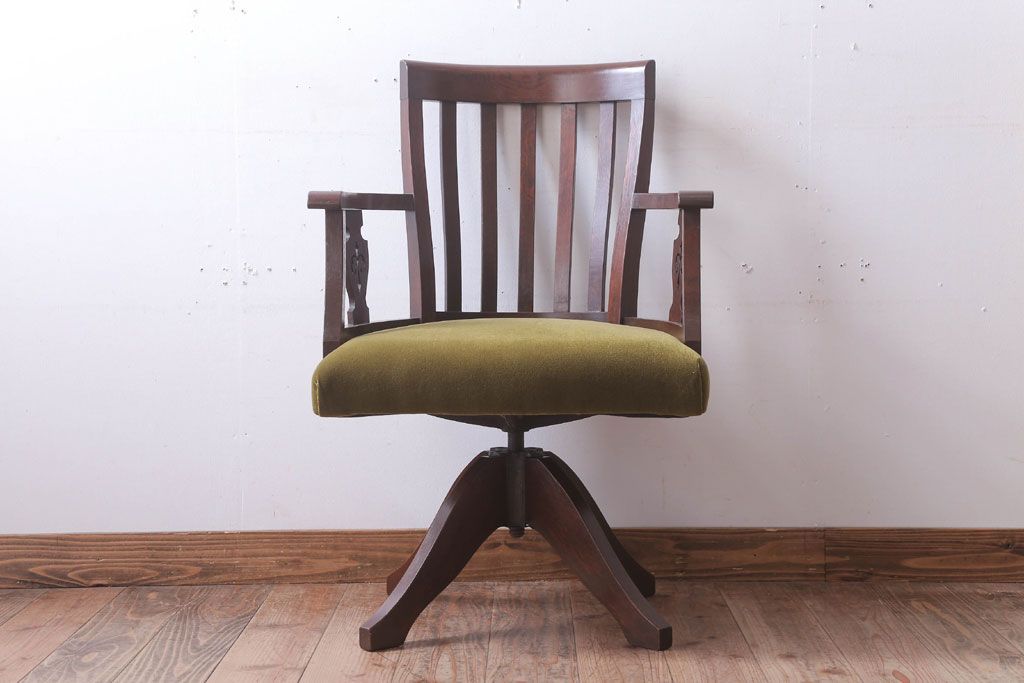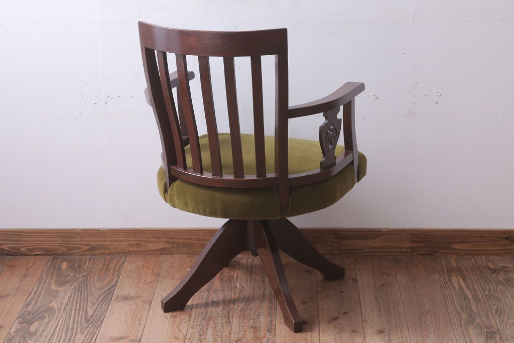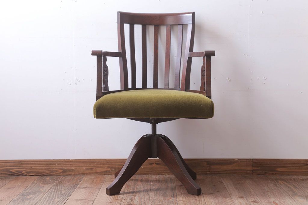 アンティーク家具 和製アンティーク 明治〜大正期 透かし彫り!アーム付きのシックな回転椅子