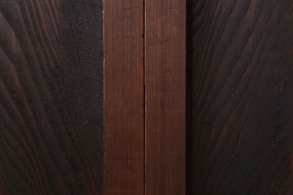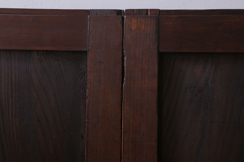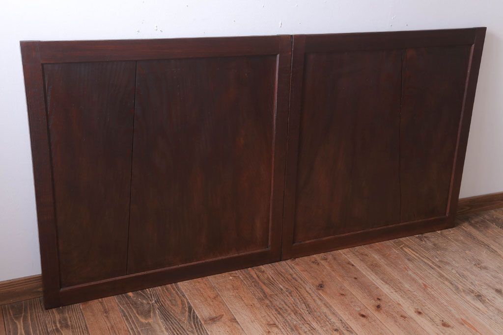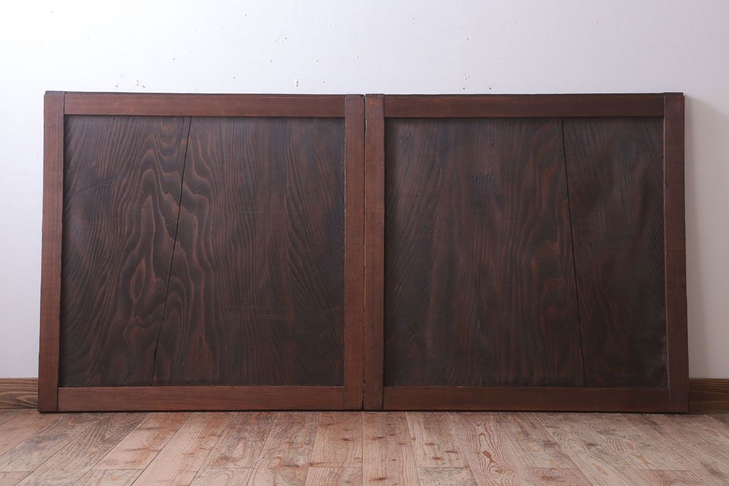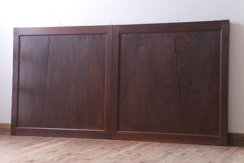 古民具・骨董 明治〜大正期 総杉材!シンプルな板戸2枚セット(小窓)(1)