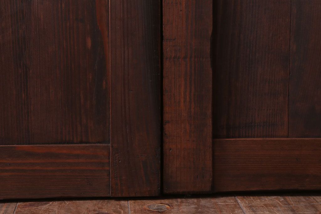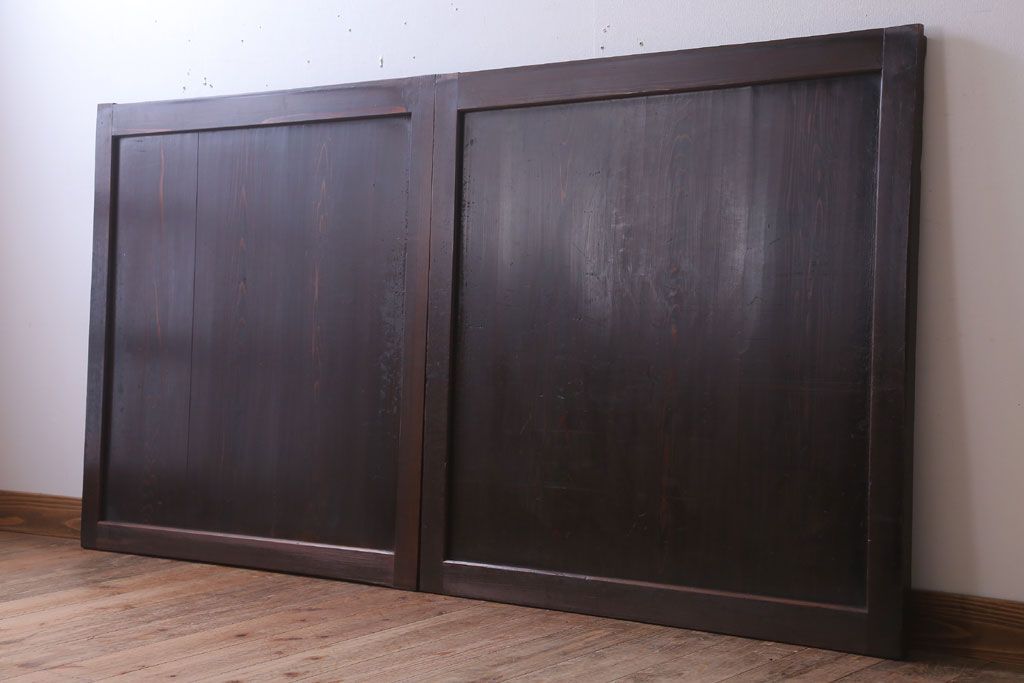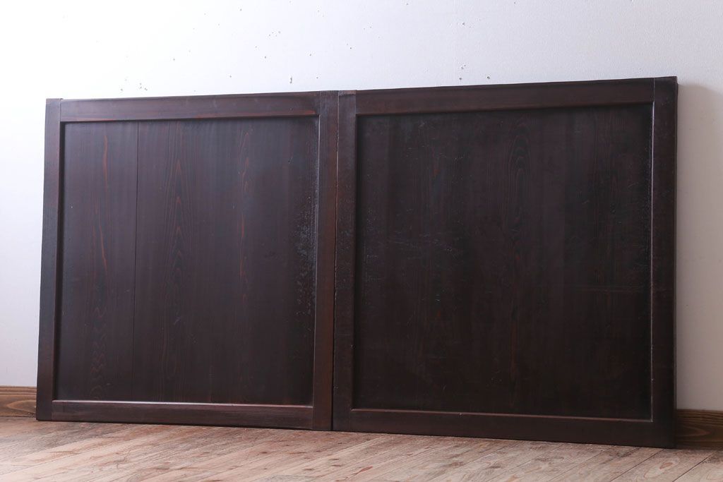古民具・骨董 明治〜大正期 総杉材!シンプルな板戸2枚セット(小窓)(2)