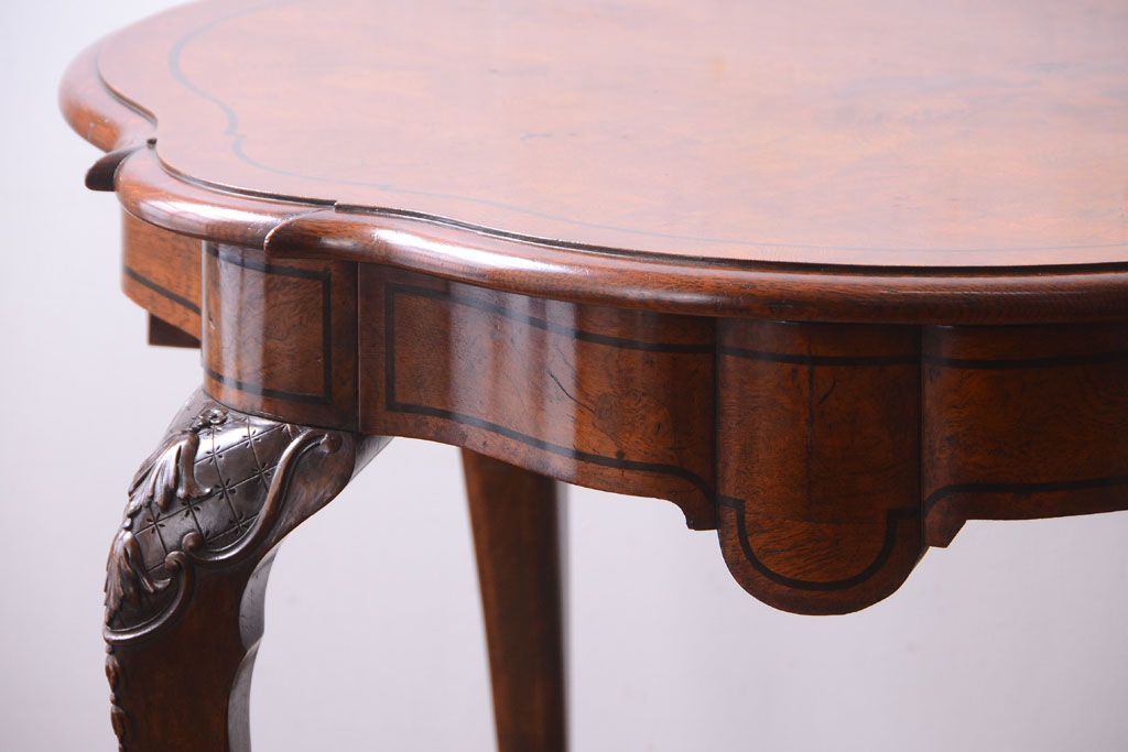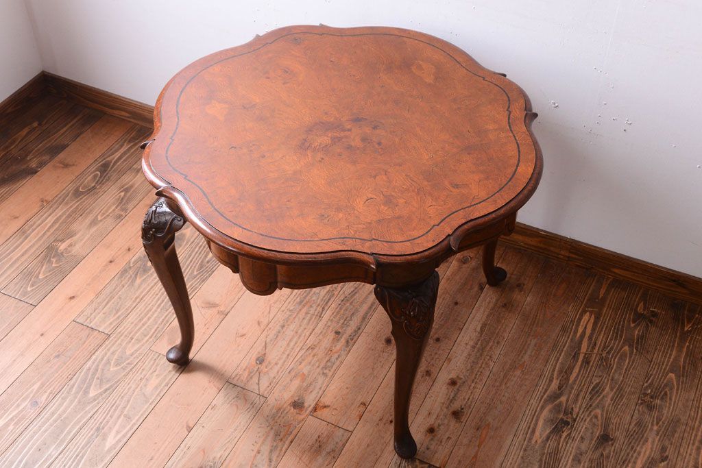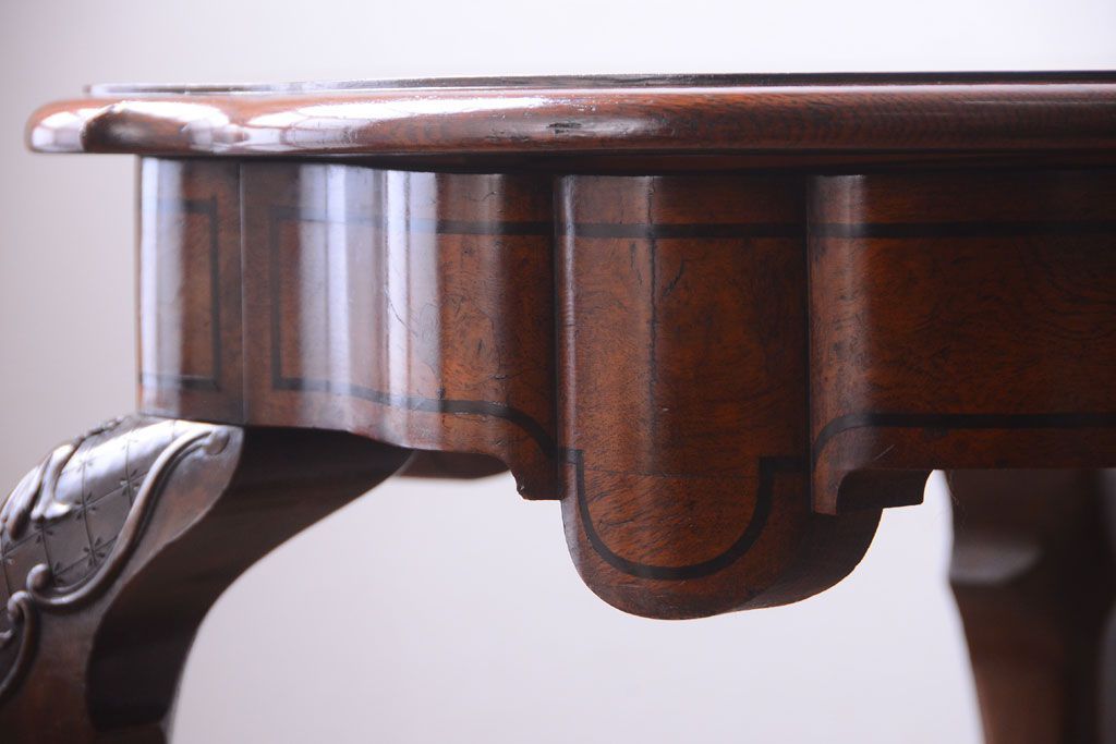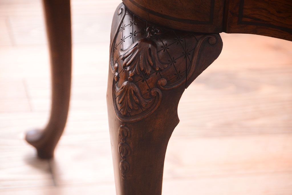 テーブル > アンティーク家具 イギリスアンティーク ウォールナット・オーク材の彫刻・象嵌入り最高級ダイニングテーブル