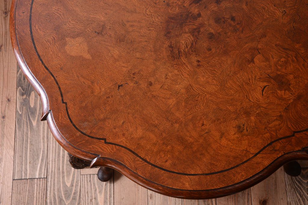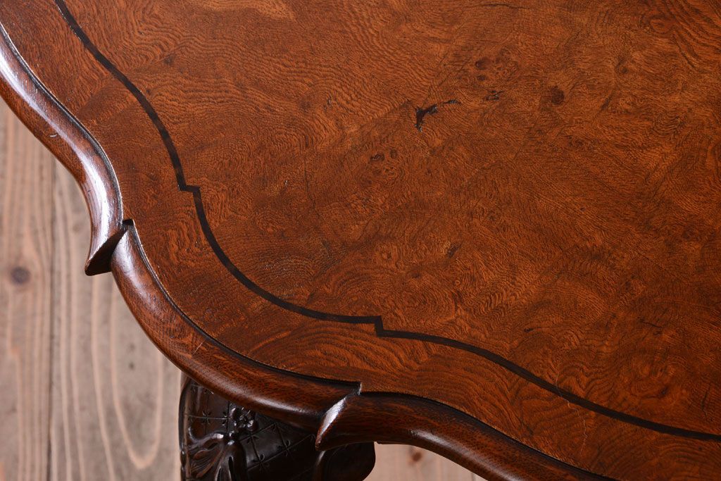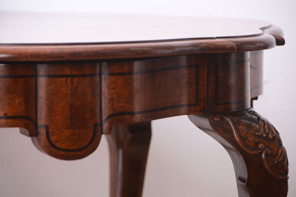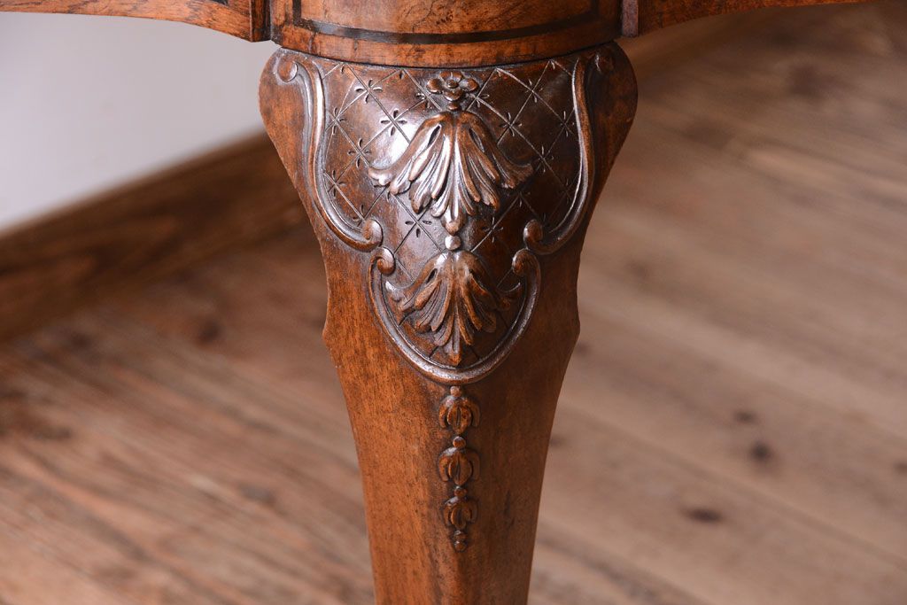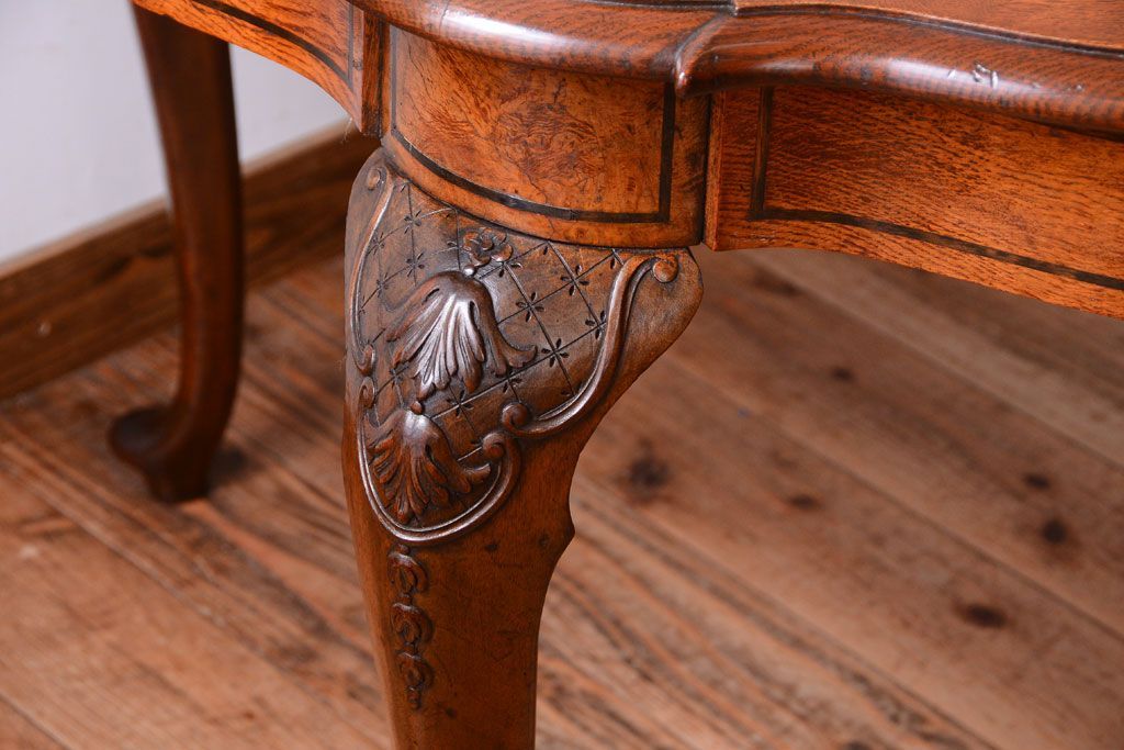 アンティーク家具 イギリスアンティーク ウォールナット・オーク材の彫刻・象嵌入り最高級ダイニングテーブル
