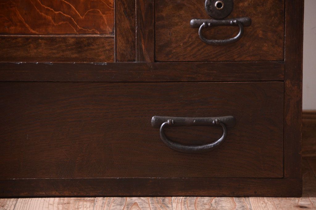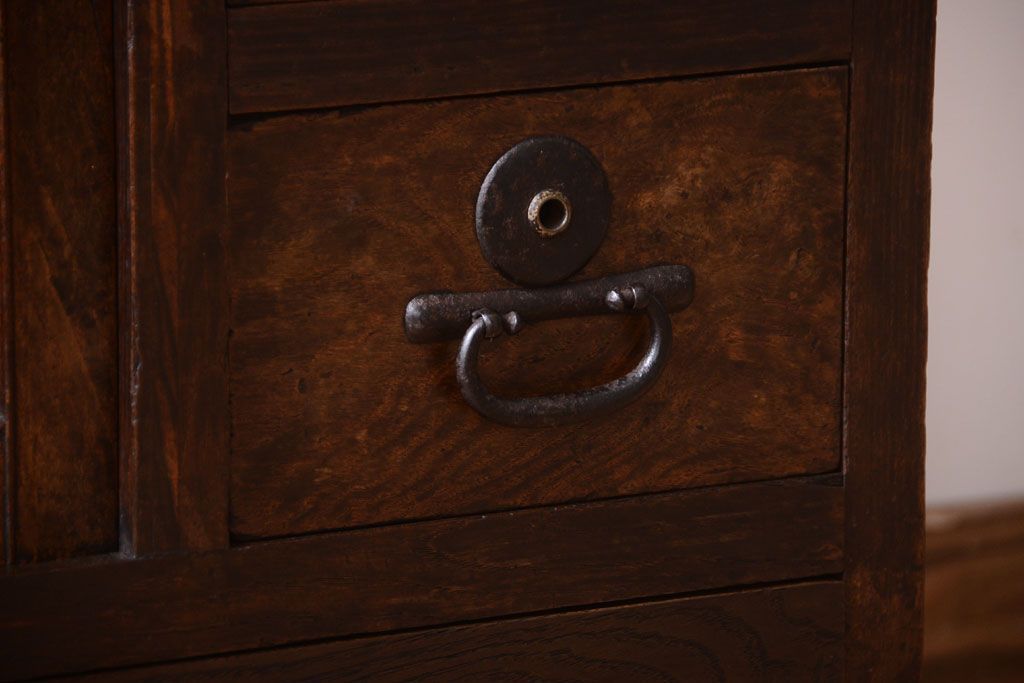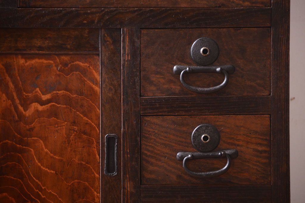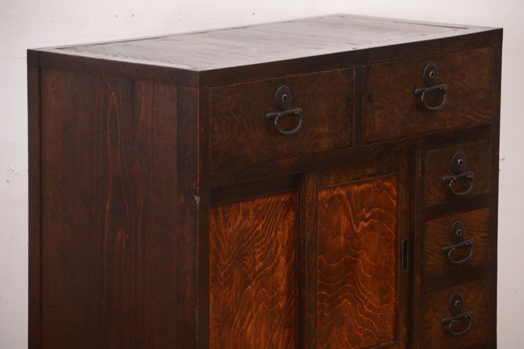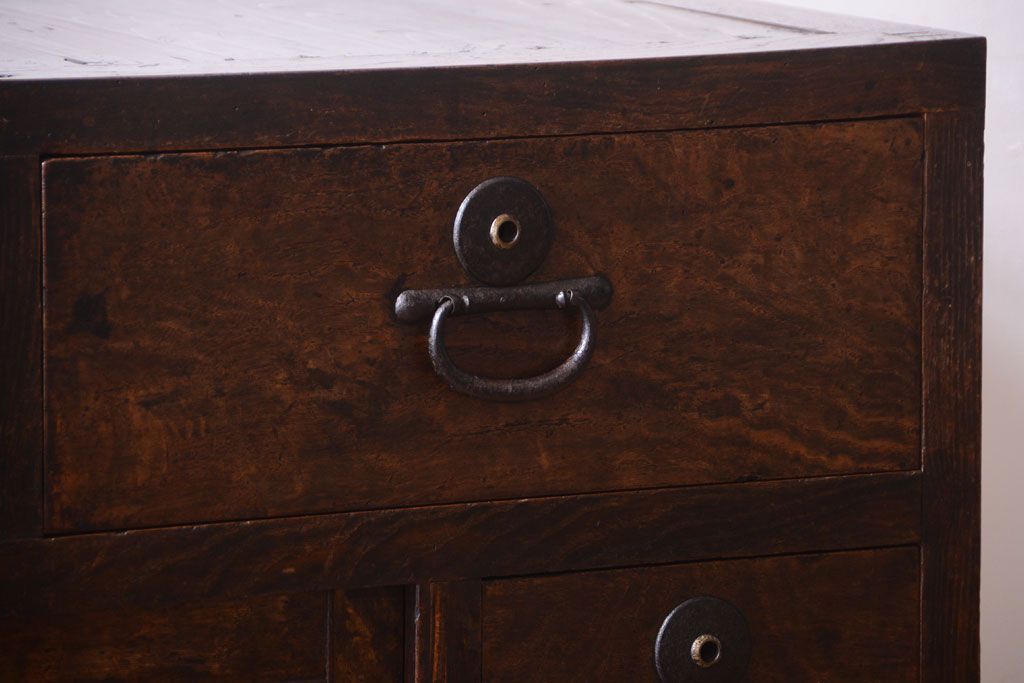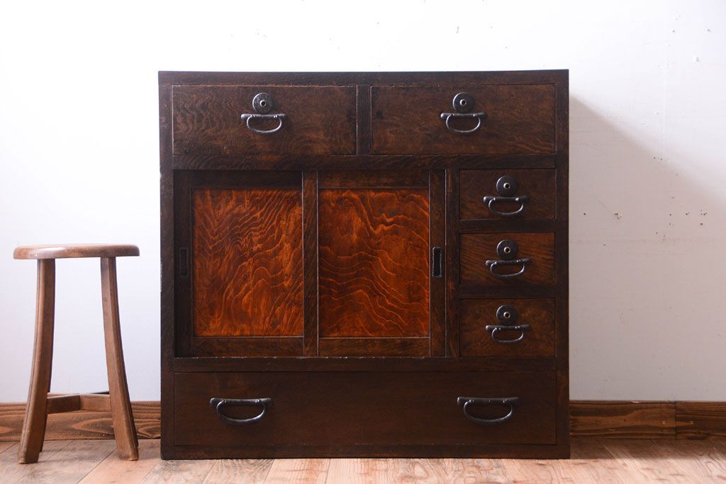アンティーク家具 古民具・骨董 明治〜大正 丸金具付き!古い木の上品な茶箪笥