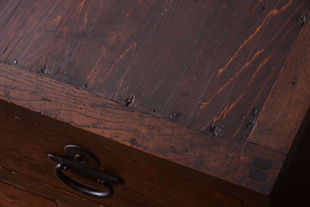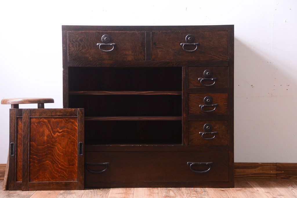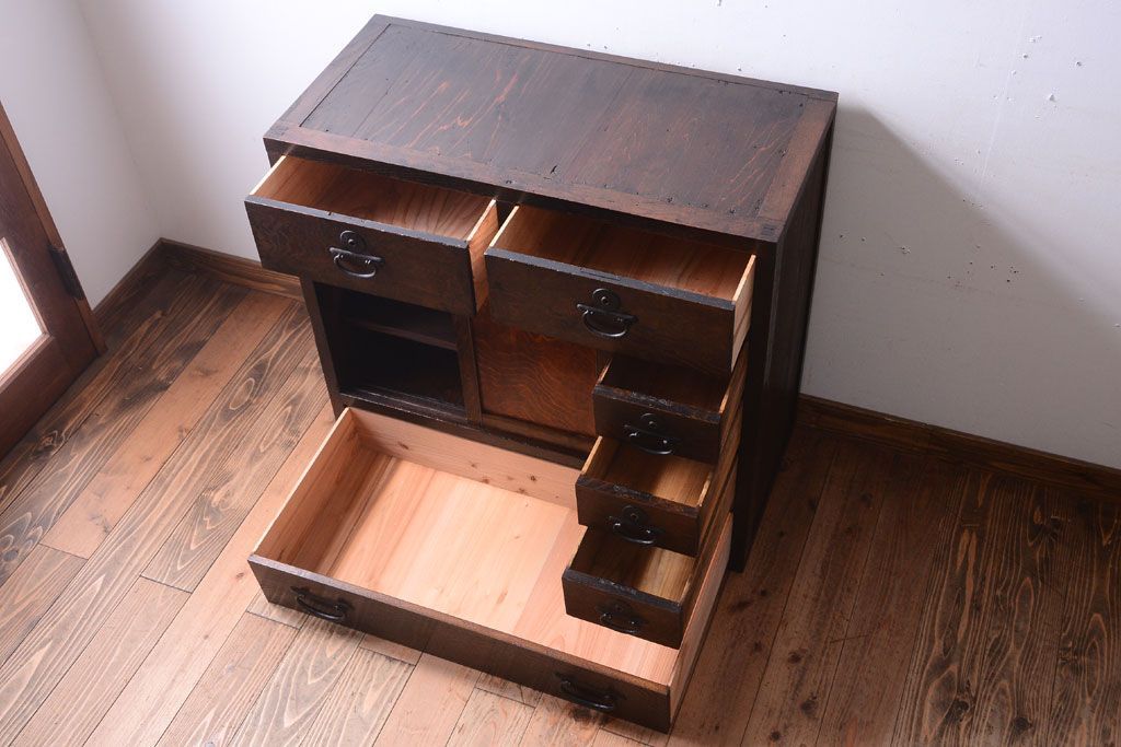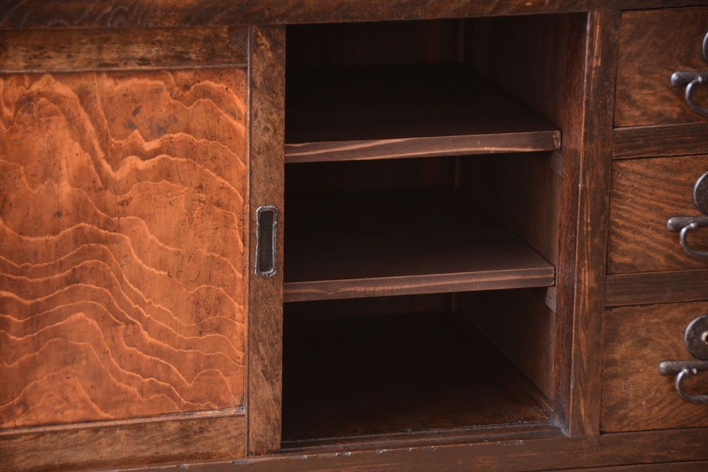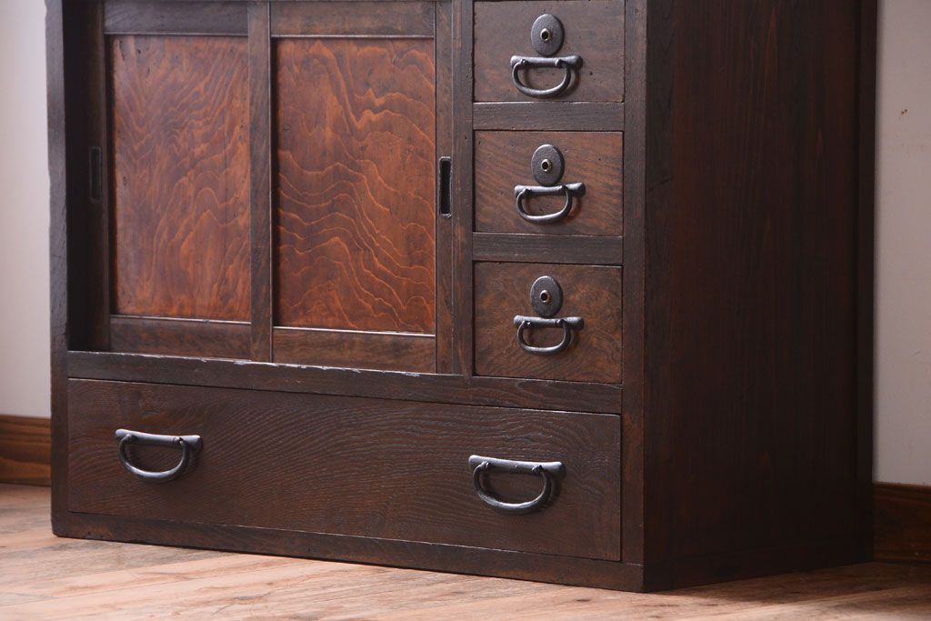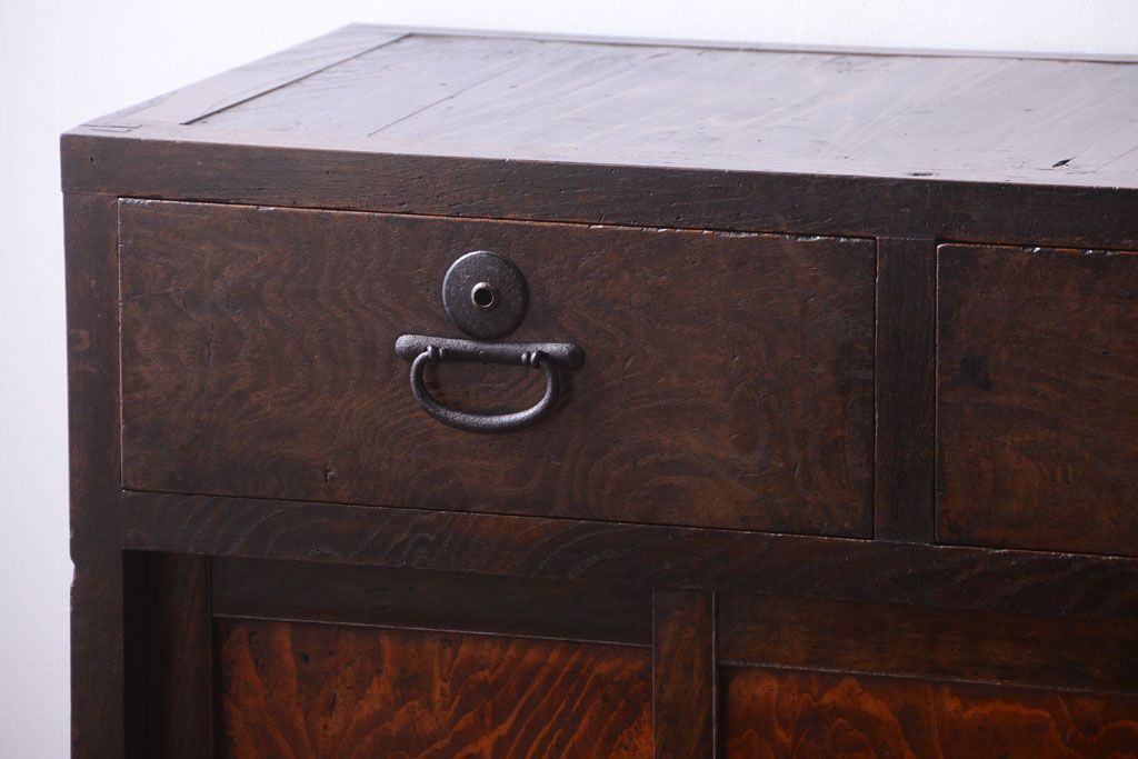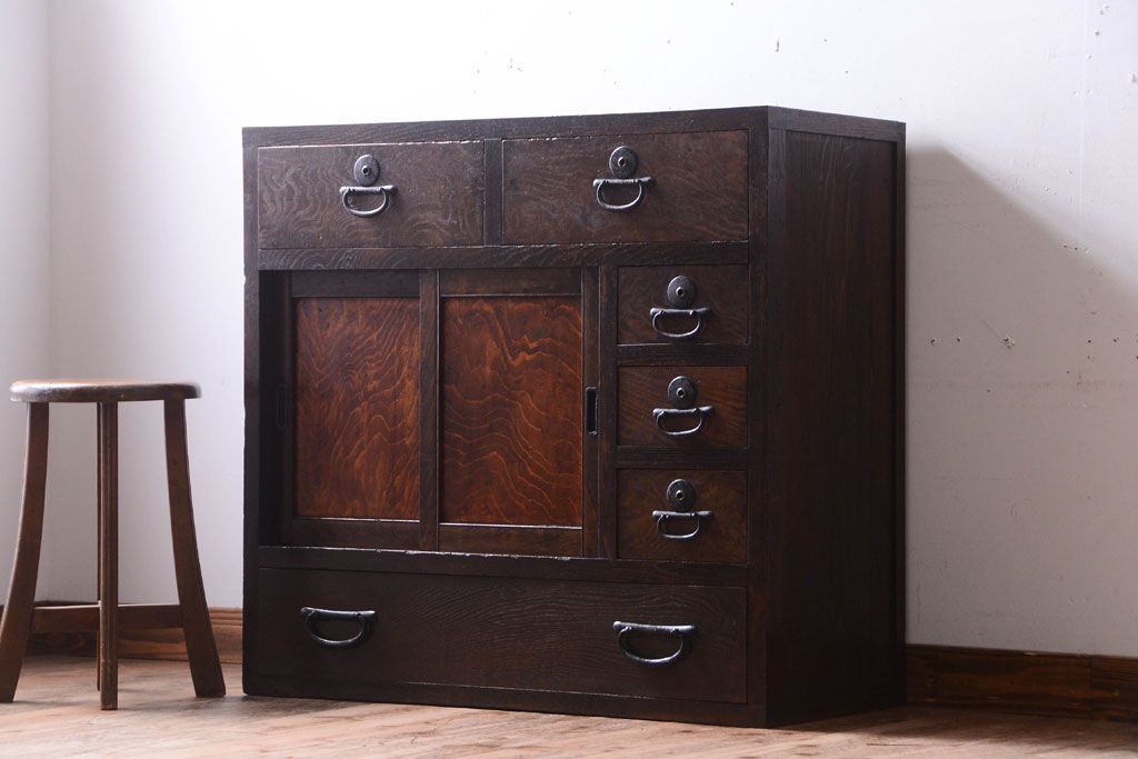 アンティーク家具 古民具・骨董 明治〜大正 丸金具付き!古い木の上品な茶箪笥