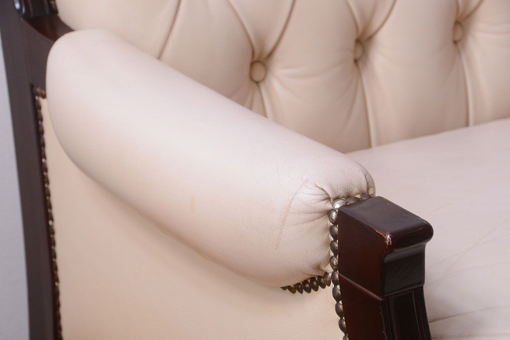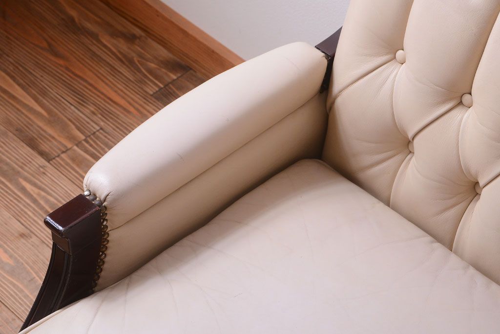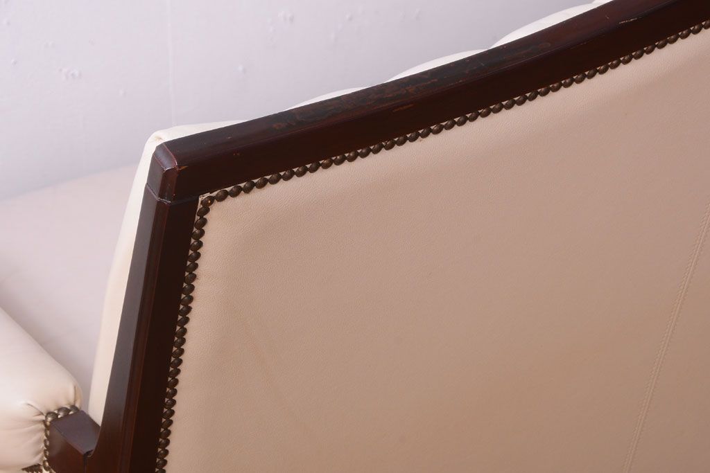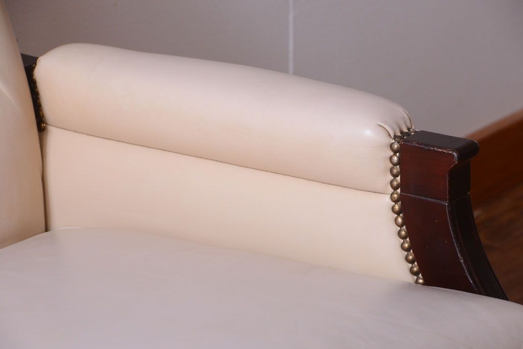 クッション・背もたれ・アーム部分は本革です。その他は合皮です。