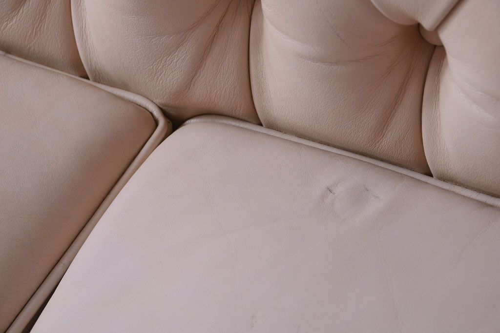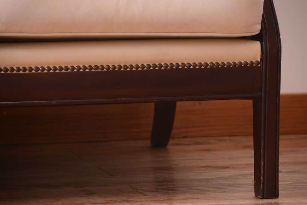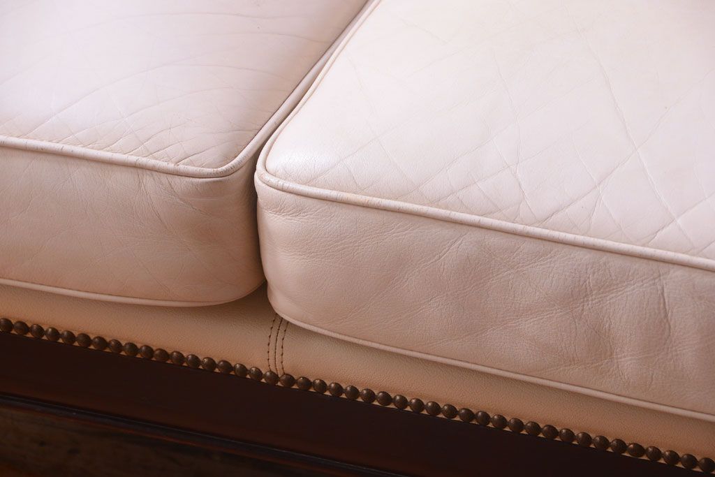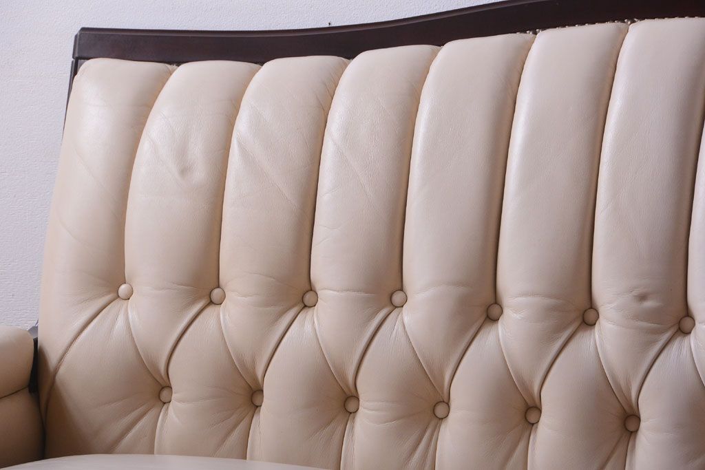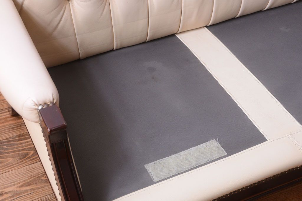 クッション・背もたれ・アーム部分は本革です。その他は合皮です。