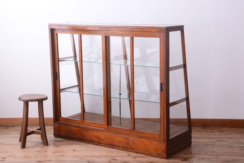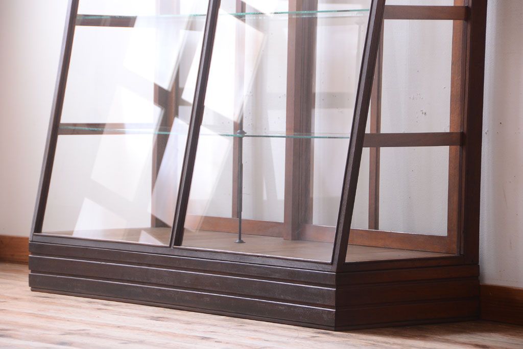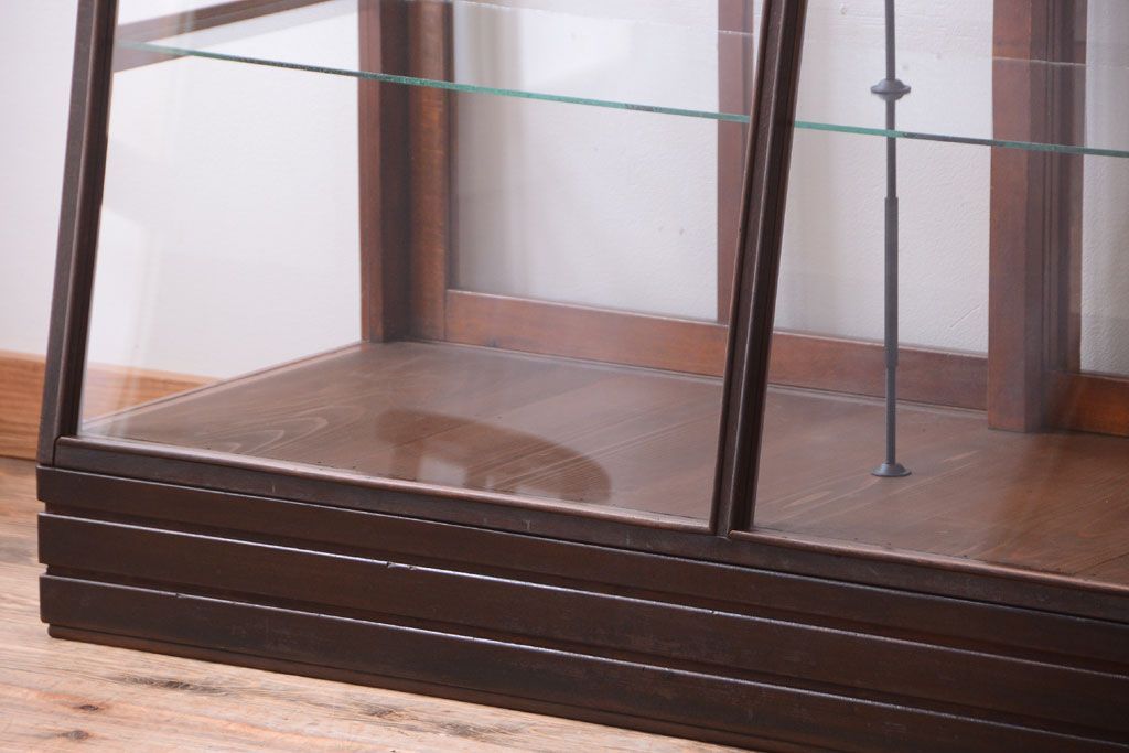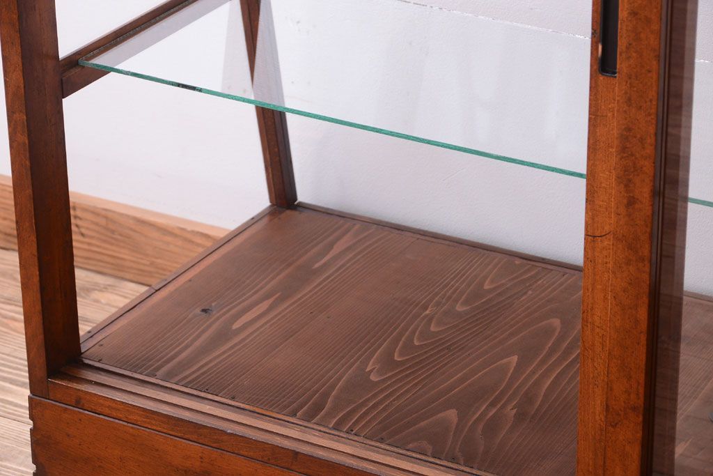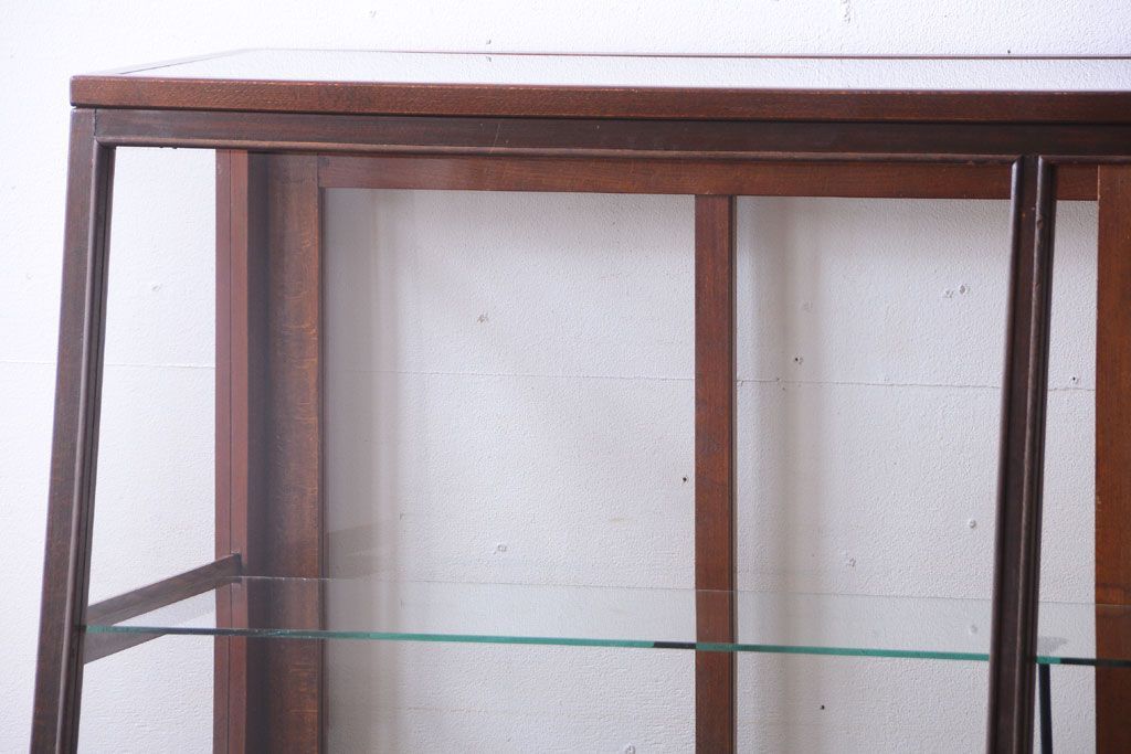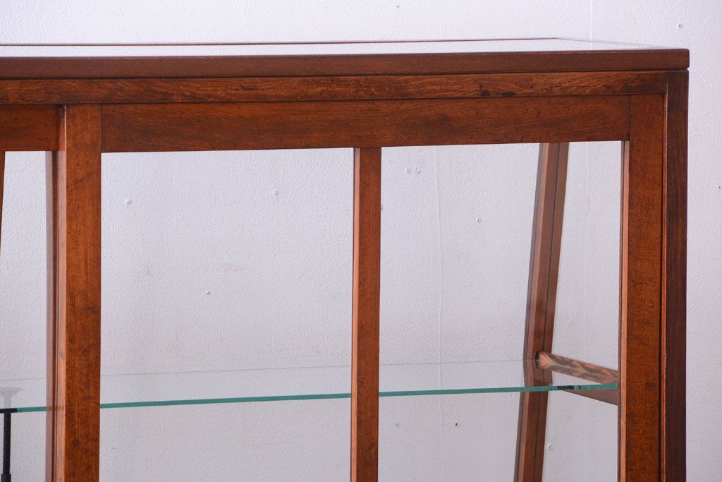 レトロ家具 和製アンティーク 古いブナ材のレトロな台形型ガラスケース