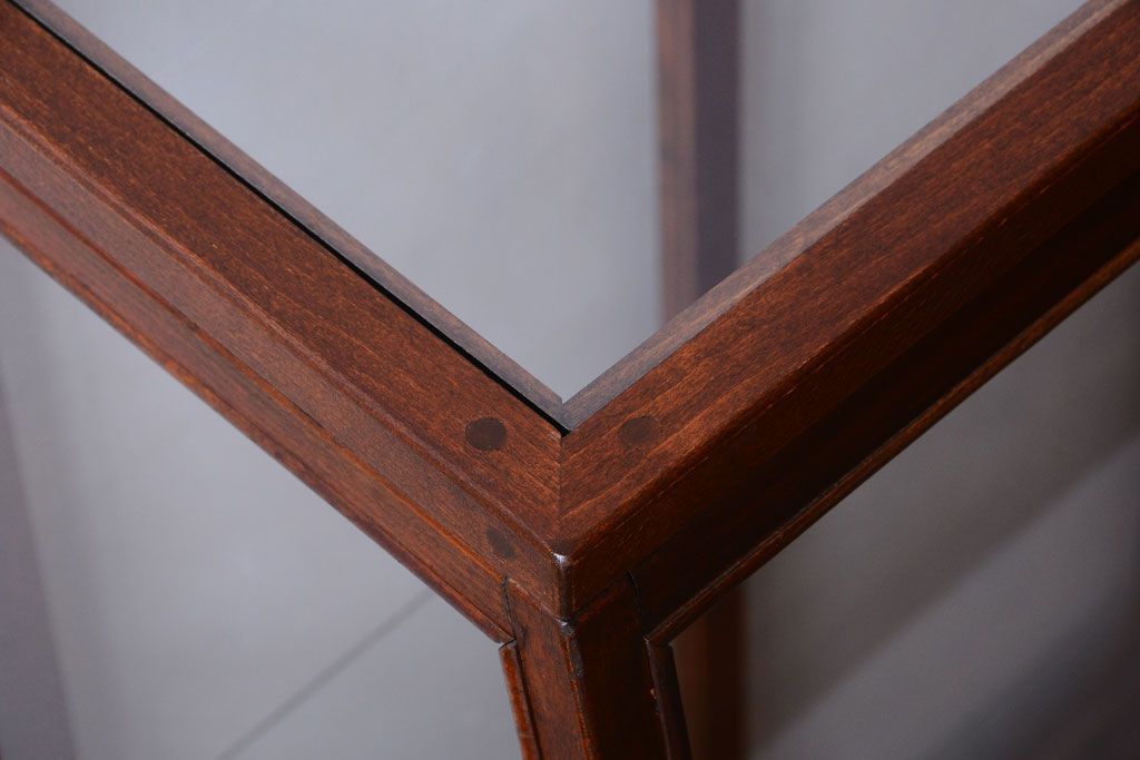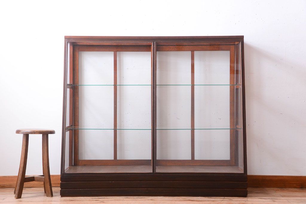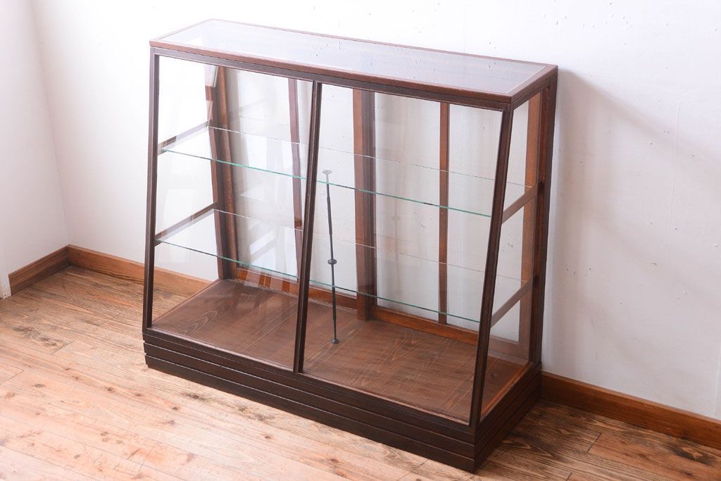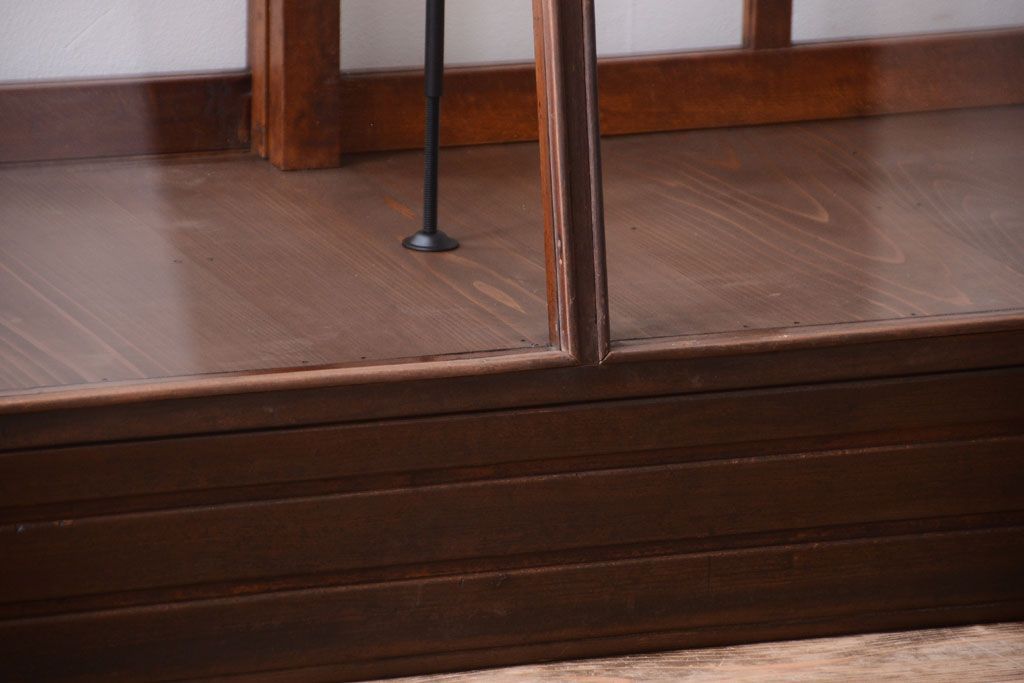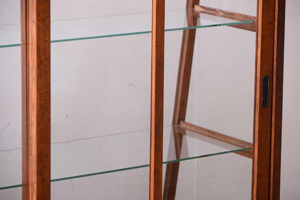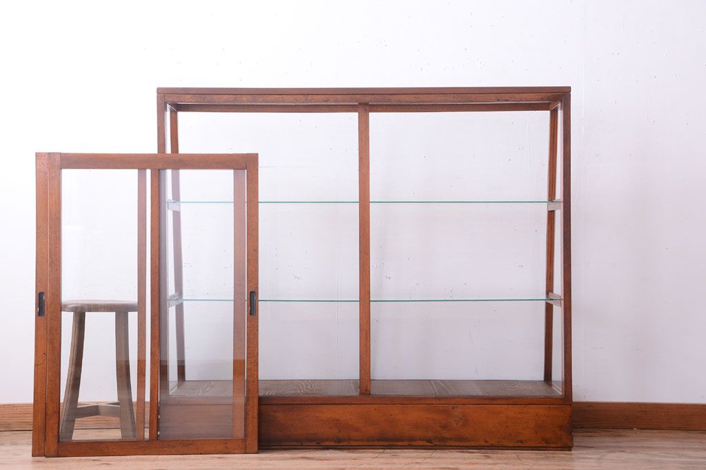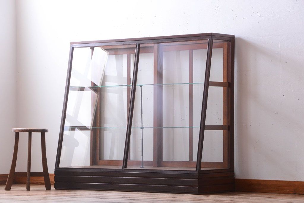 レトロ家具 和製アンティーク 古いブナ材のレトロな台形型ガラスケース