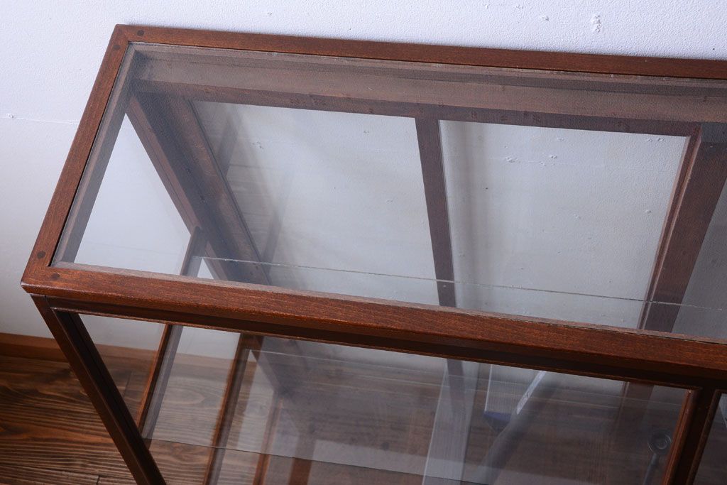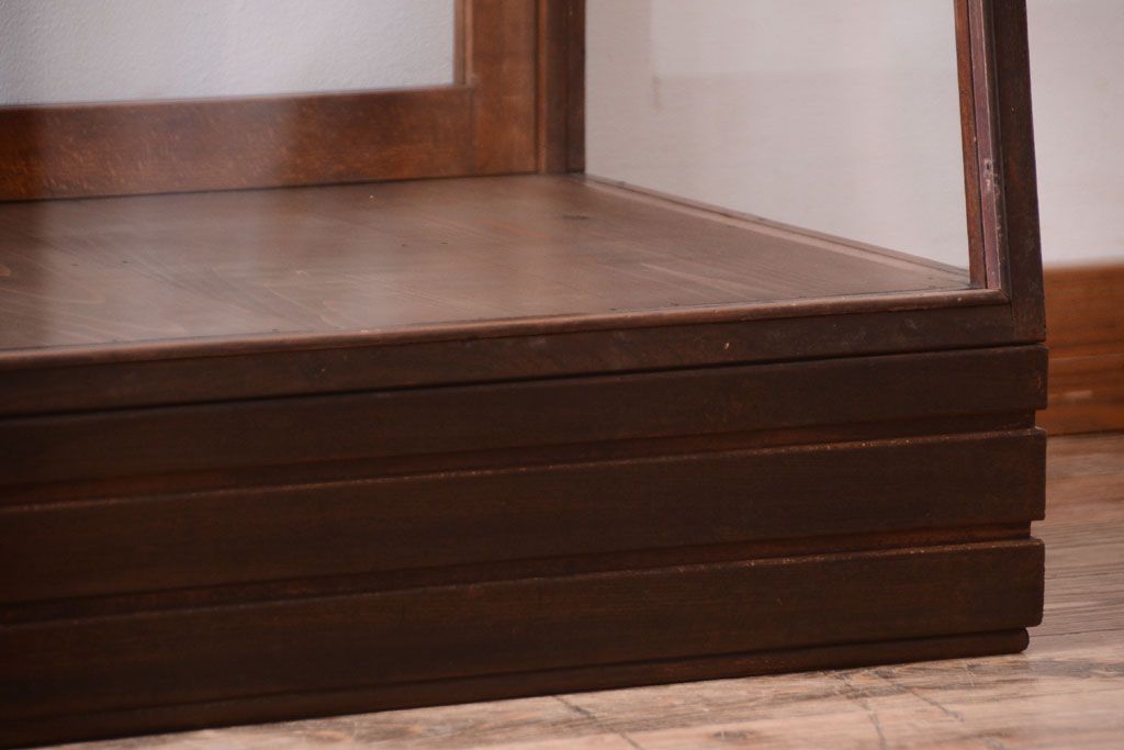 和製アンティーク 古いブナ材のレトロな台形型ガラスケースです。