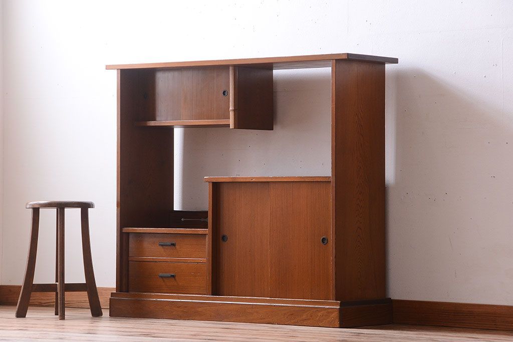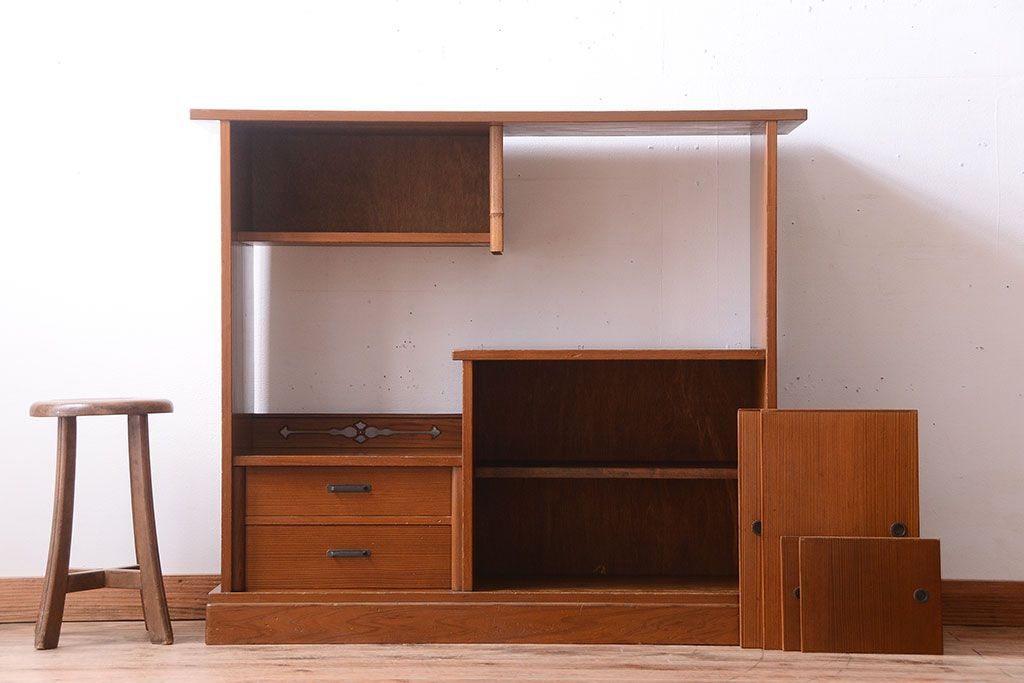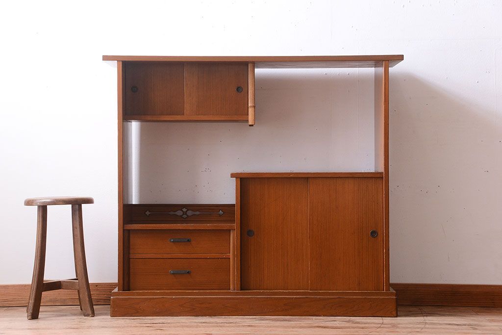 レトロ家具 昭和レトロ 古い木製のシンプルな飾り棚(茶棚)