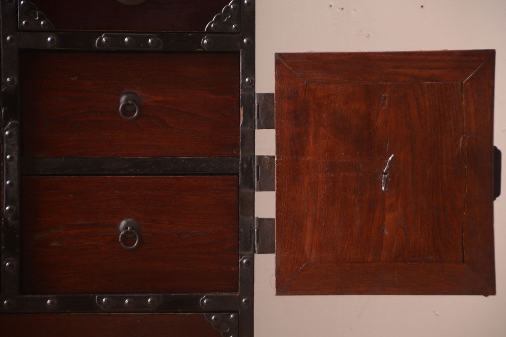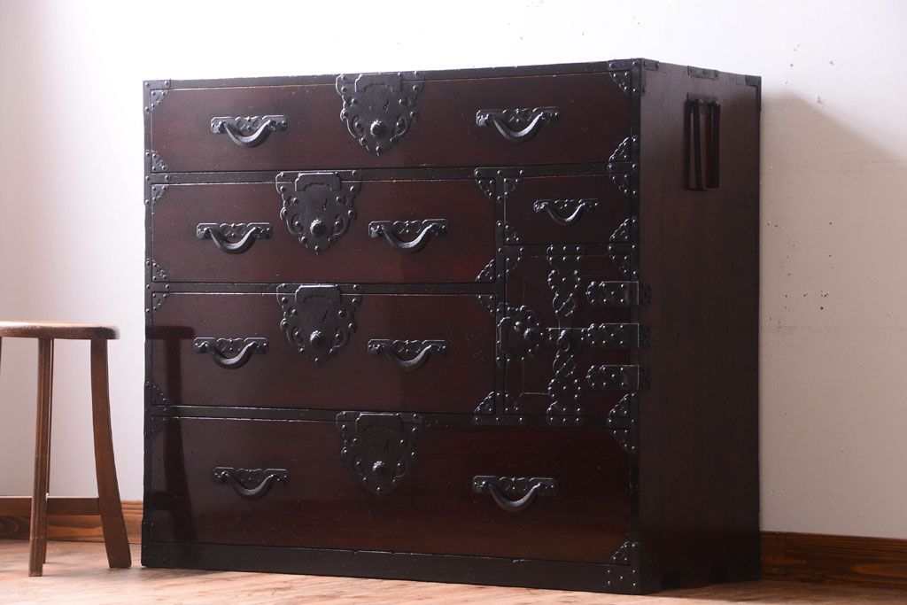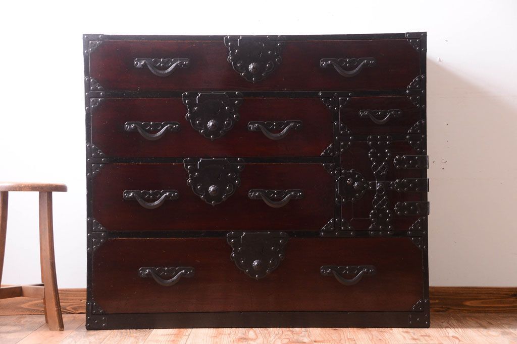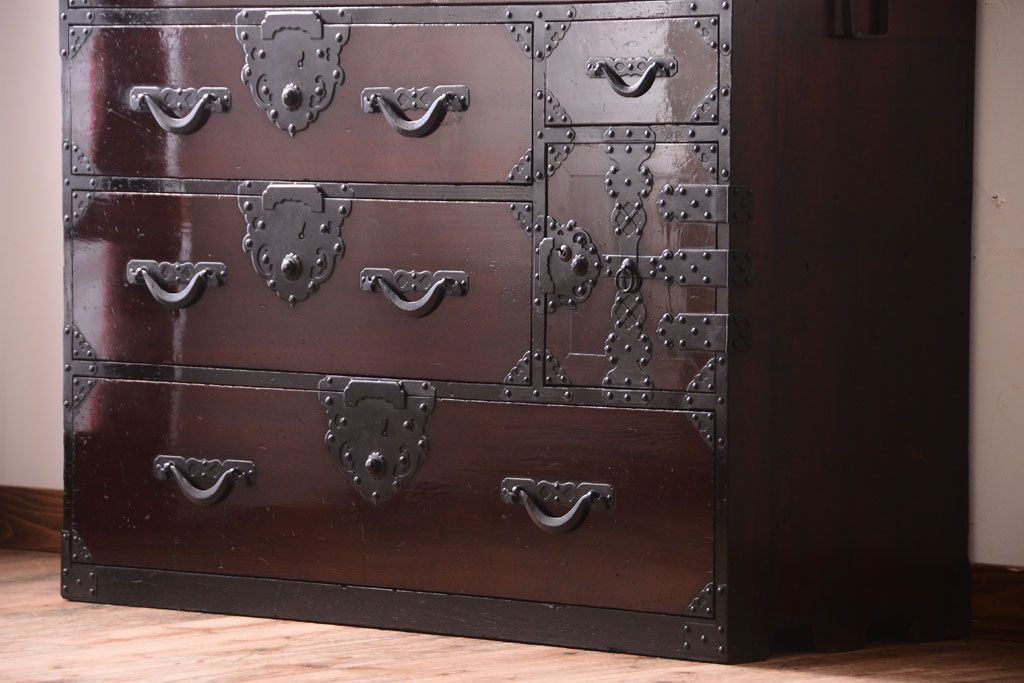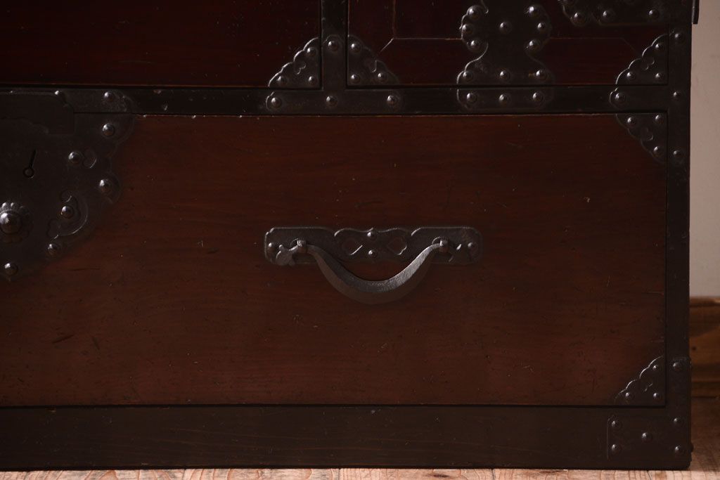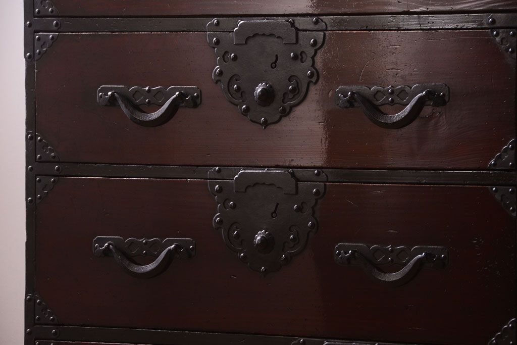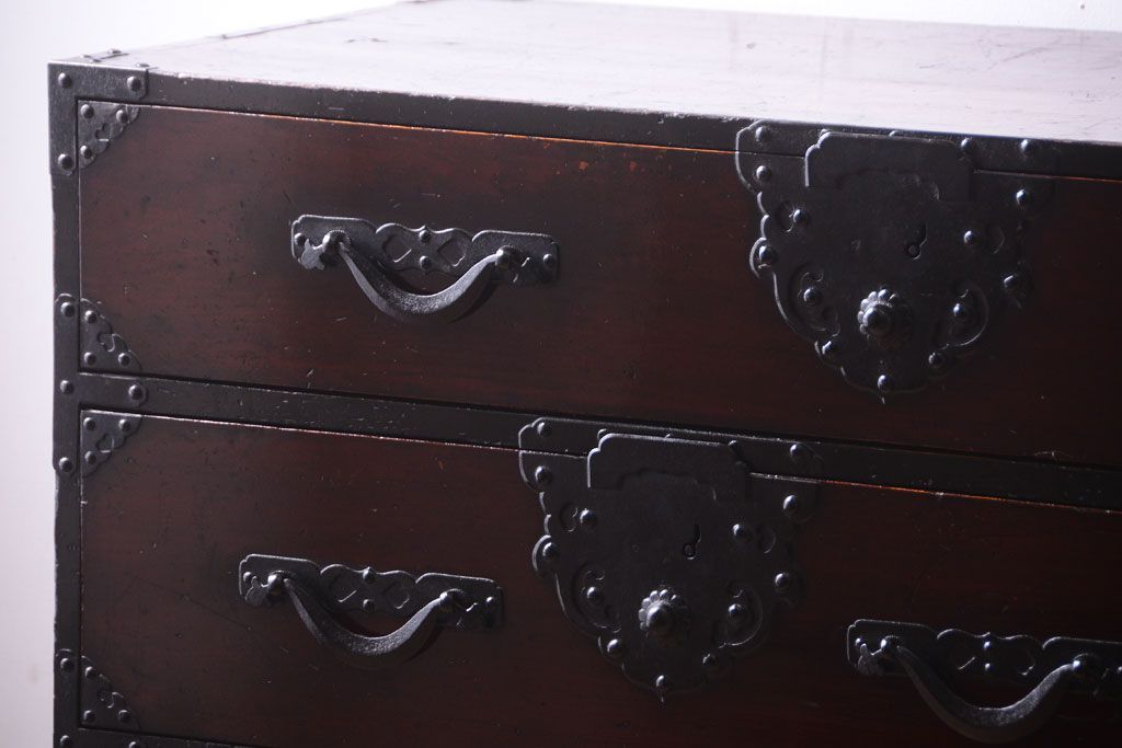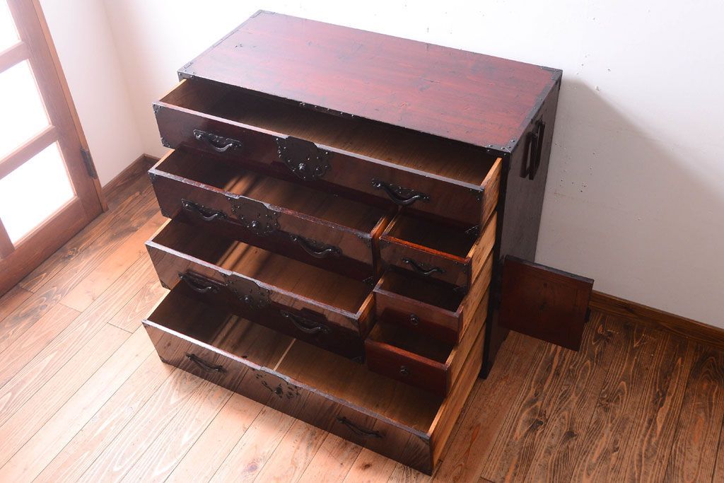 アンティーク家具 古民具・骨董 明治〜大正期 前面栗材!アンティーク米沢箪笥