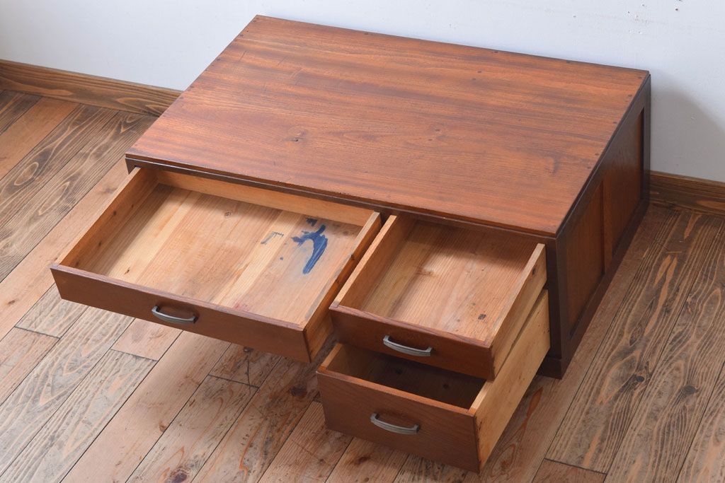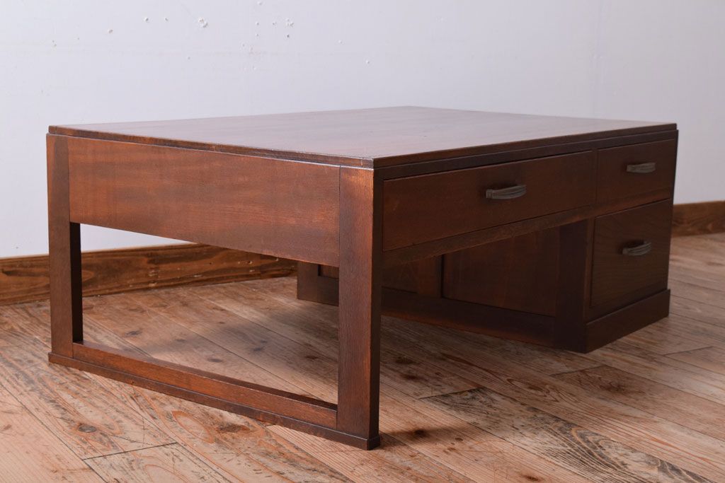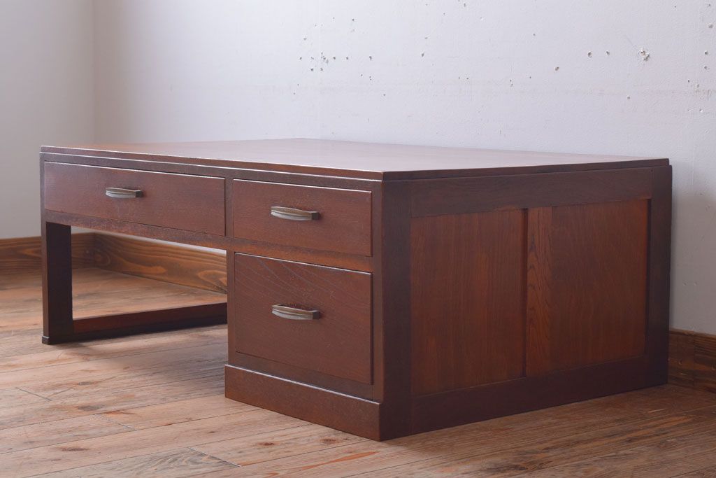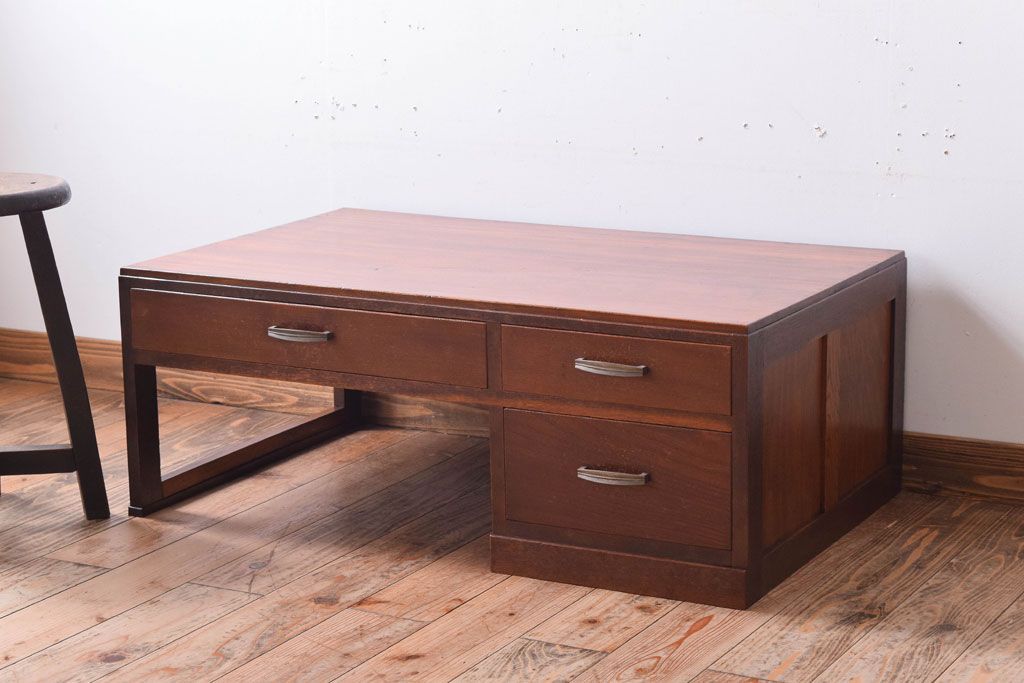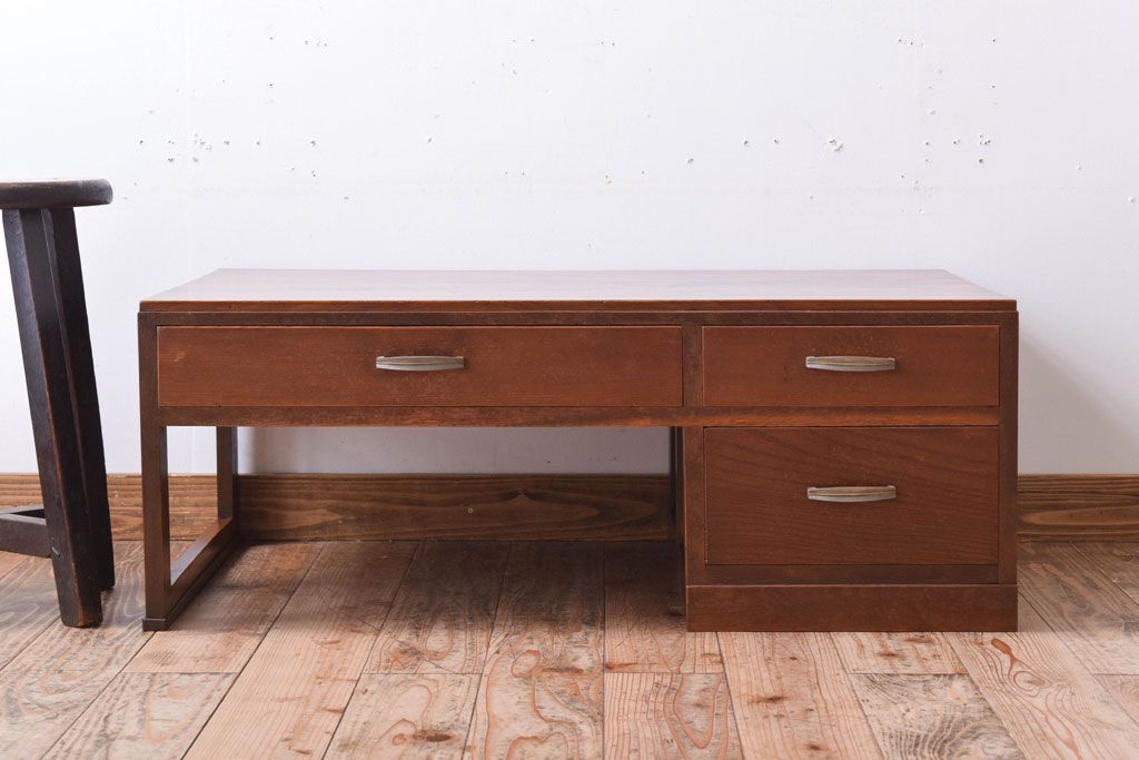 レトロ家具 昭和レトロ 古い木製のシンプルなアンティーク文机(片袖机)