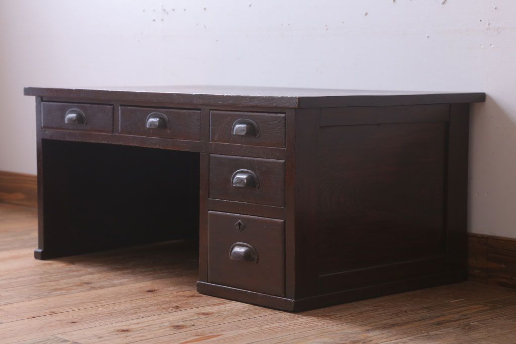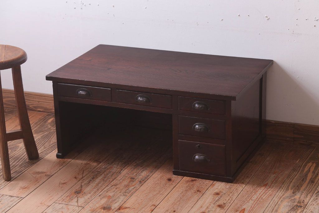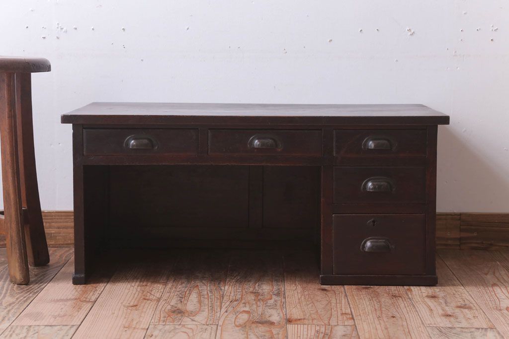 アンティーク家具 古民具・骨董 大正期 古い栓材の片袖文机