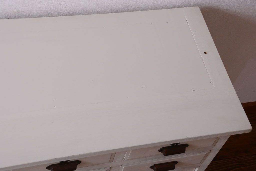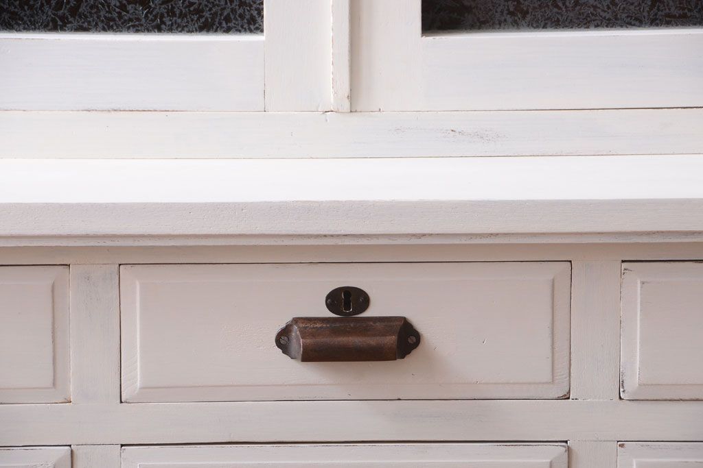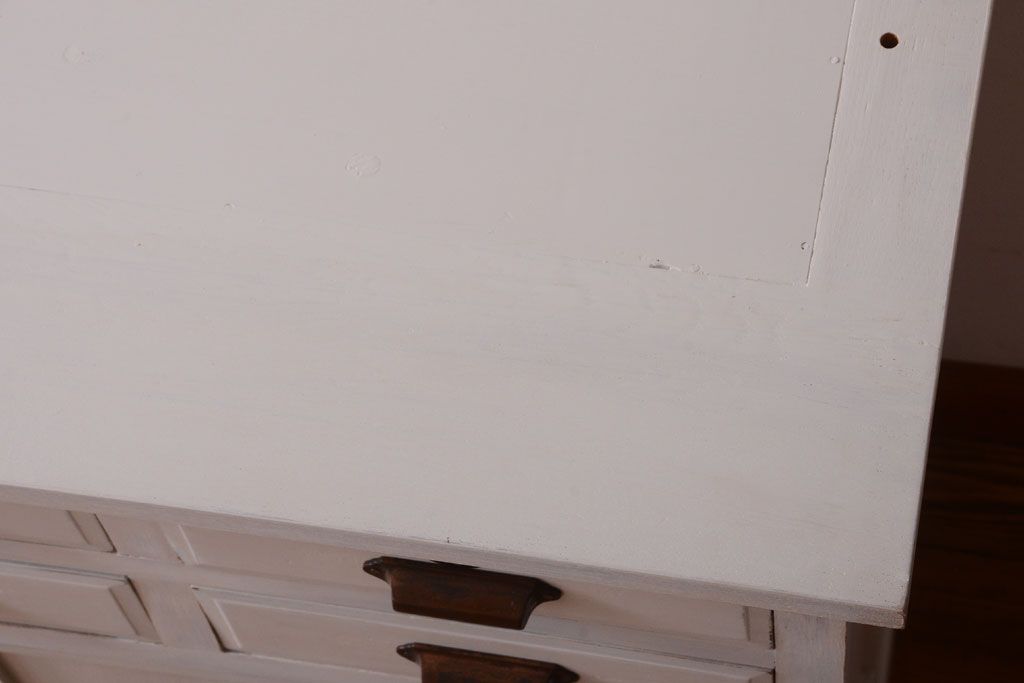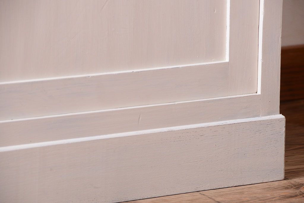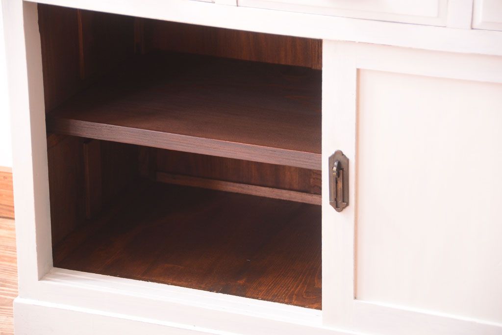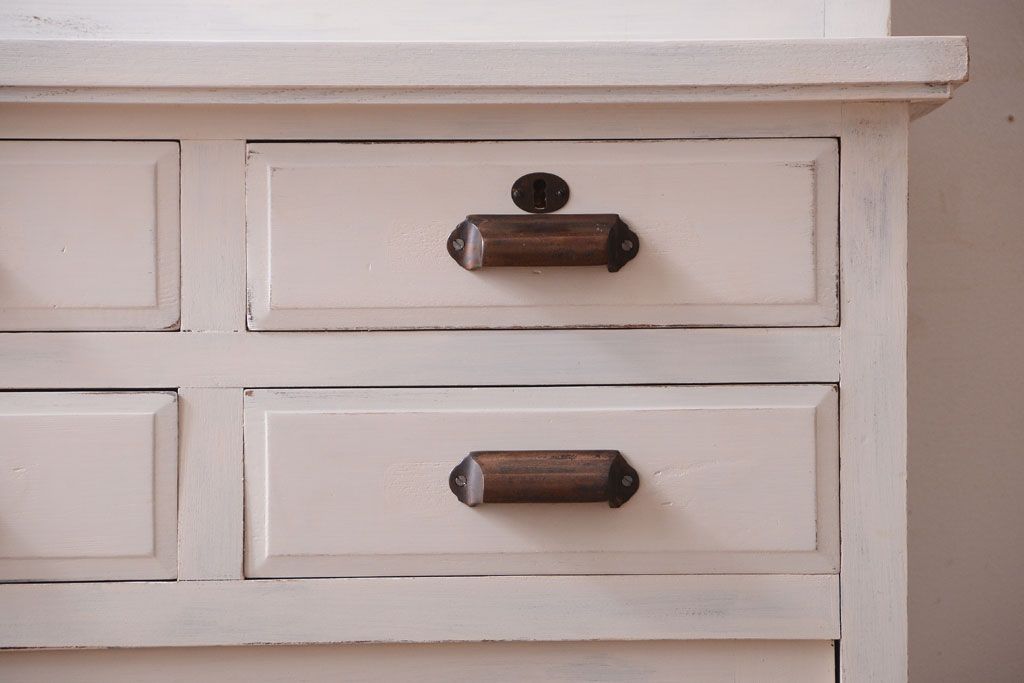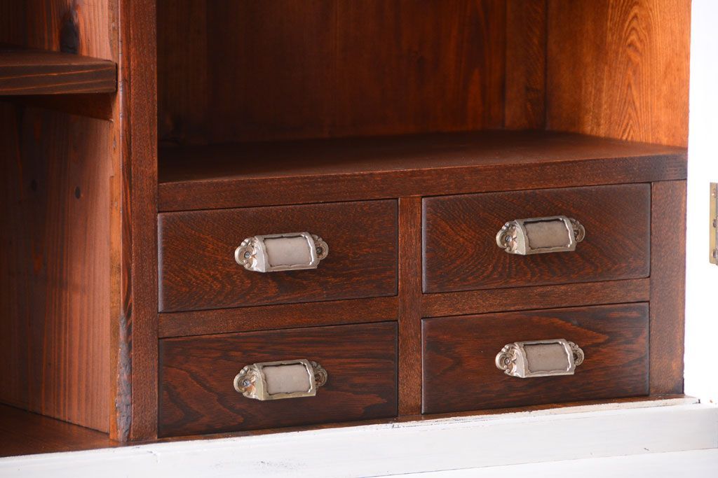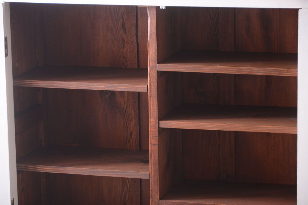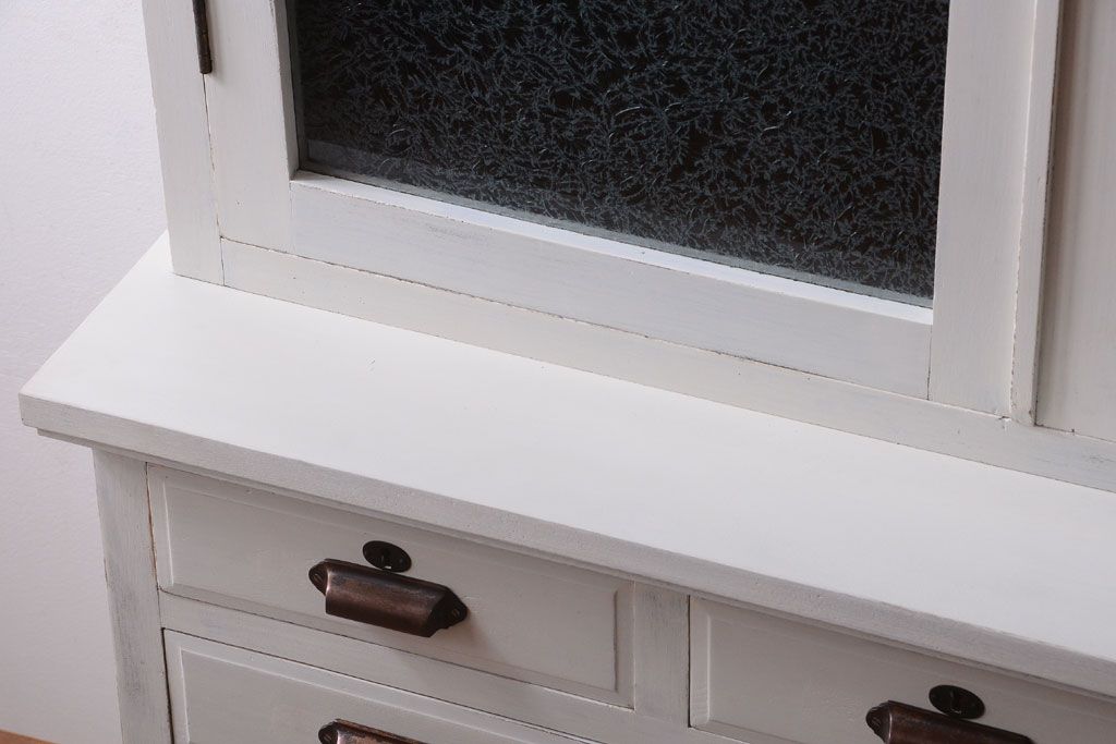 ラフジュ工房> キャビネット・戸棚> 食器棚・カップボード > アンティーク家具 アンティークペイント 象嵌入り!結霜ガラス扉の古い食器棚(カップボード)