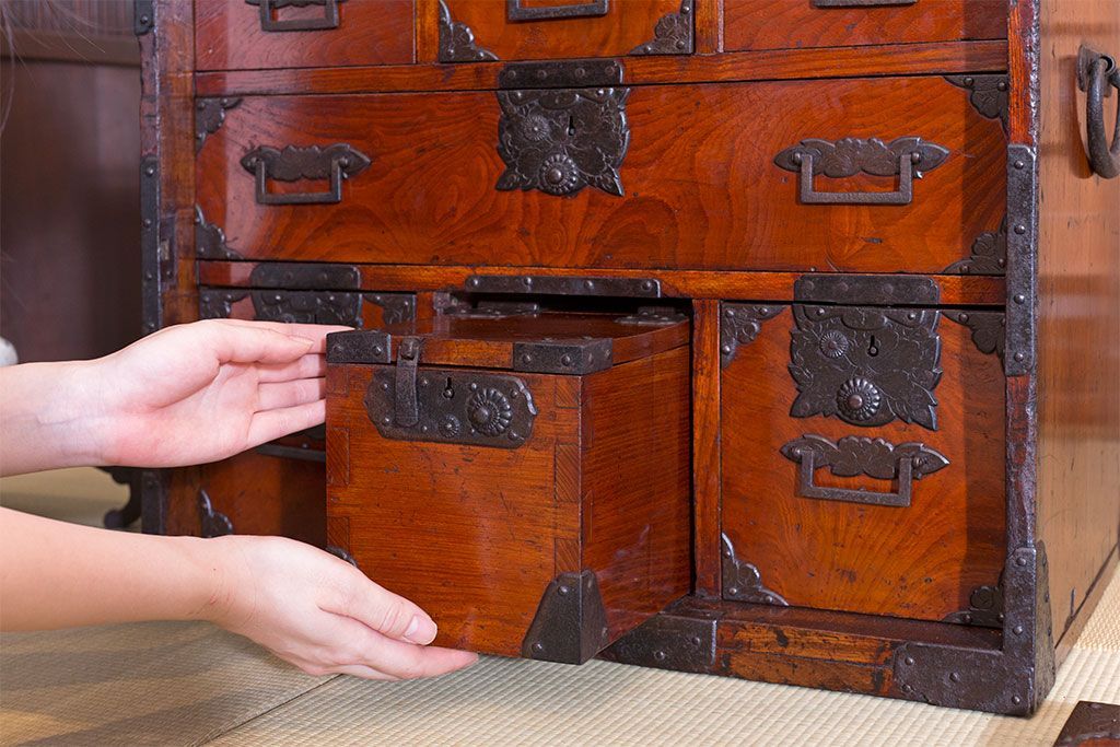 ラフジュ工房> 骨董・美術品 > アンティーク雑貨 古民具・骨董 江戸〜明治期 仙台箪笥 船箪笥(掛硯型、懸硯型、舟箪笥、帳箱)