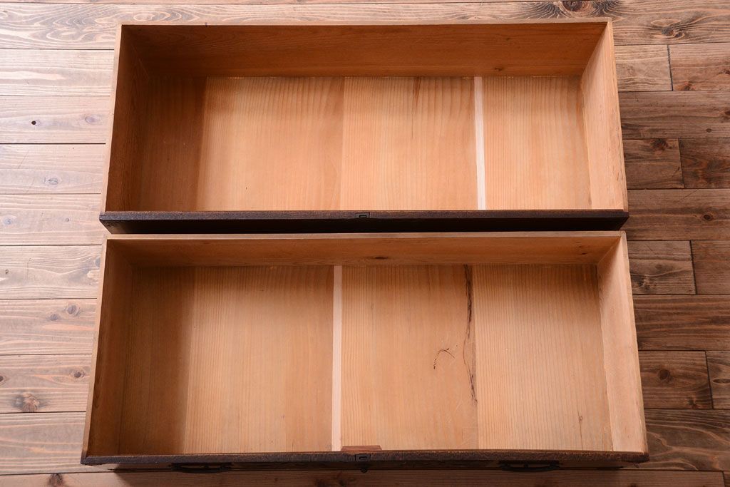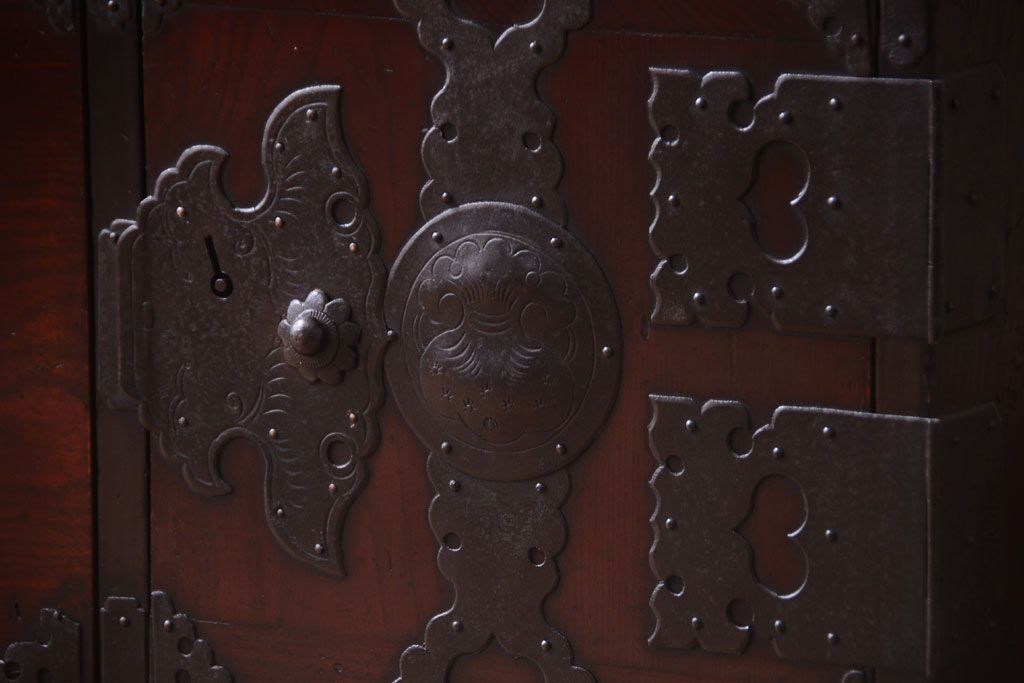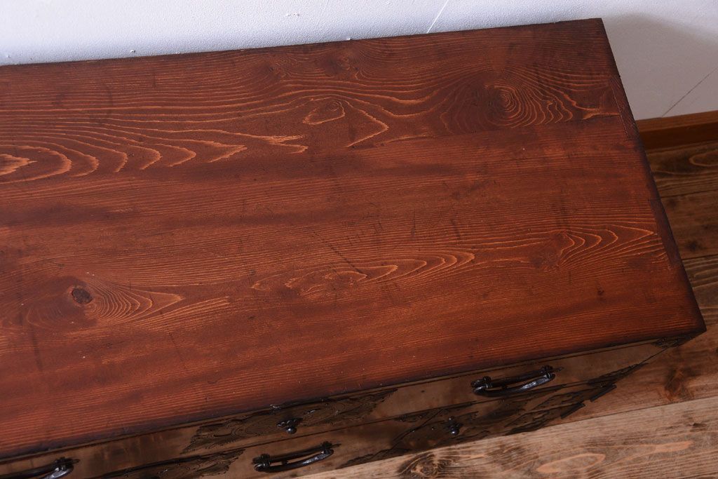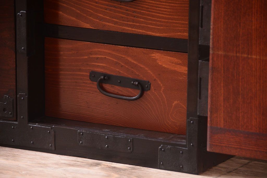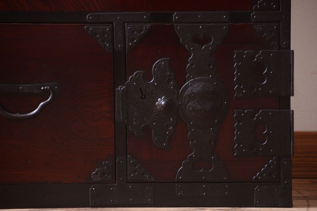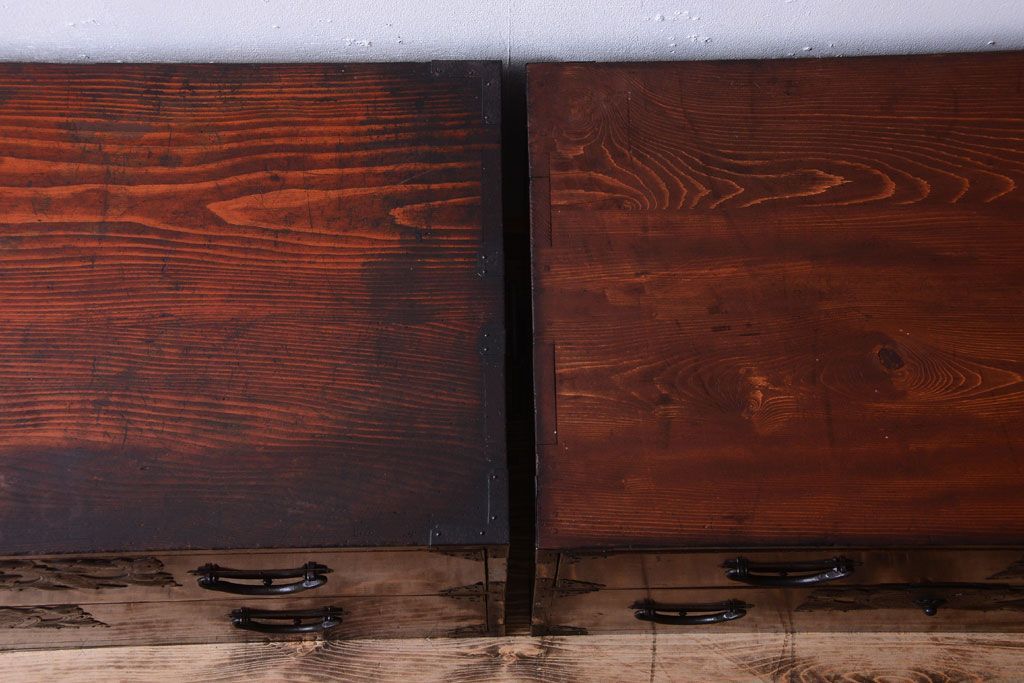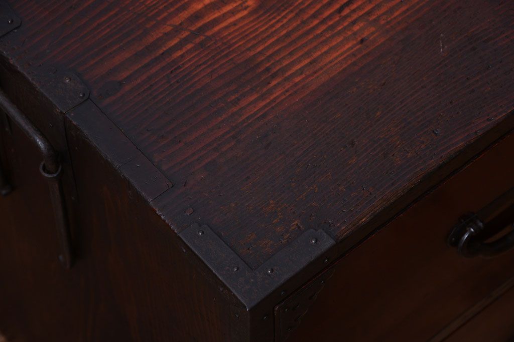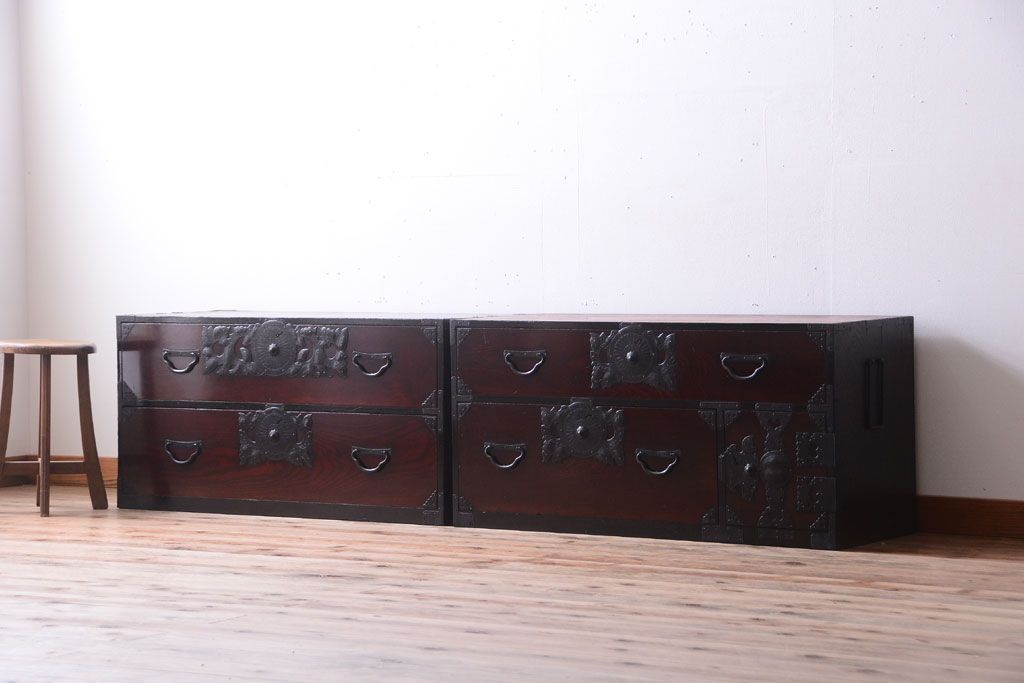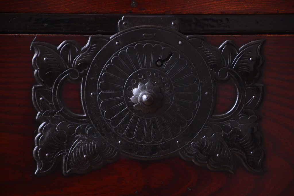和箪笥> 衣装箪笥 > アンティーク家具 古民具・骨董 明治期 前面欅材!美しい漆塗りのアンティーク重ね仙台箪笥