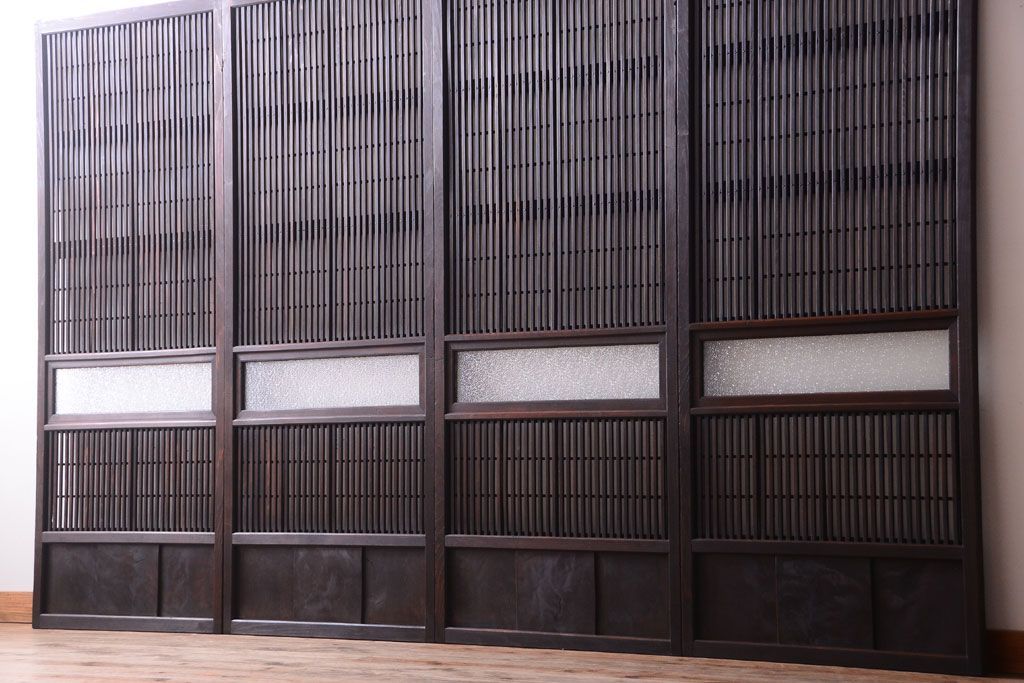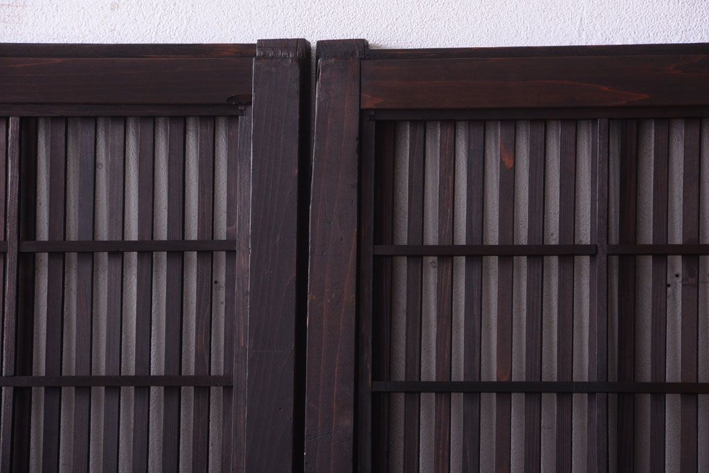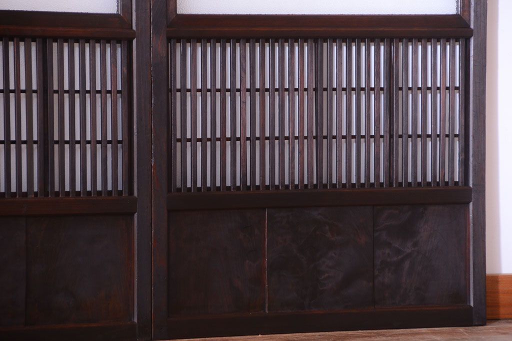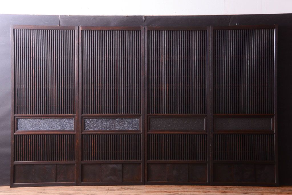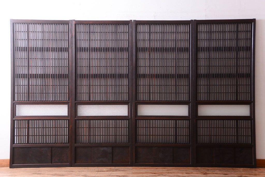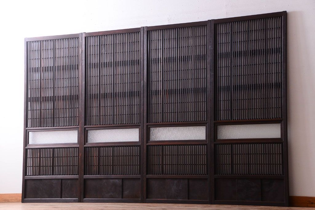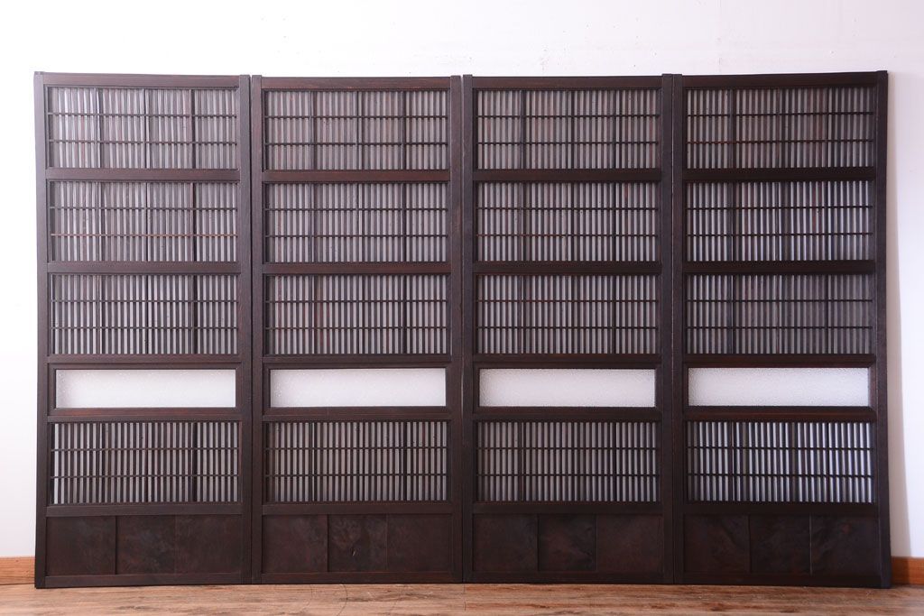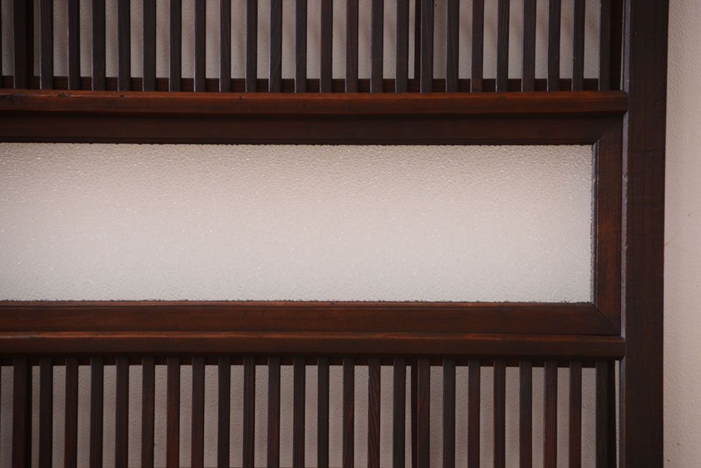 古民具・骨董 裏障子付き!ダイヤガラス帯の幅が狭いアンティーク格子戸4枚セットです。