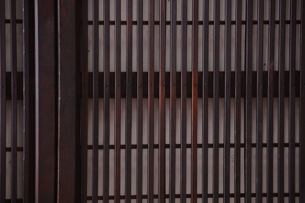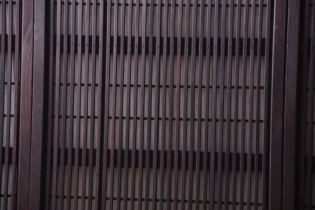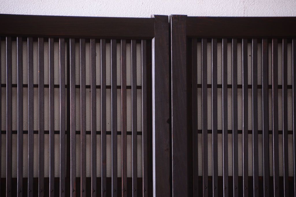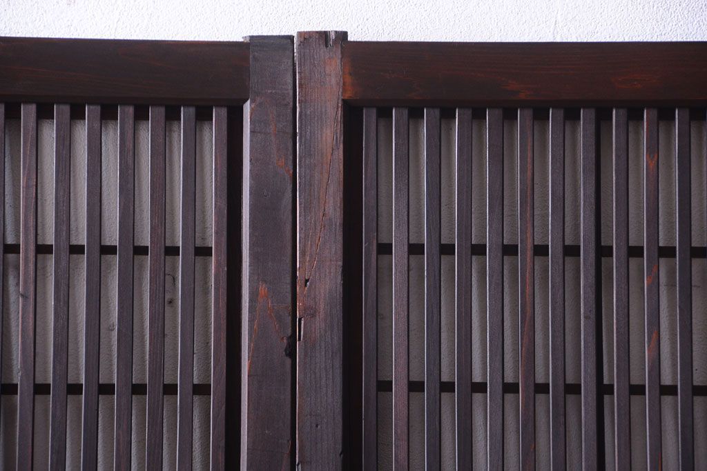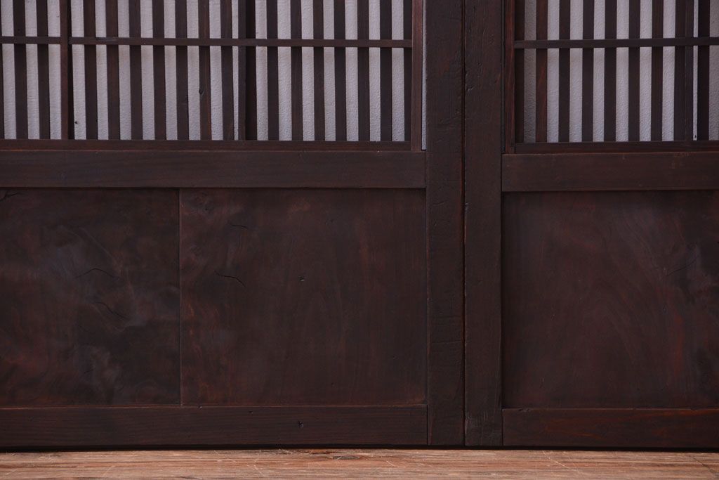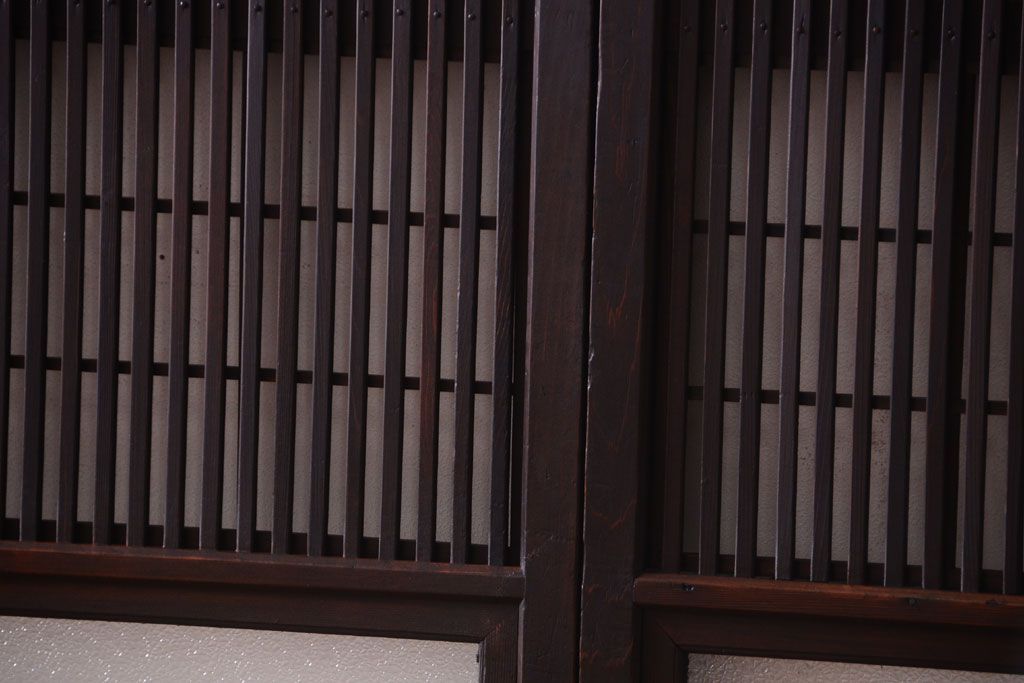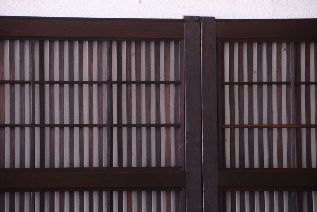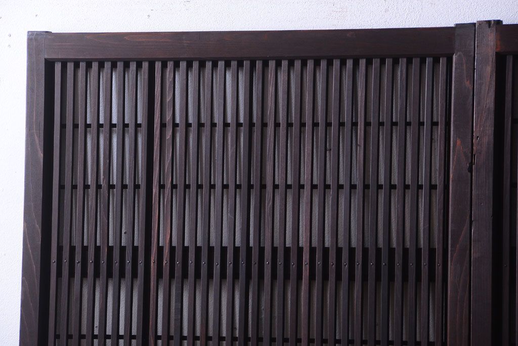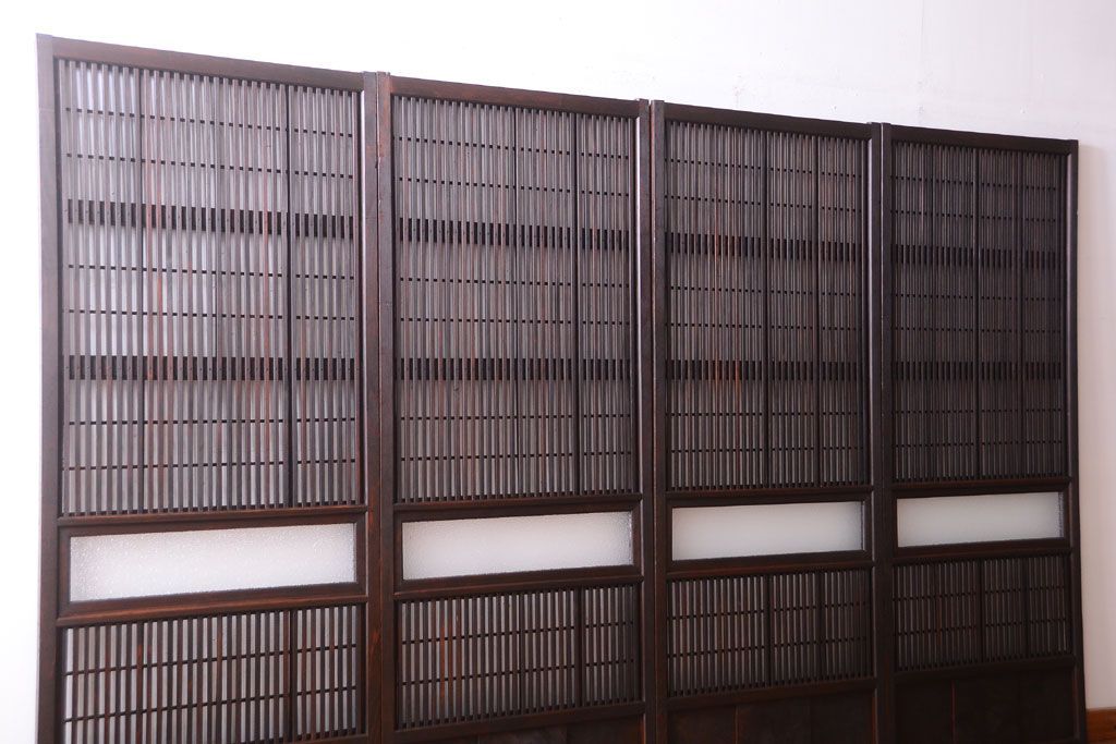 古民具・骨董 裏障子付き!ダイヤガラス帯の幅が狭いアンティーク格子戸4枚セットです。