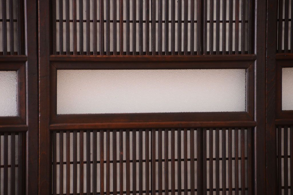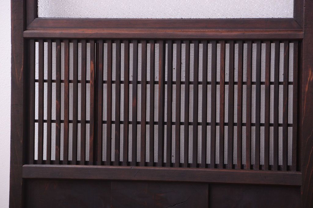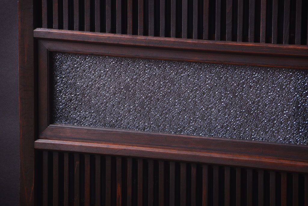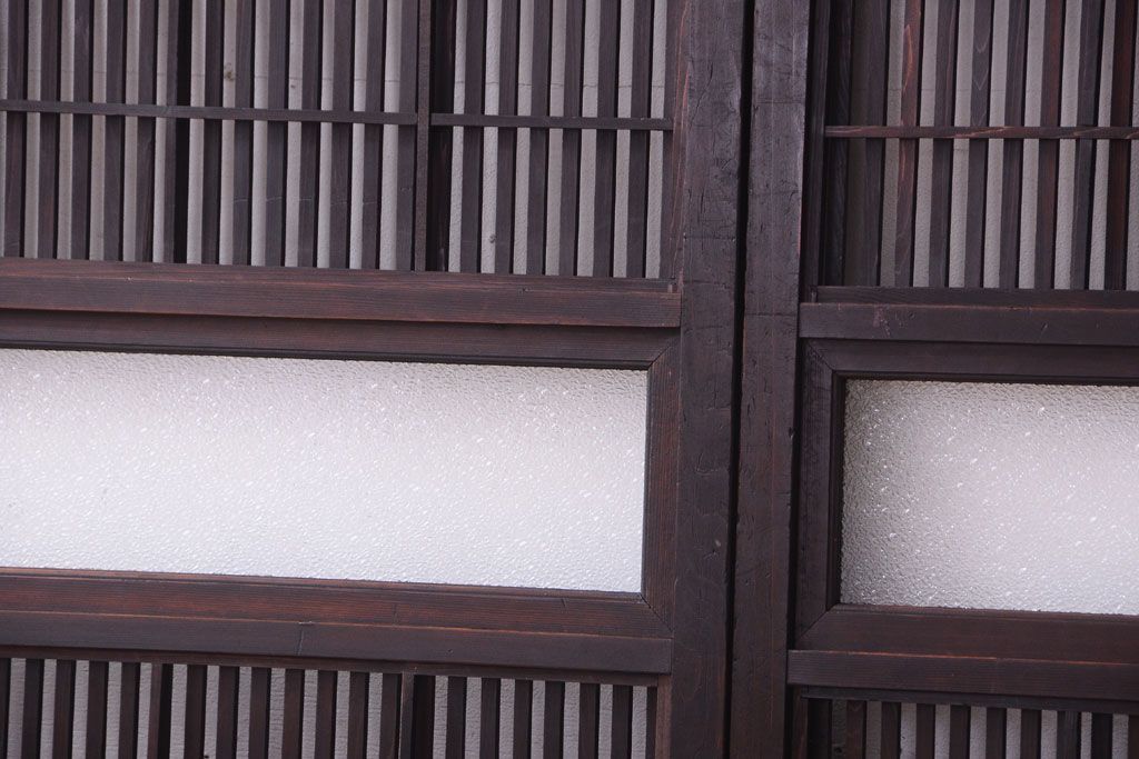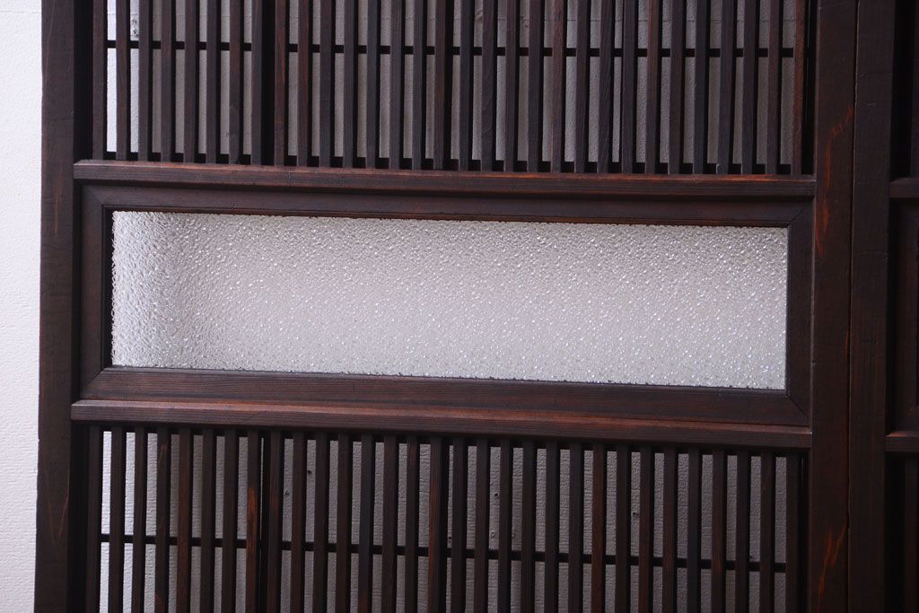 古民具・骨董 裏障子付き!ダイヤガラス帯の幅が狭いアンティーク格子戸4枚セット