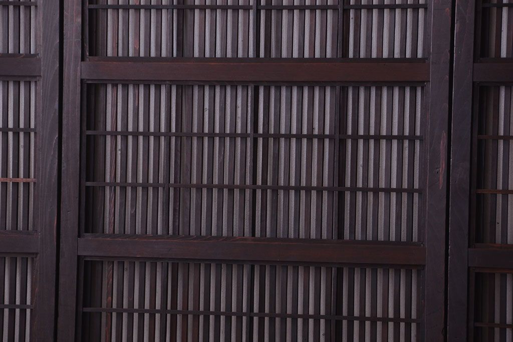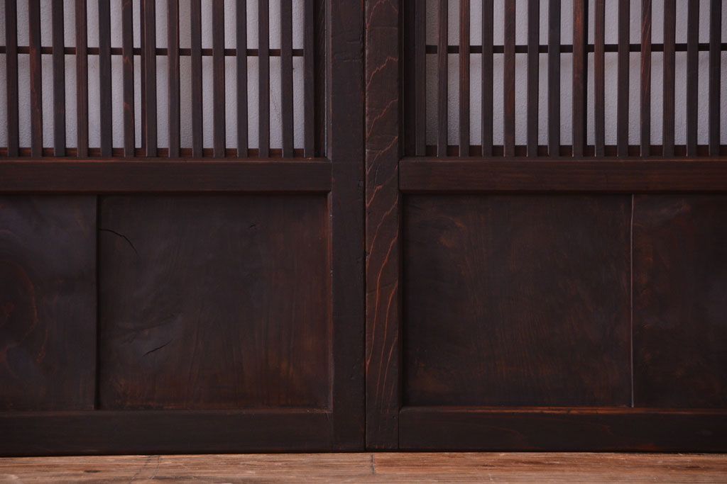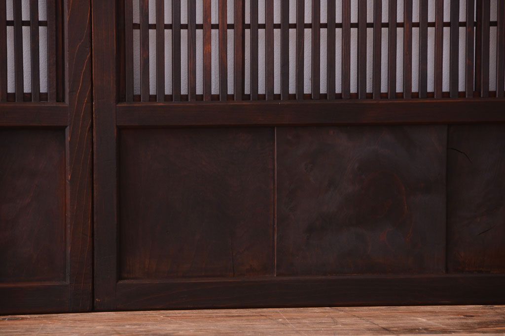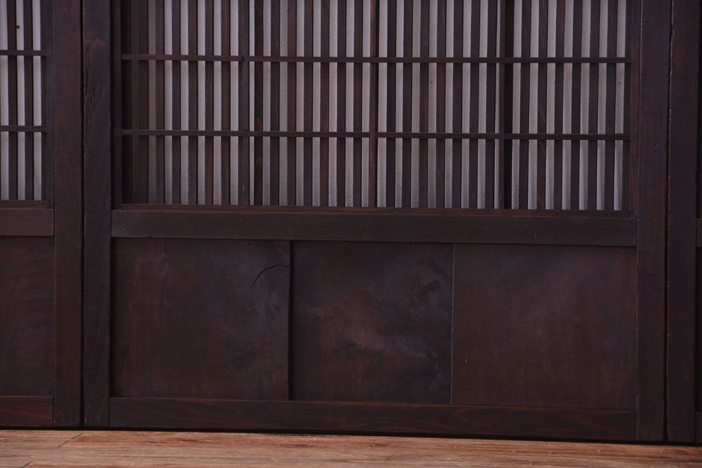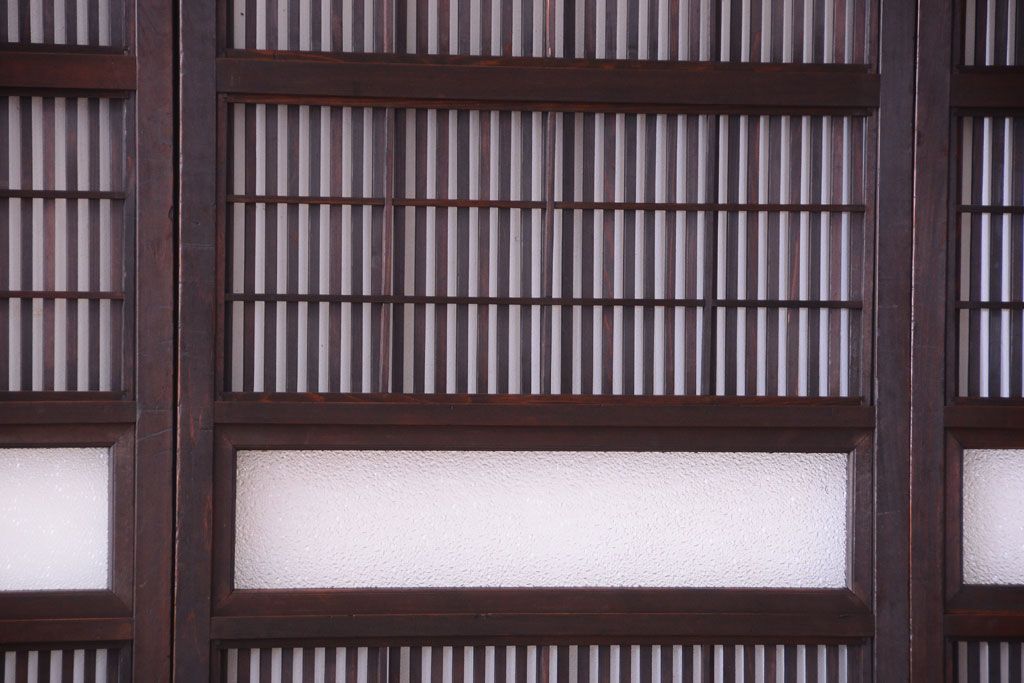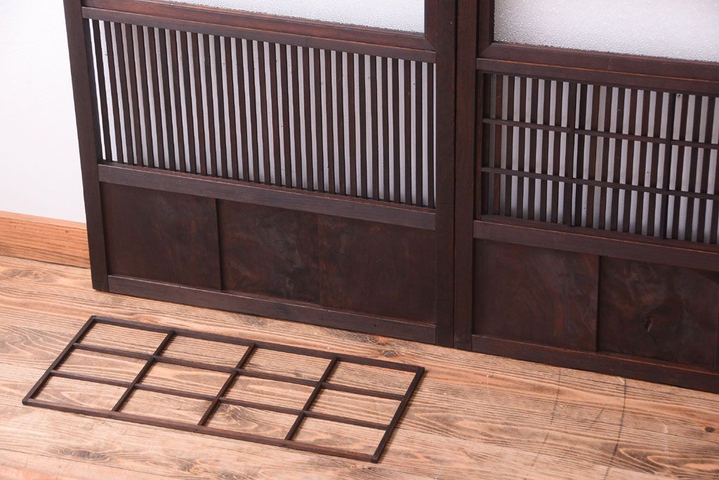 古民具・骨董 裏障子付き!ダイヤガラス帯の幅が狭いアンティーク格子戸4枚セット