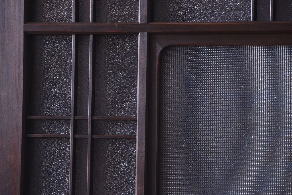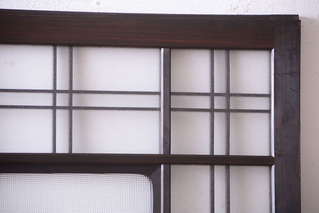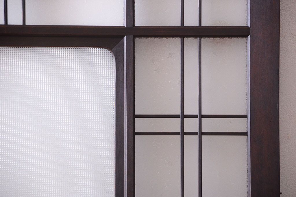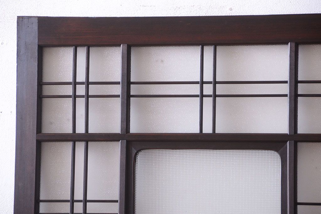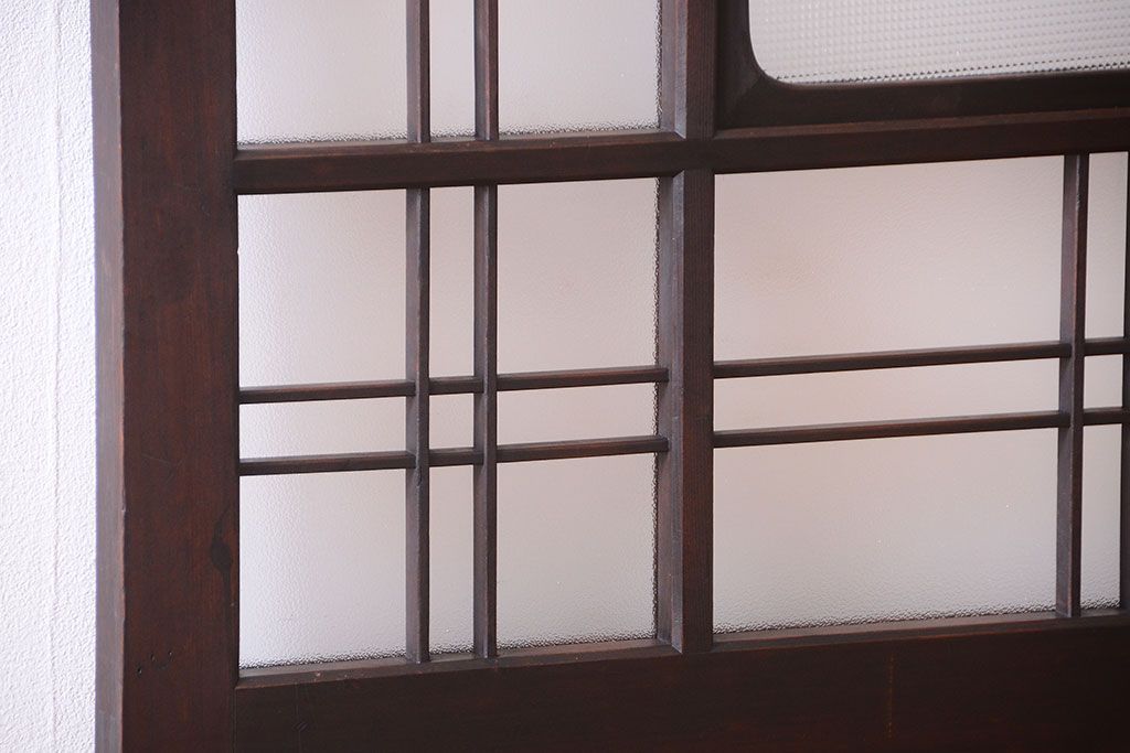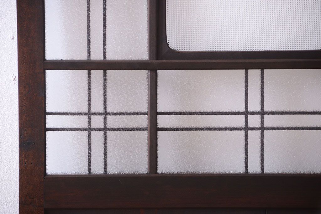 和製アンティーク ダイヤガラスとプレスガラス入り!レトロな古い木の格子引き戸