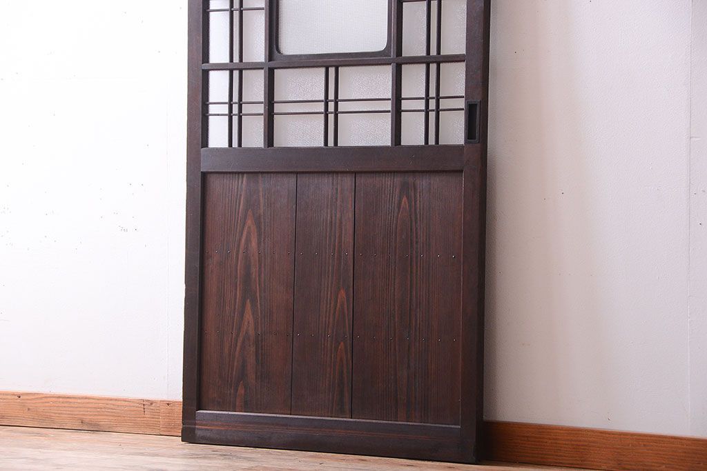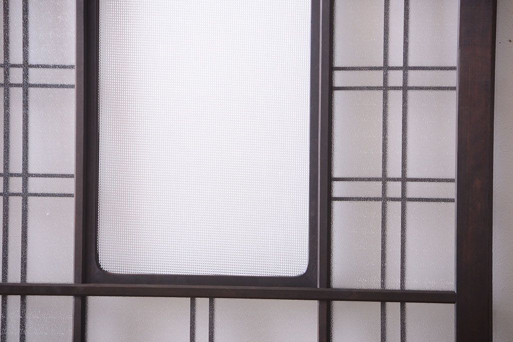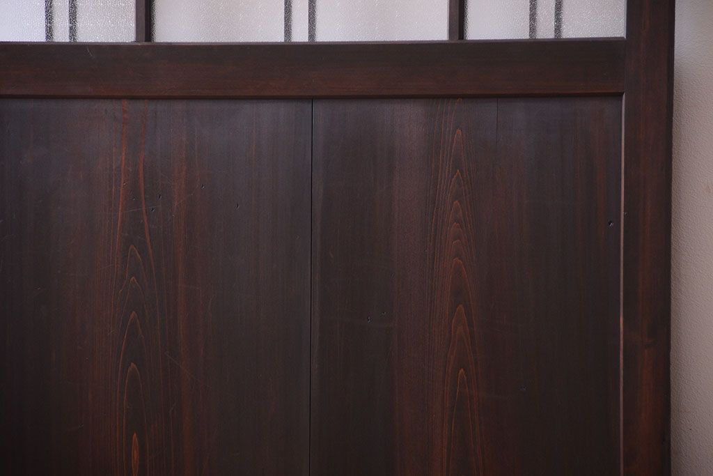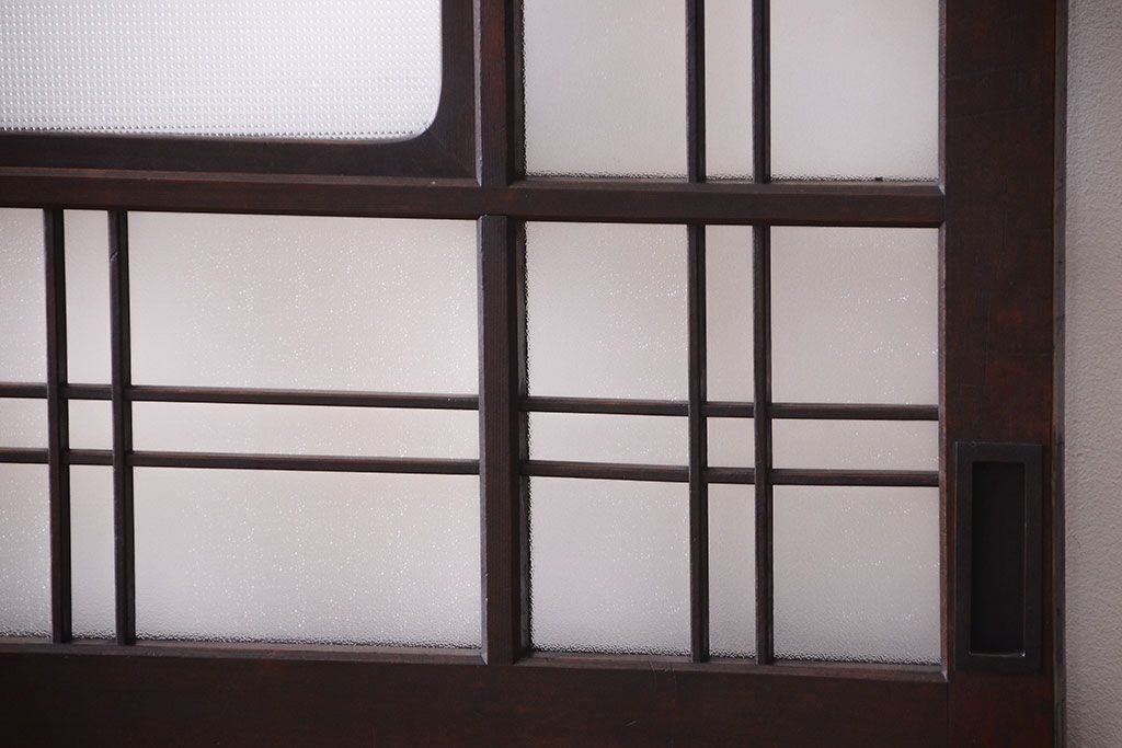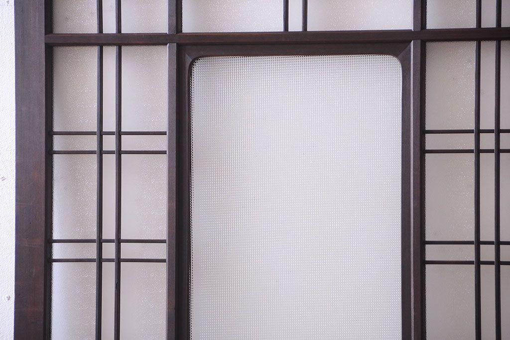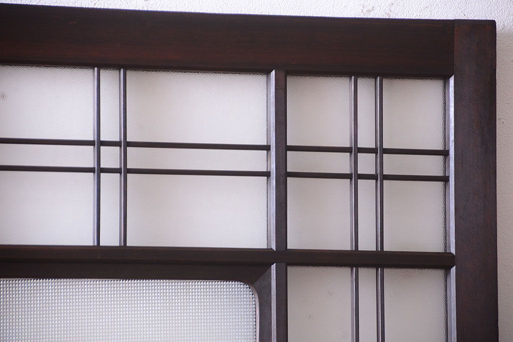 和製アンティーク ダイヤガラスとプレスガラス入り!レトロな古い木の格子引き戸