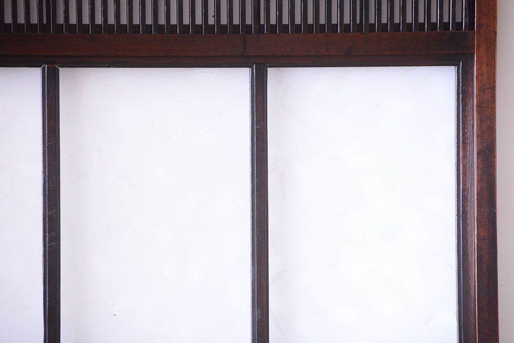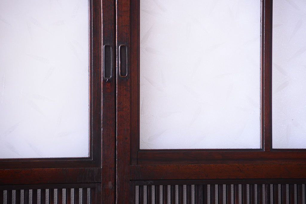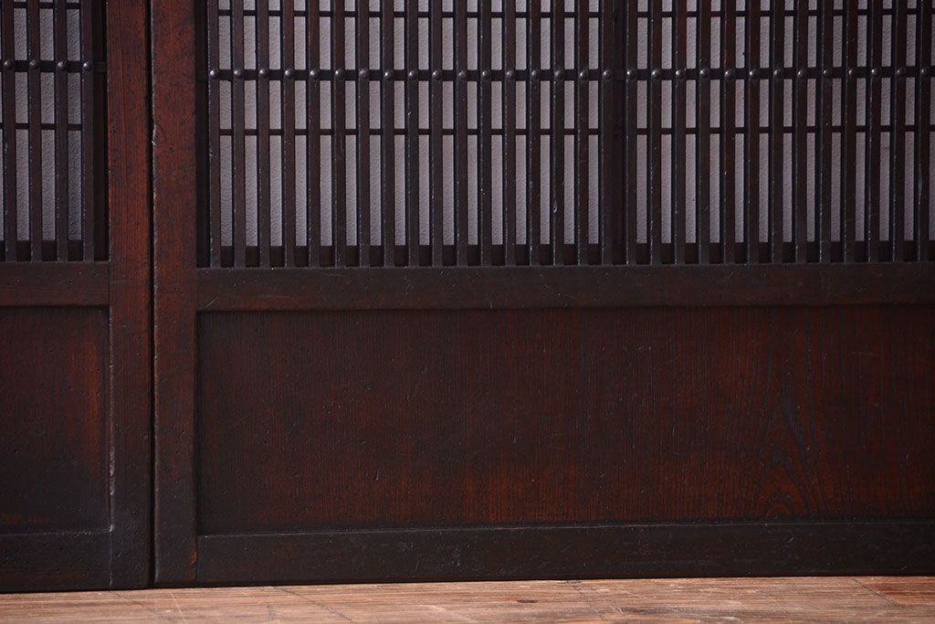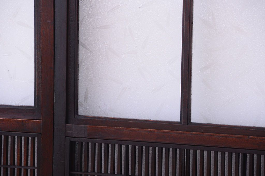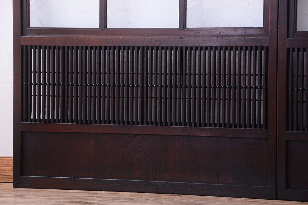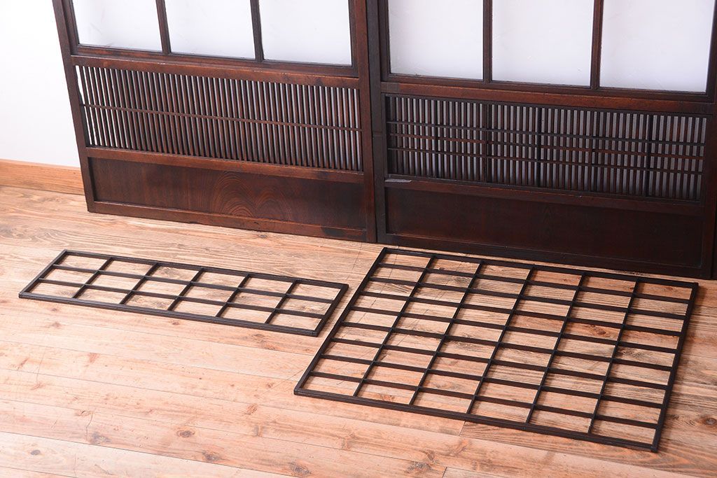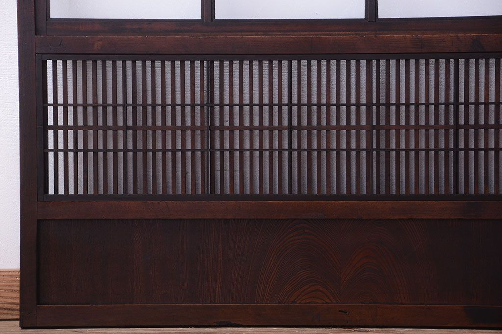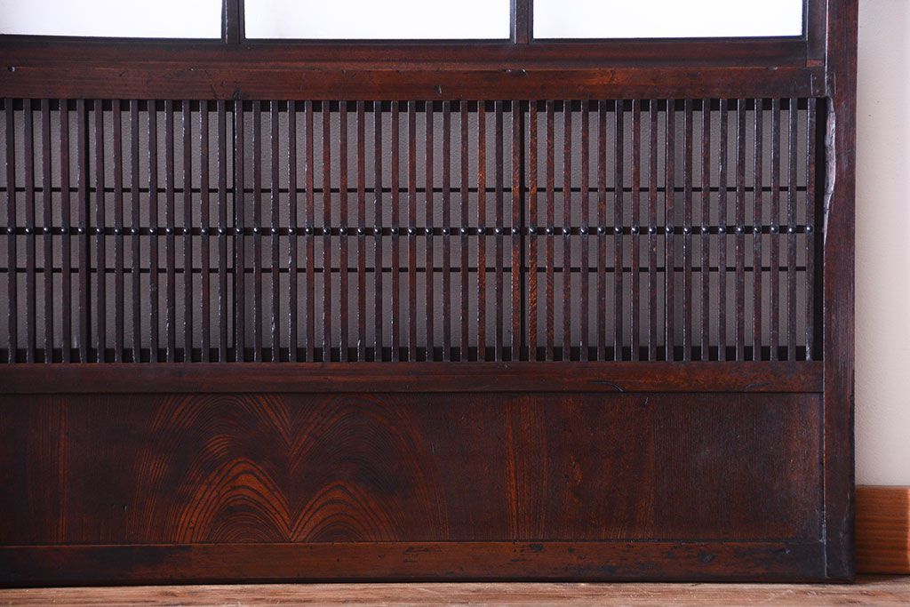 古民具・骨董 裏障子付き!腰板欅材の変わり型レトロガラス帯格子戸