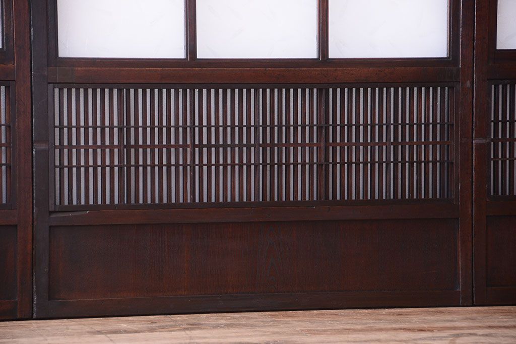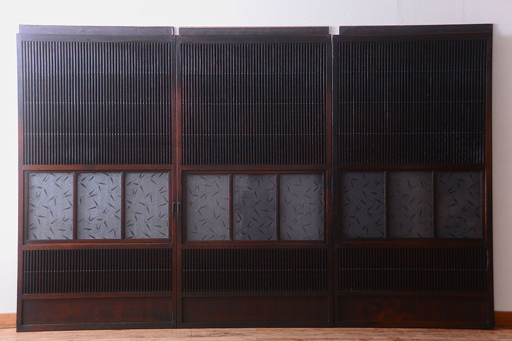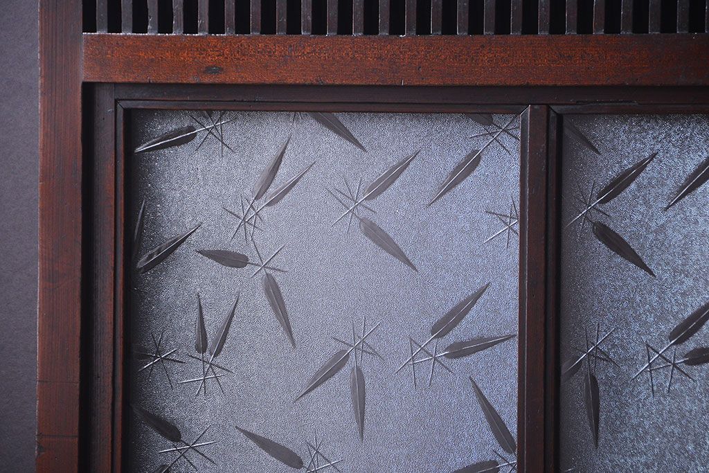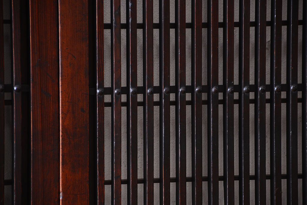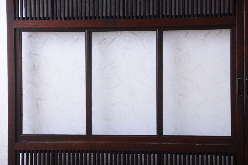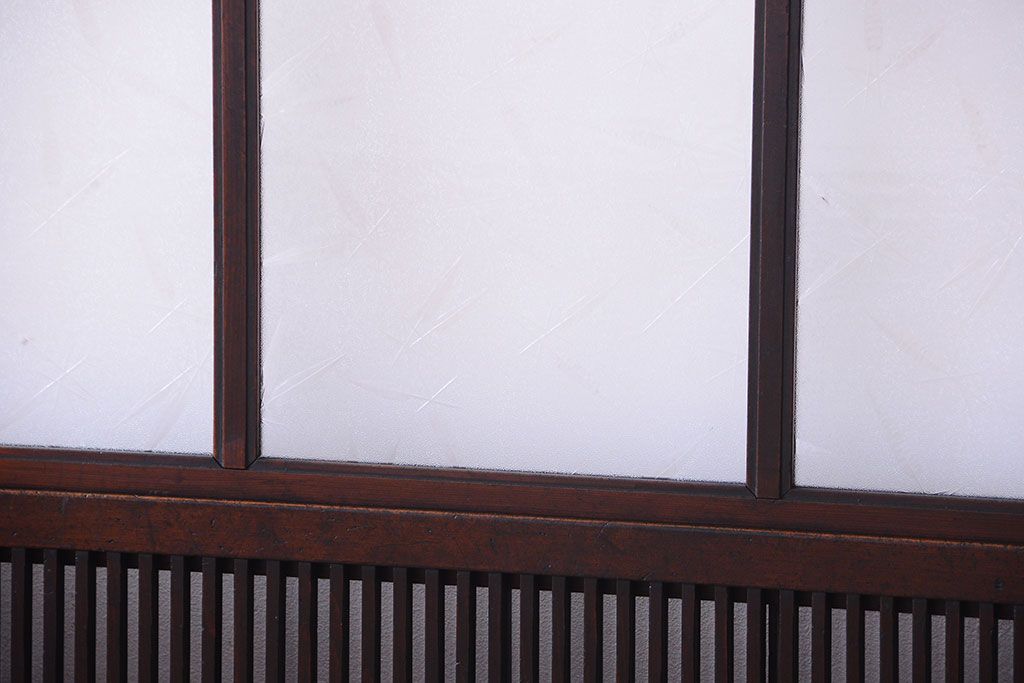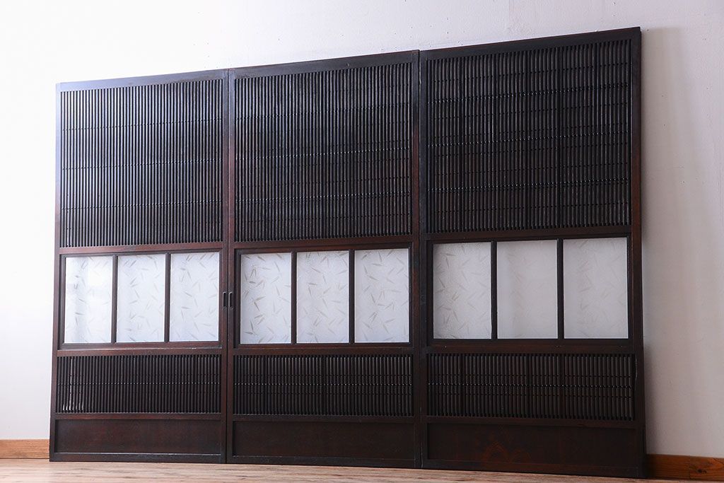 古民具・骨董 裏障子付き!腰板欅材の変わり型レトロガラス帯格子戸
