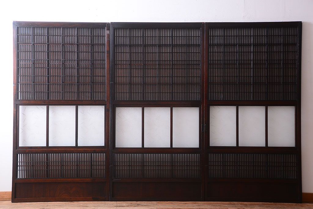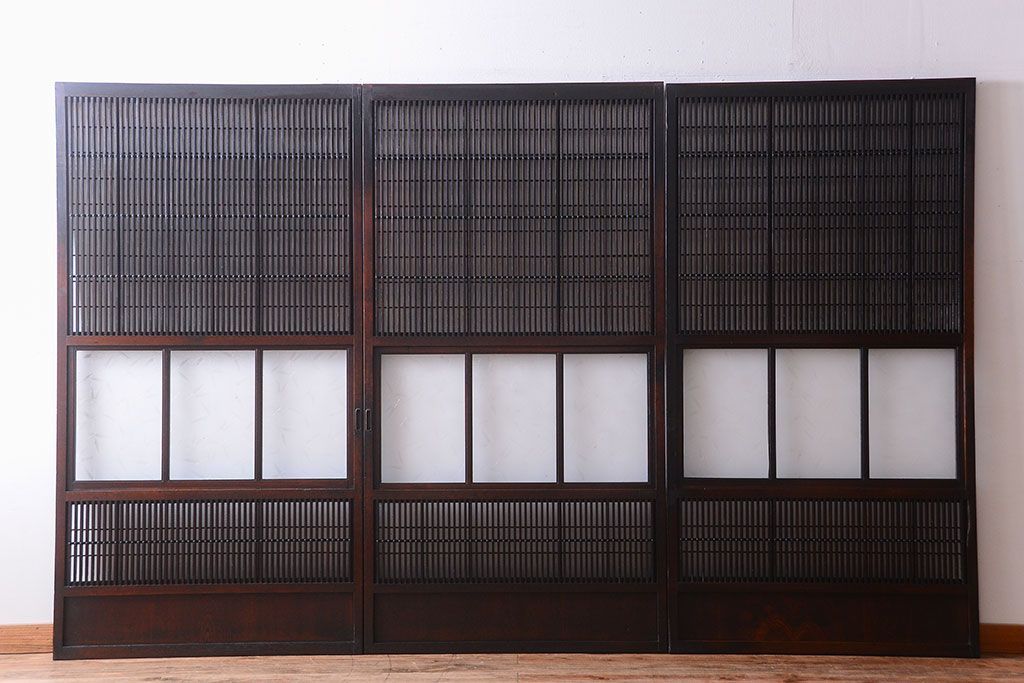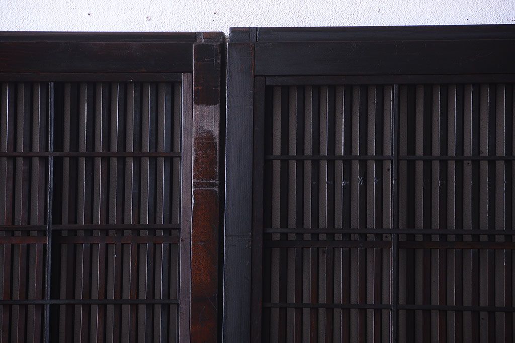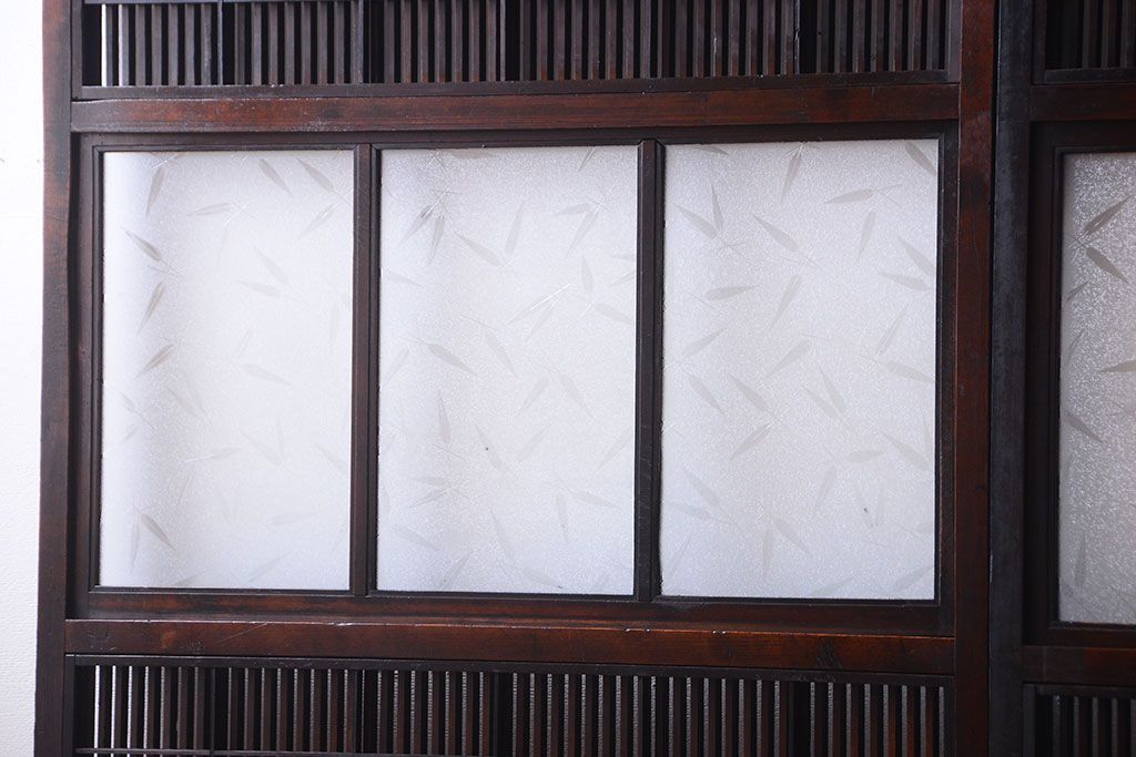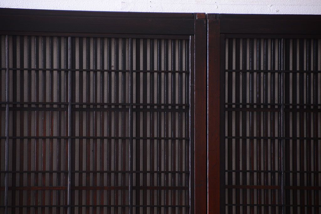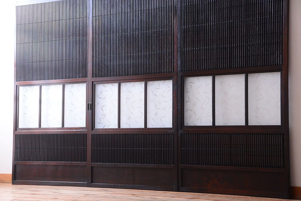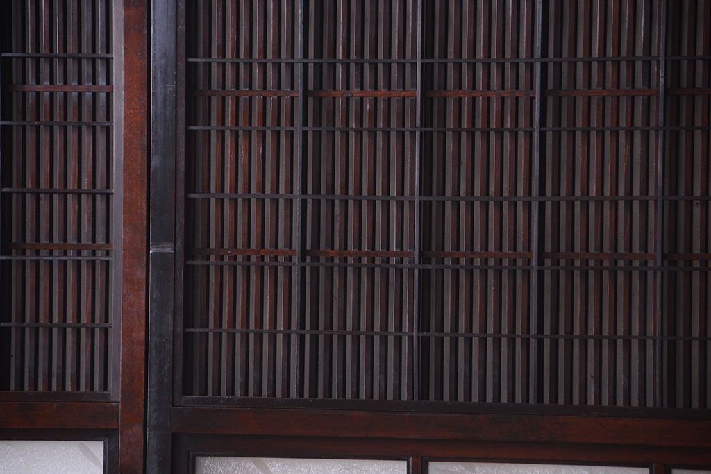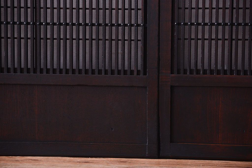 古民具・骨董 裏障子付き!腰板欅材の変わり型レトロガラス帯格子戸