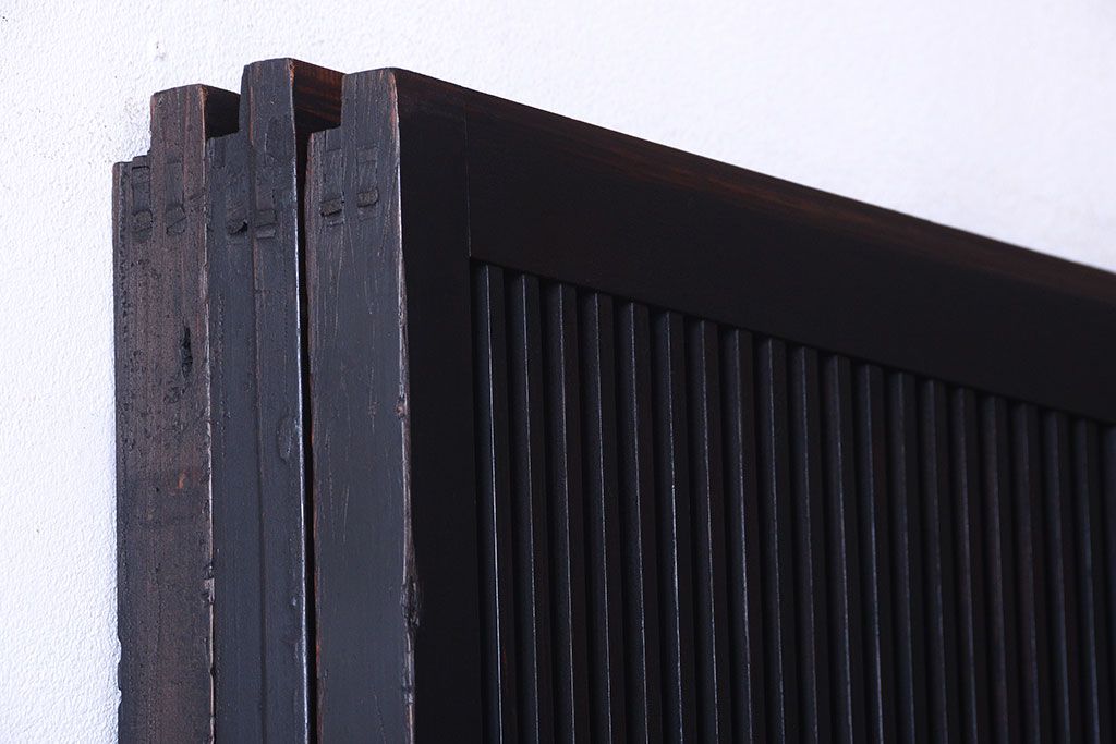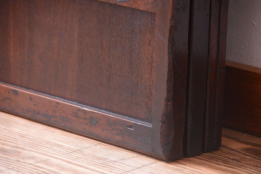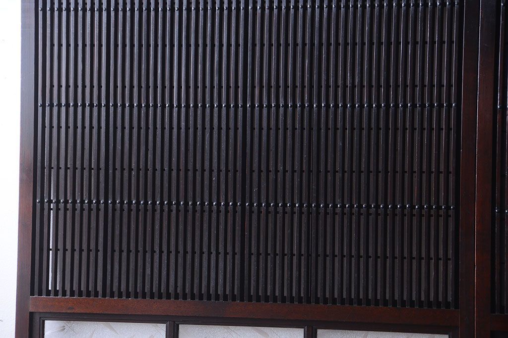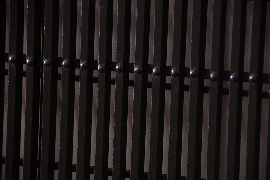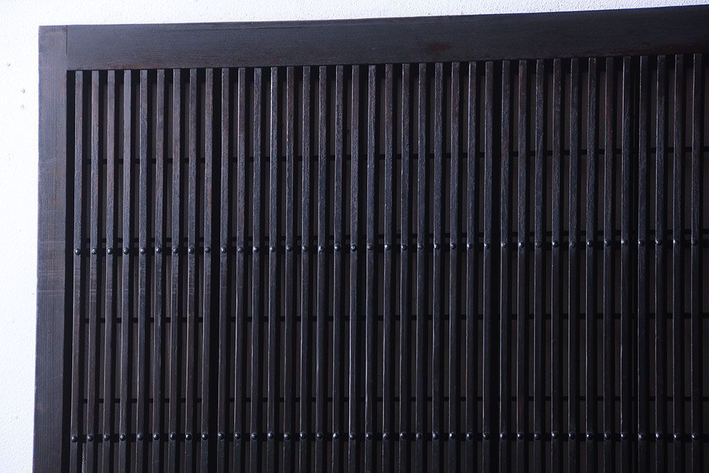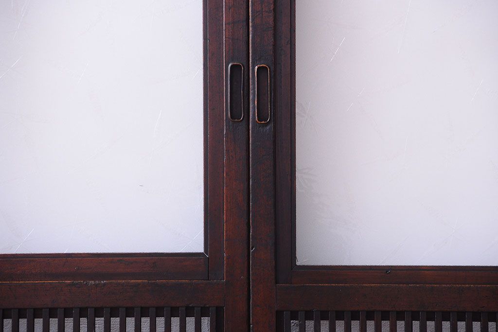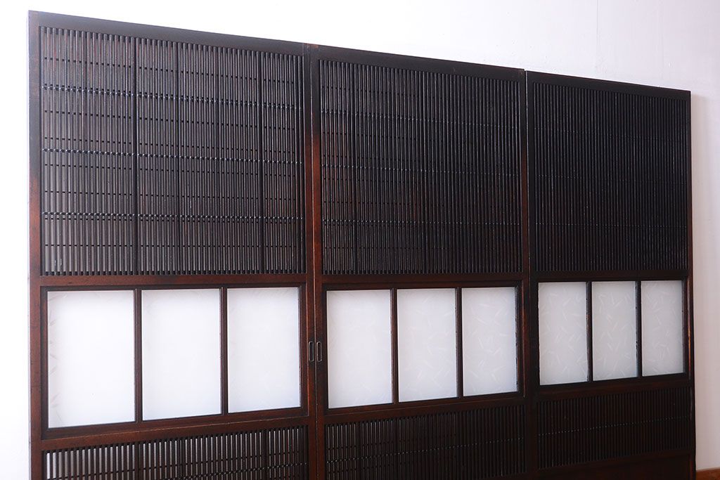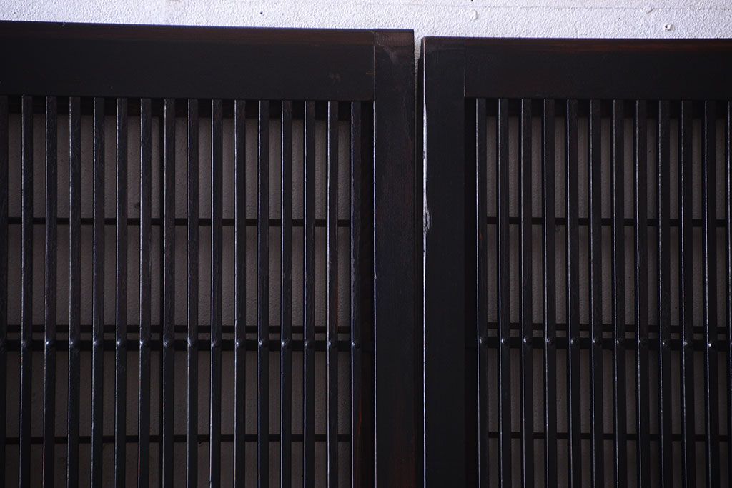 古民具・骨董 裏障子付き!腰板欅材の変わり型レトロガラス帯格子戸