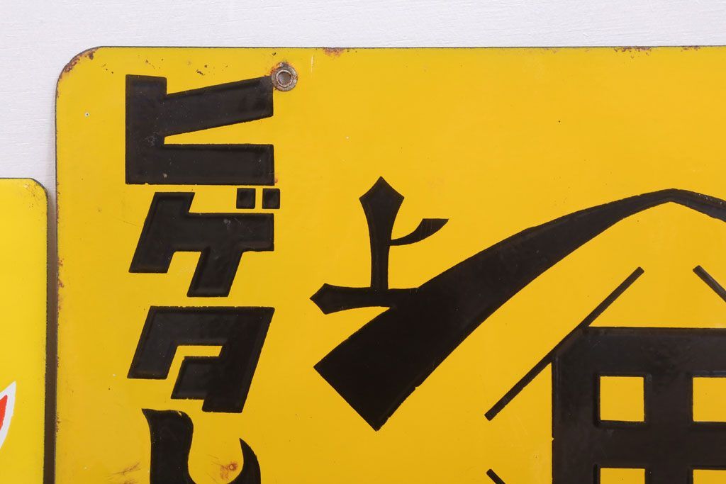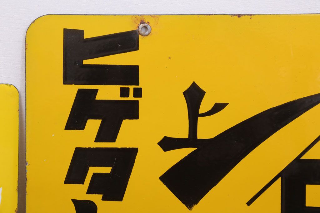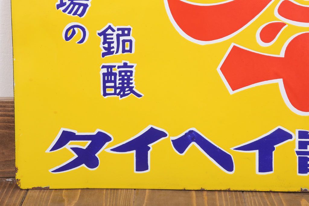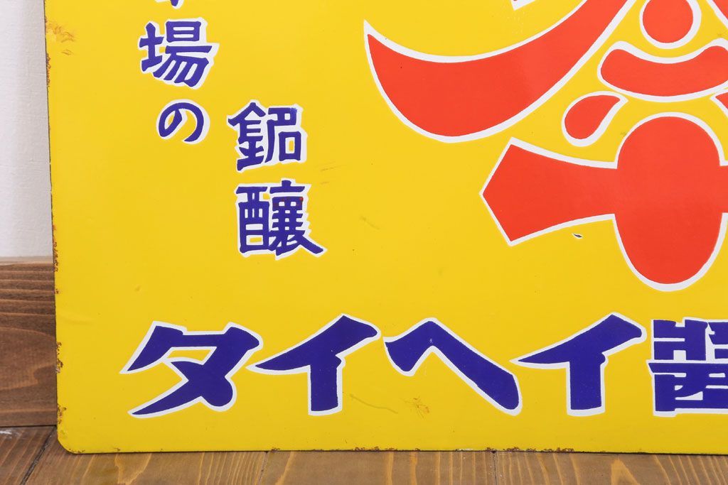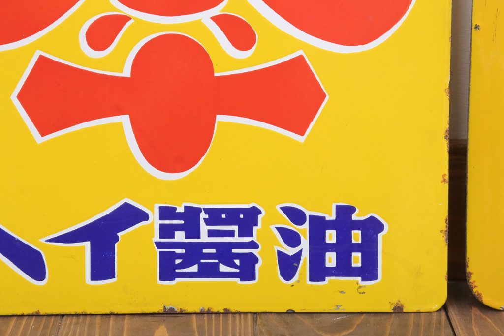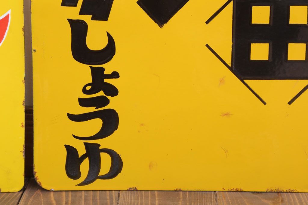 アンティーク雑貨 昭和レトロ デッドストック タイヘイ醤油・ヒゲタしょうゆ ホーロー看板2枚セット(企業看板)