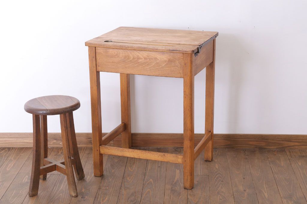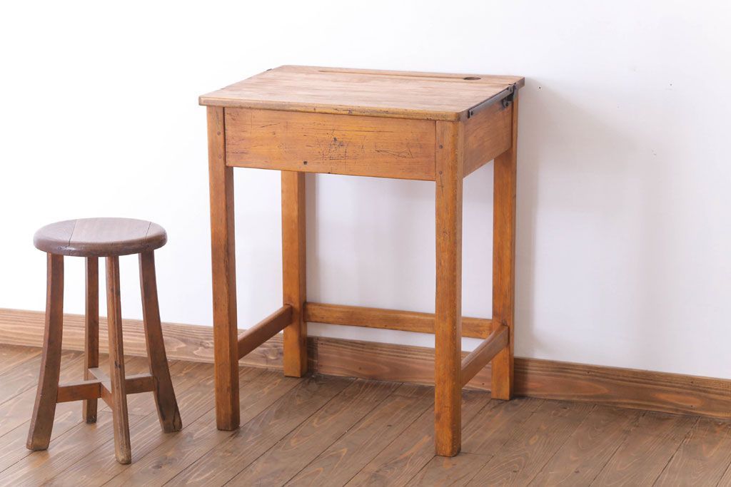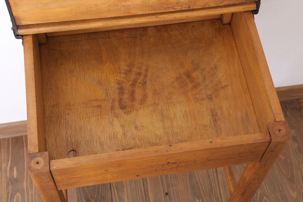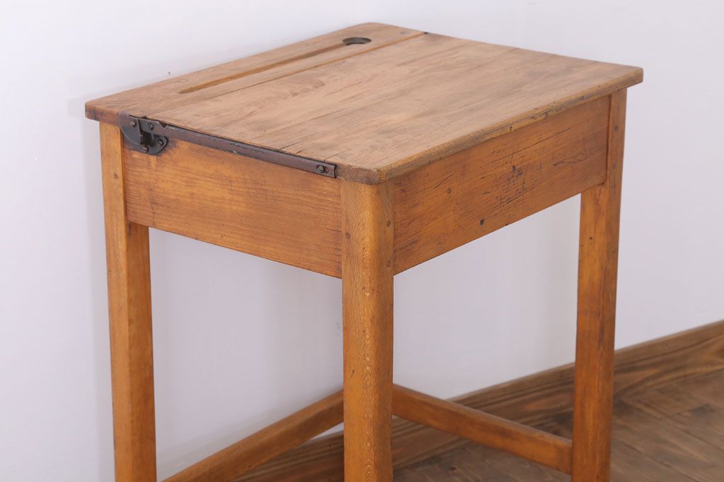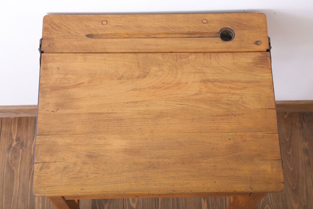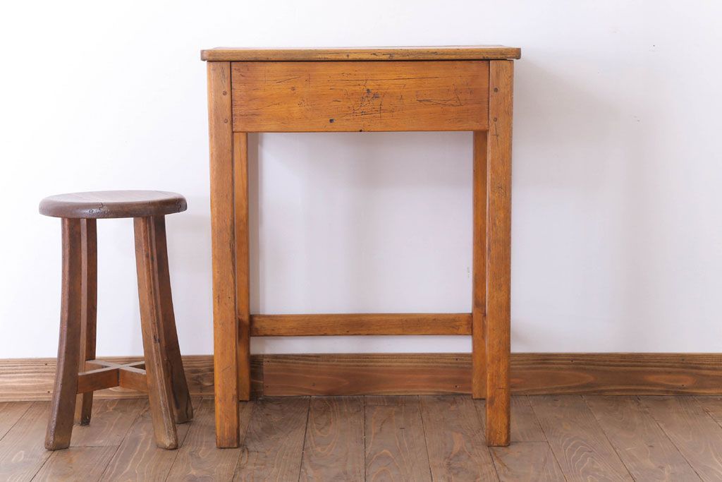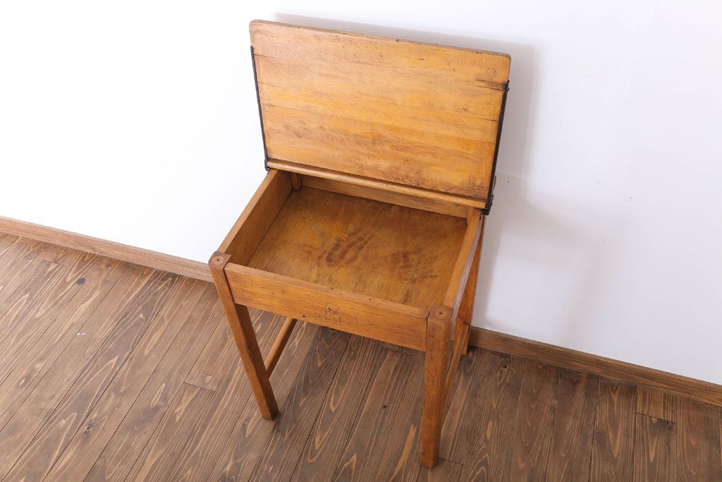 アンティーク家具 イギリスアンティーク 古い木の小ぶりなスクールデスク(2)