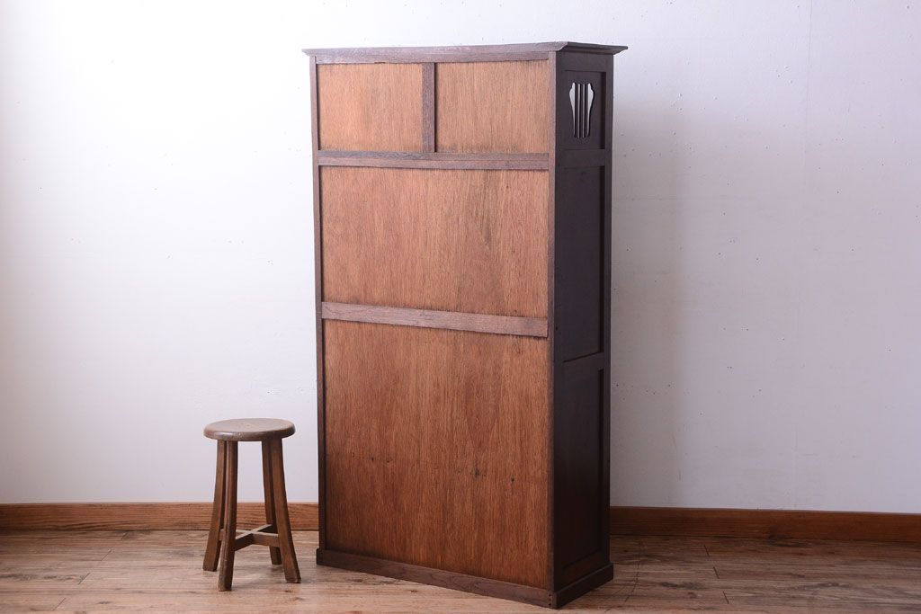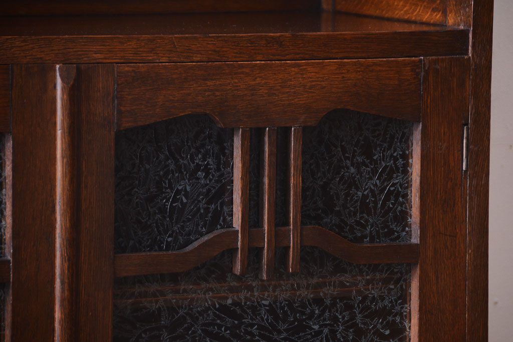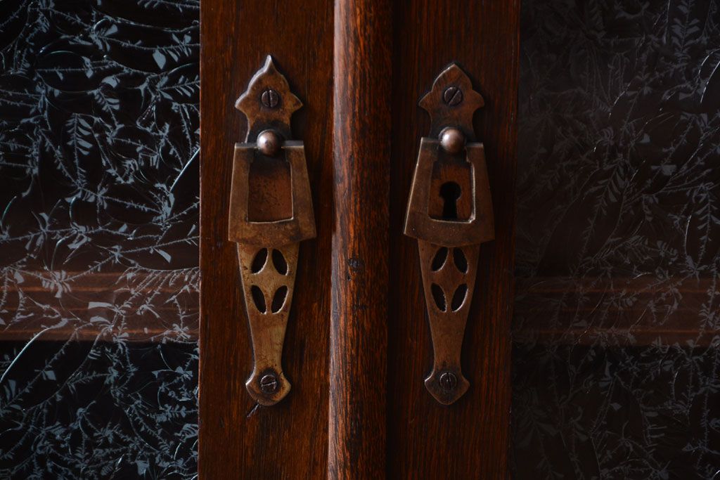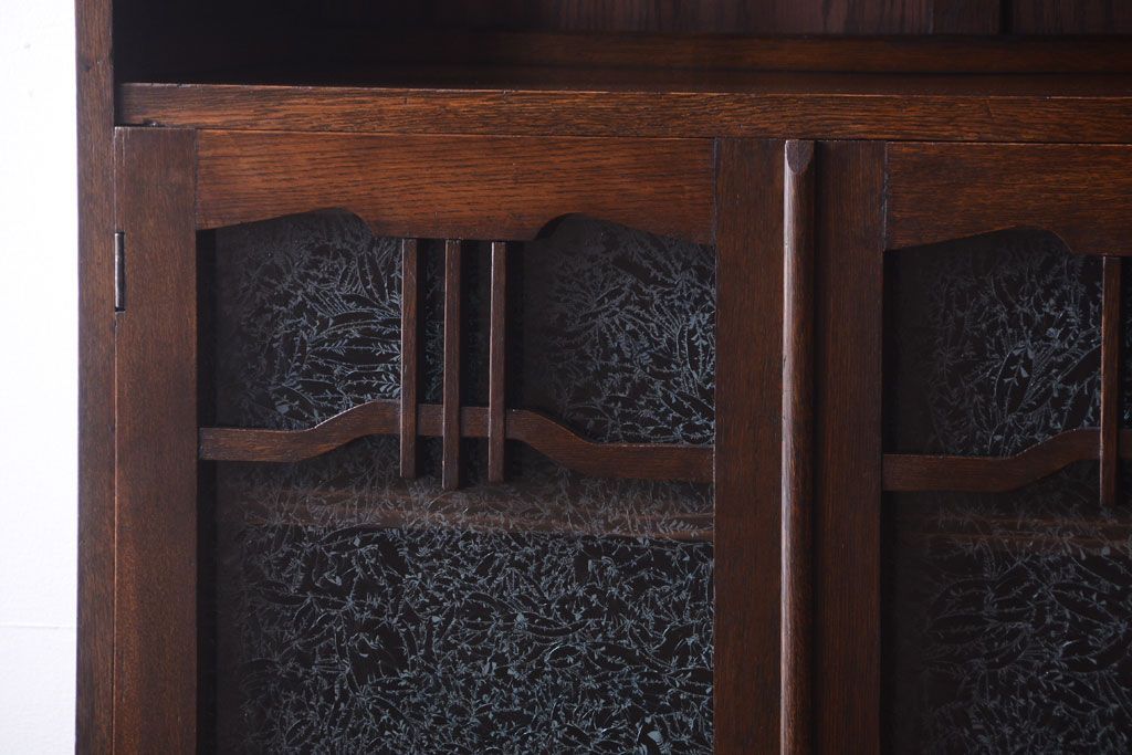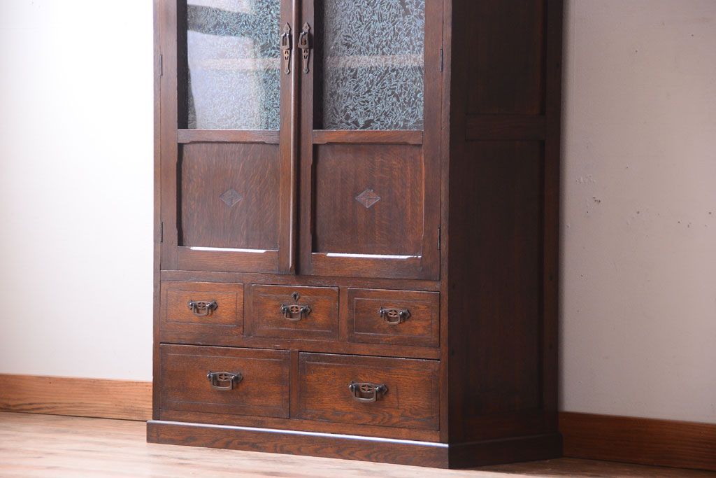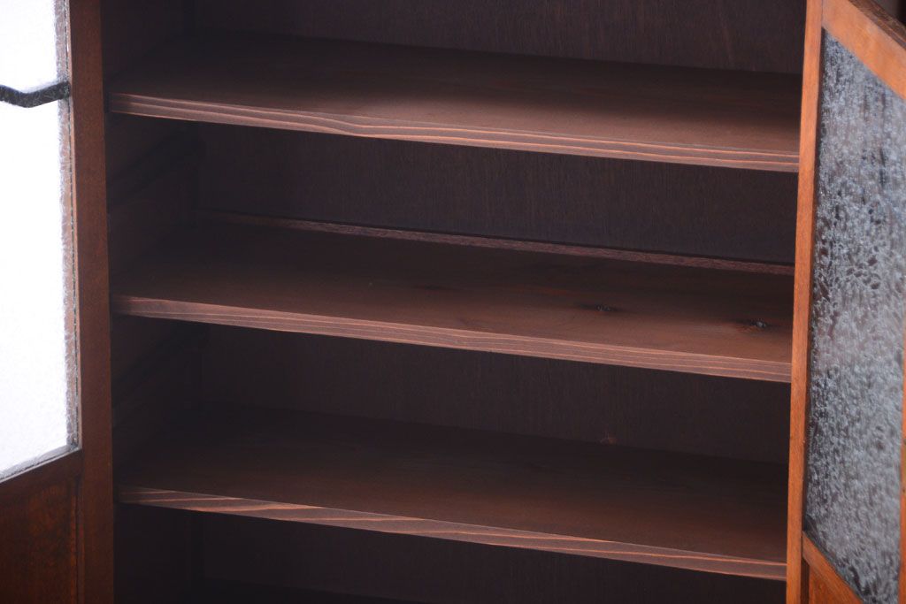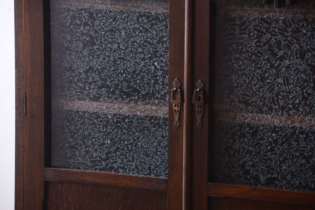 アンティーク家具 大正ロマン 透かし・象嵌入り!結霜ガラス戸の栓材製本箱(ブックケース)