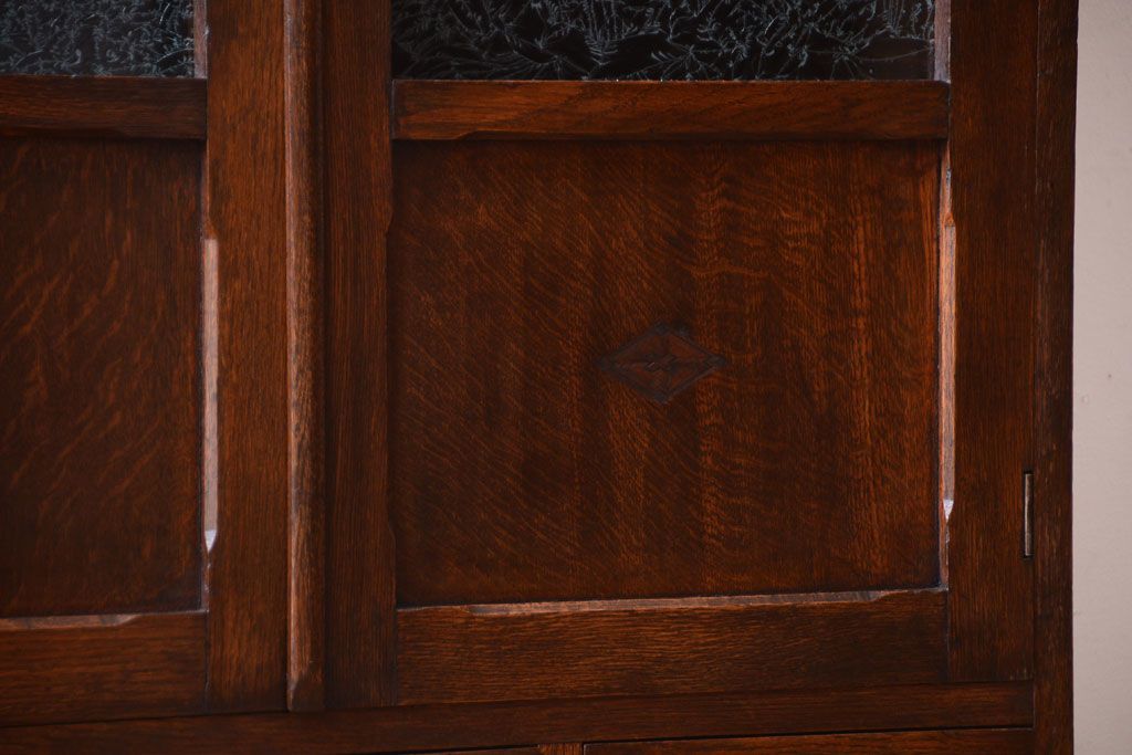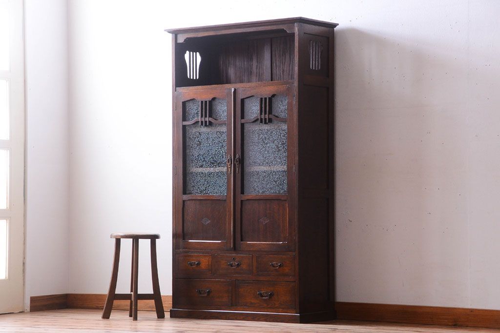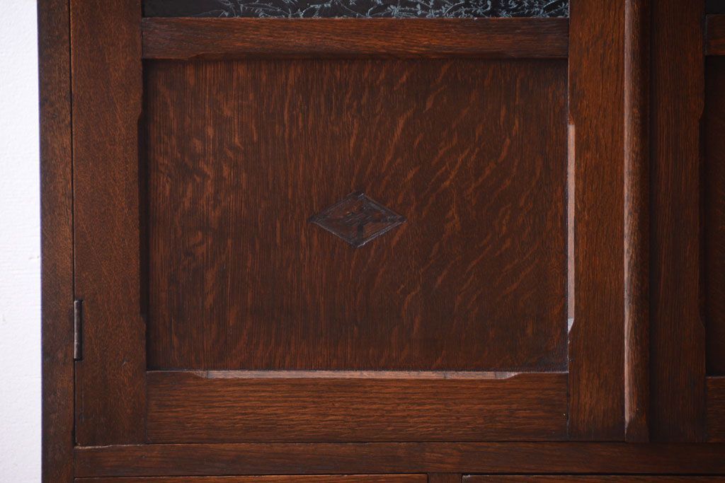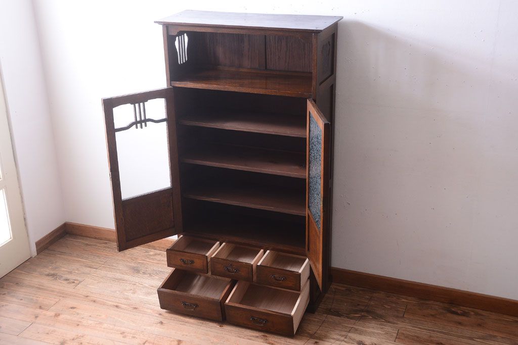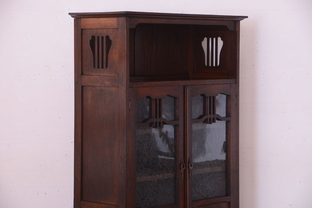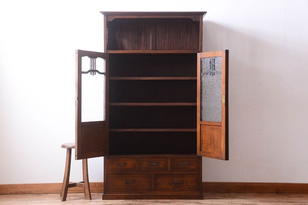 アンティーク家具 大正ロマン 透かし・象嵌入り!結霜ガラス戸の栓材製本箱(ブックケース)