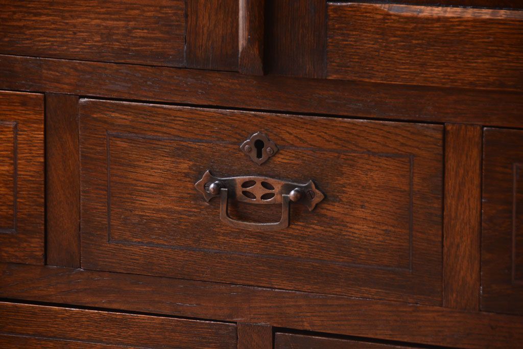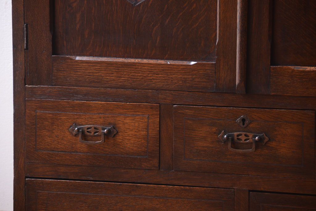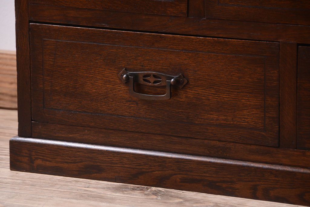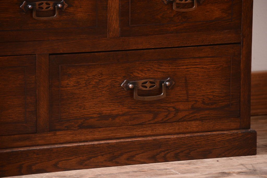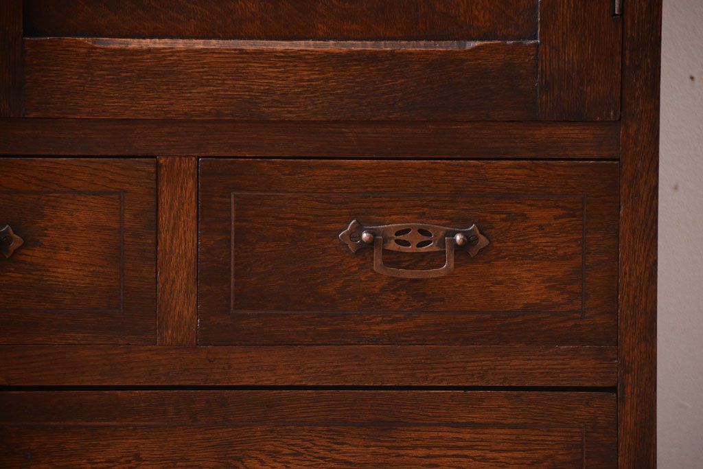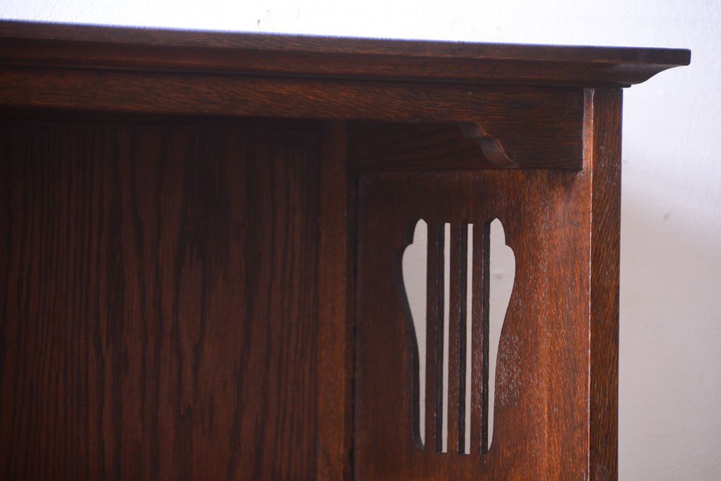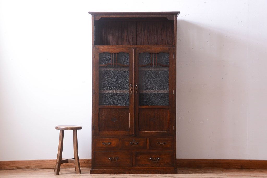 アンティーク家具 大正ロマン 透かし・象嵌入り!結霜ガラス戸の栓材製本箱(ブックケース)