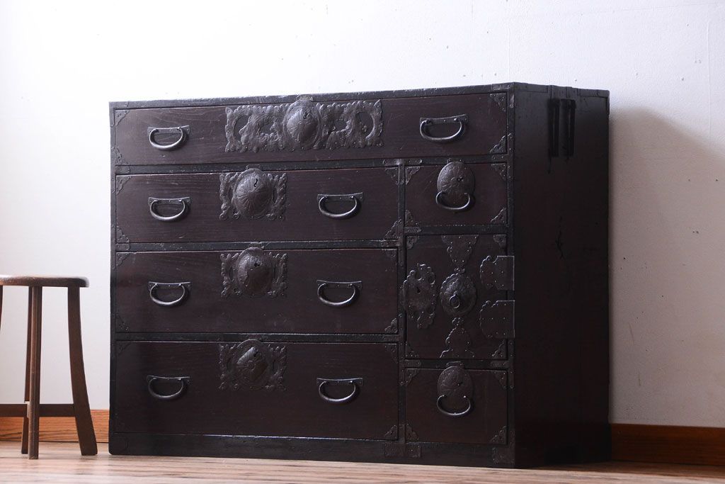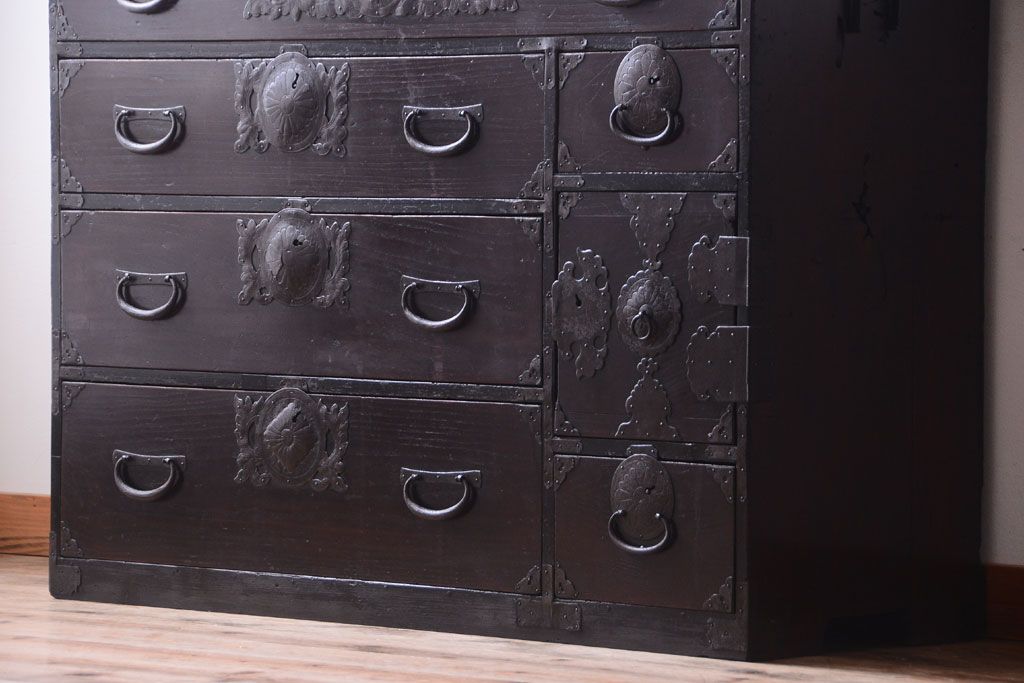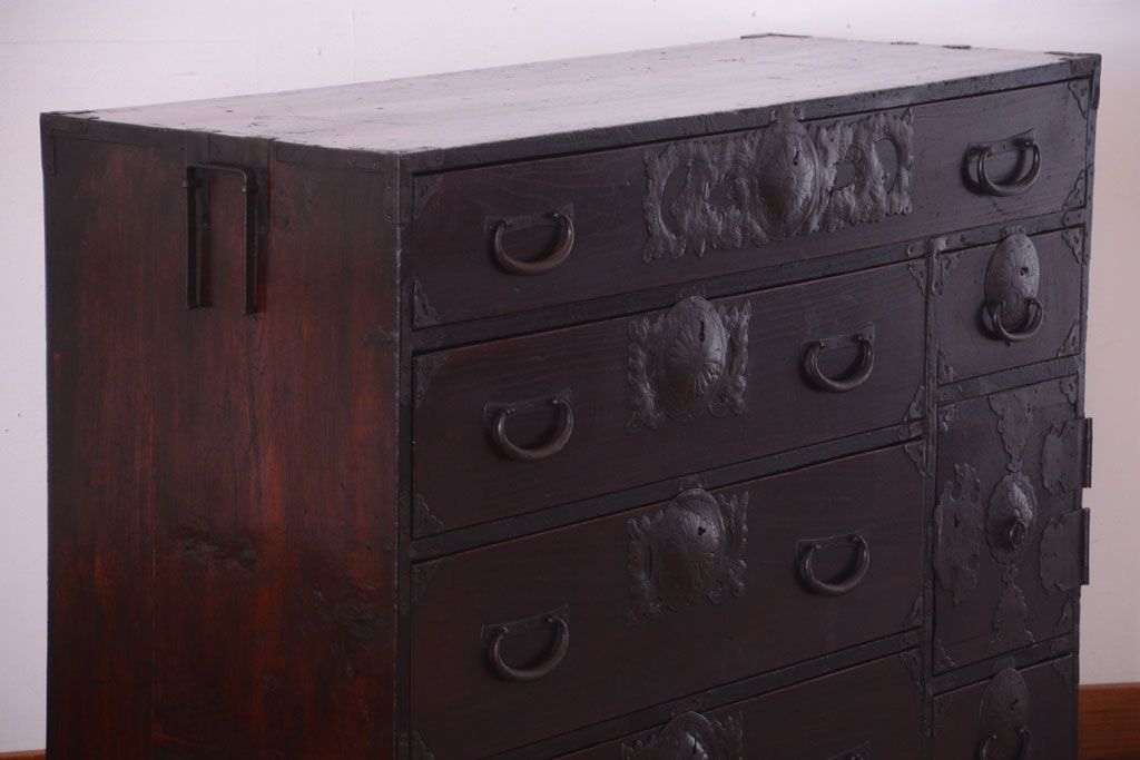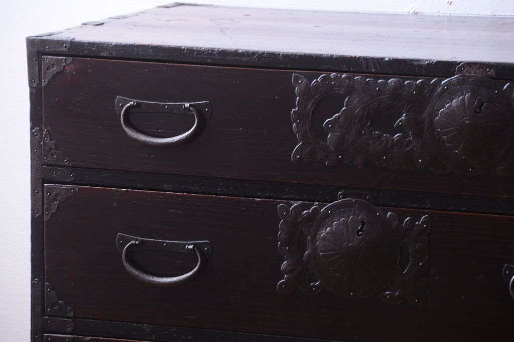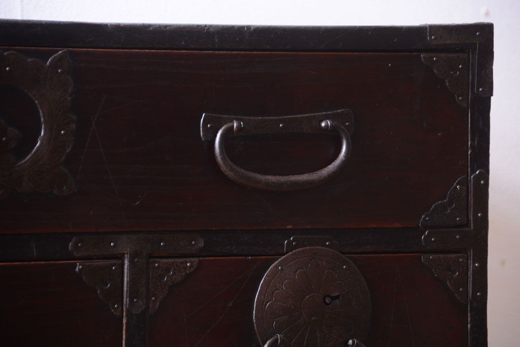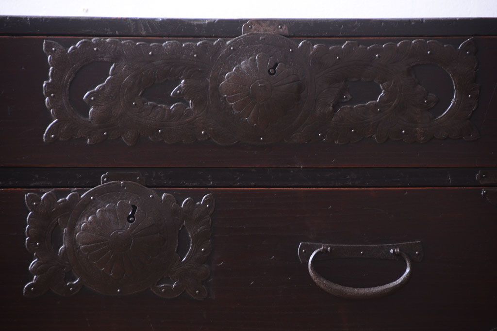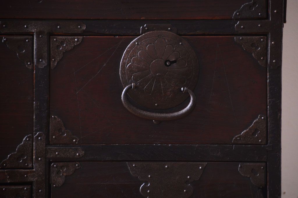 仙台箪笥らしい大きな飾り金具が美しいお品です。