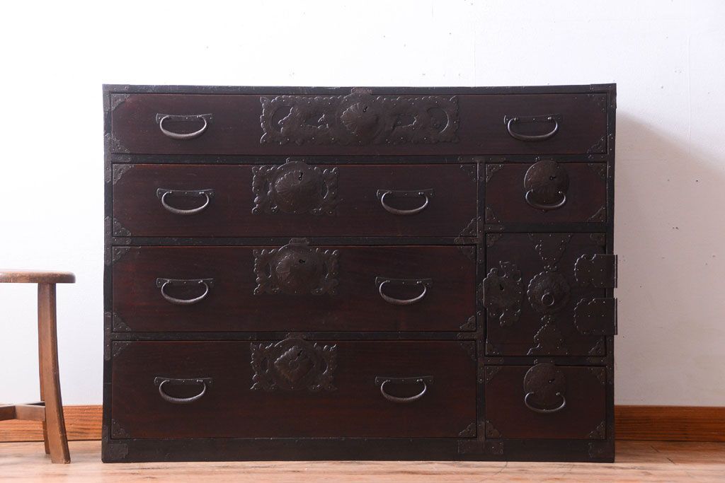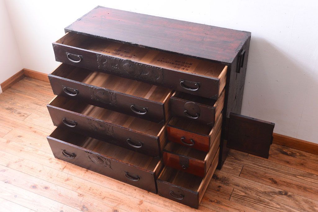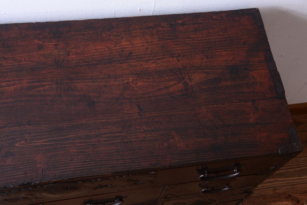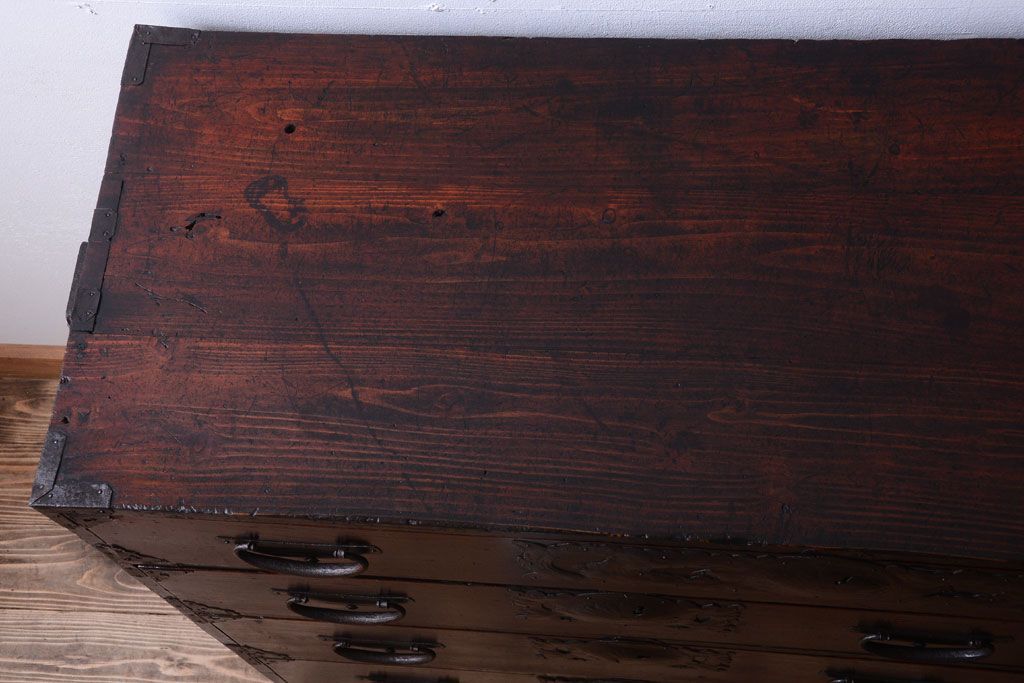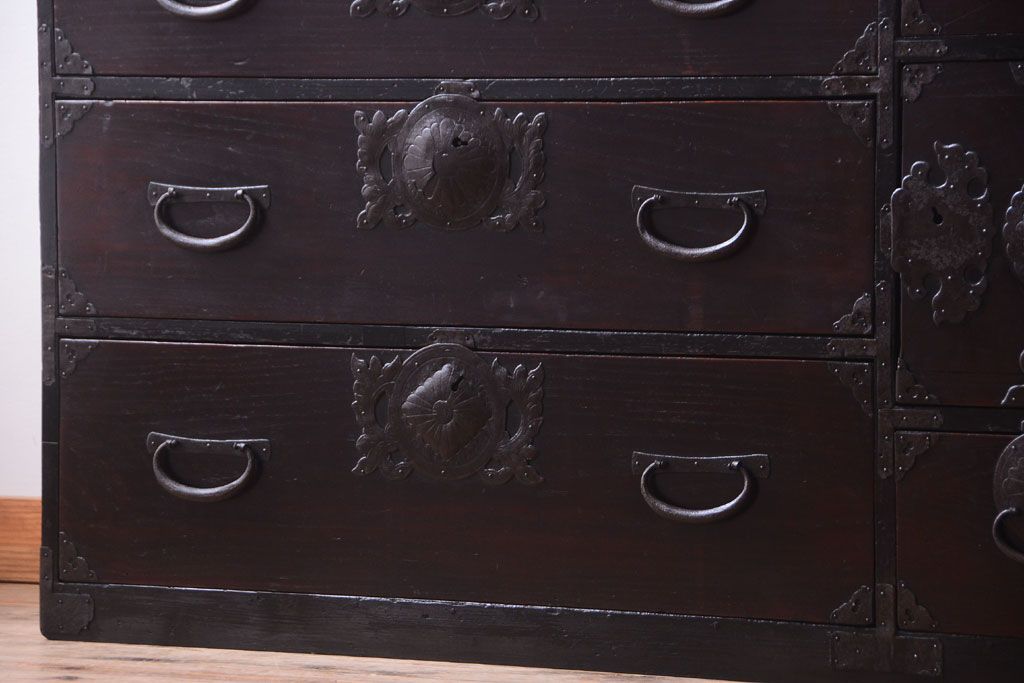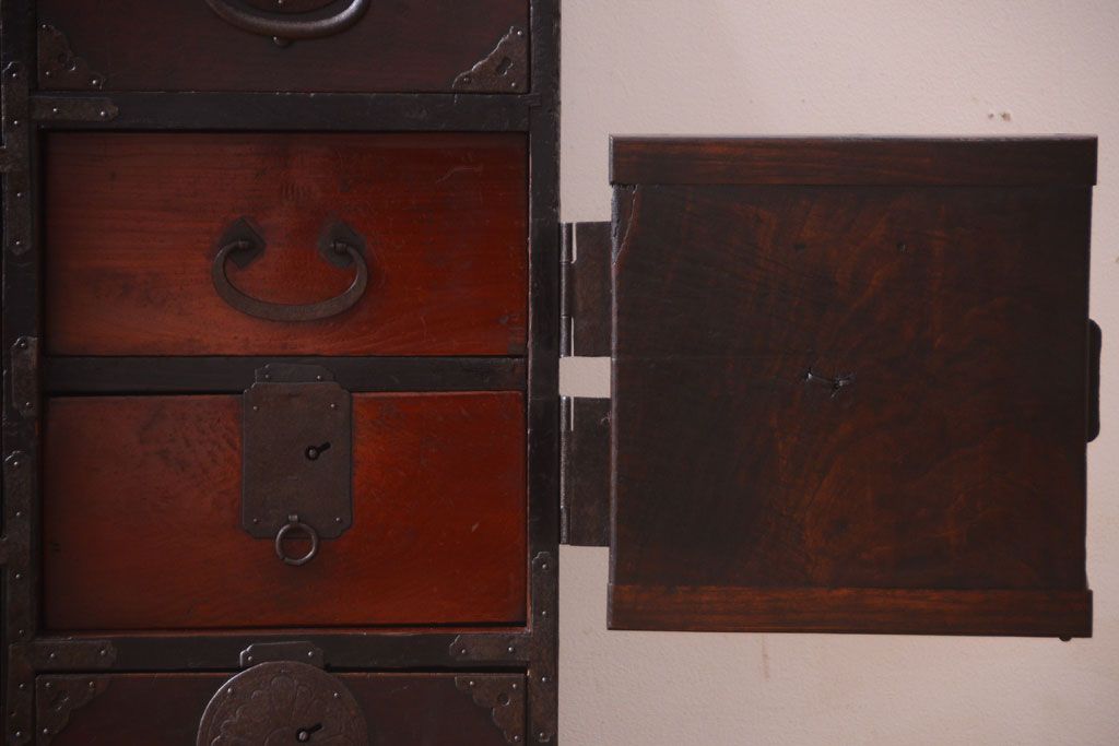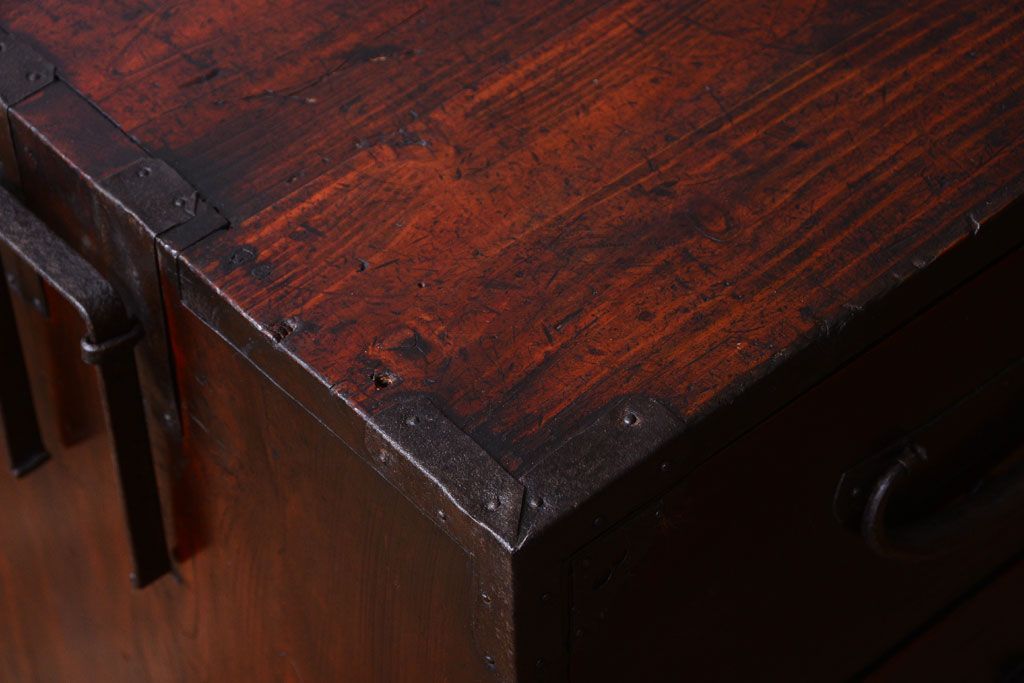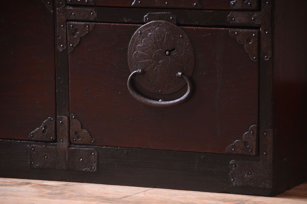 アンティーク家具 古民具・骨董 明治 前面栗材 味わい深いアンティーク仙台箪笥