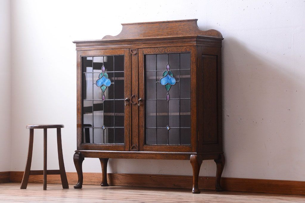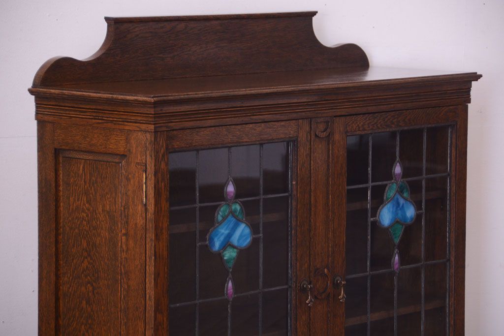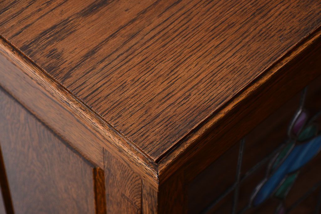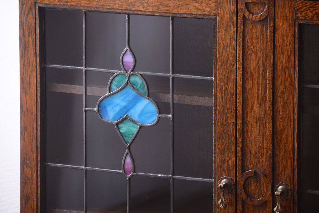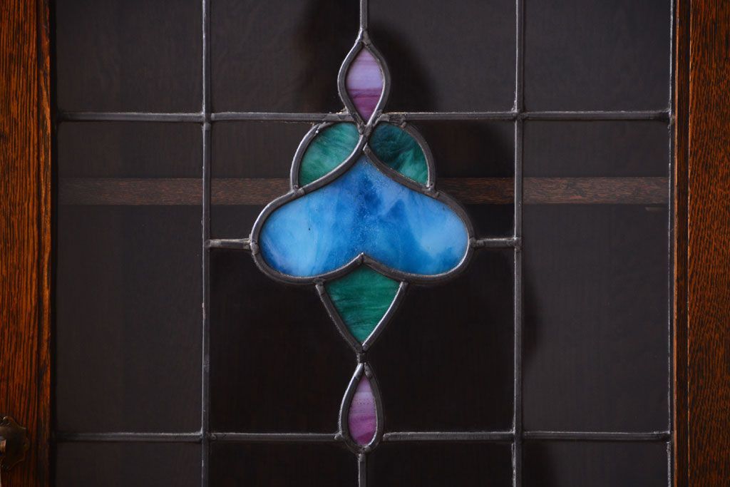 ステンドグラス > アンティーク家具 イギリスアンティーク ステンドグラス入り!オーク材製の上品で小ぶりなキャビネット(収納棚)