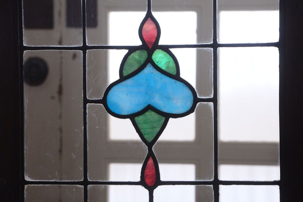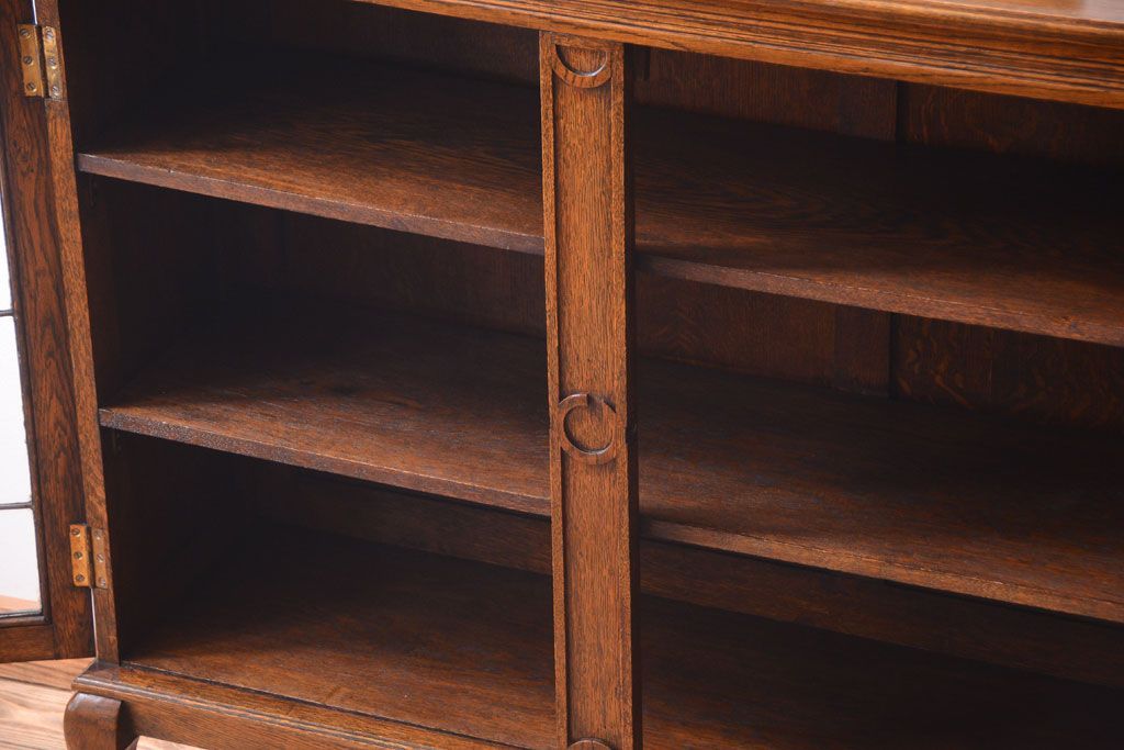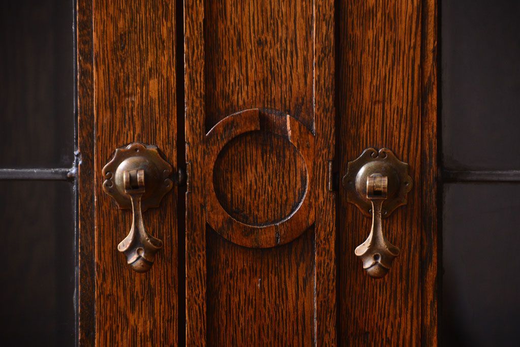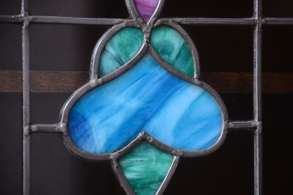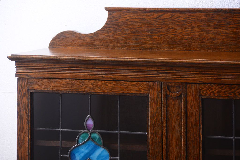 ステンドグラス > アンティーク家具 イギリスアンティーク ステンドグラス入り!オーク材製の上品で小ぶりなキャビネット(収納棚)