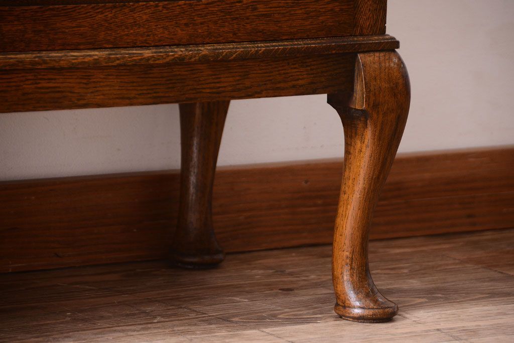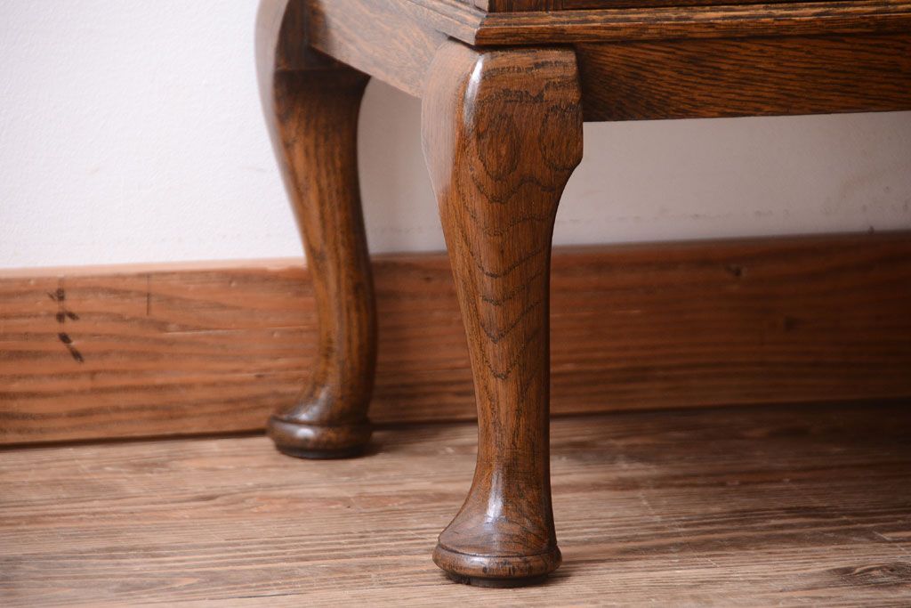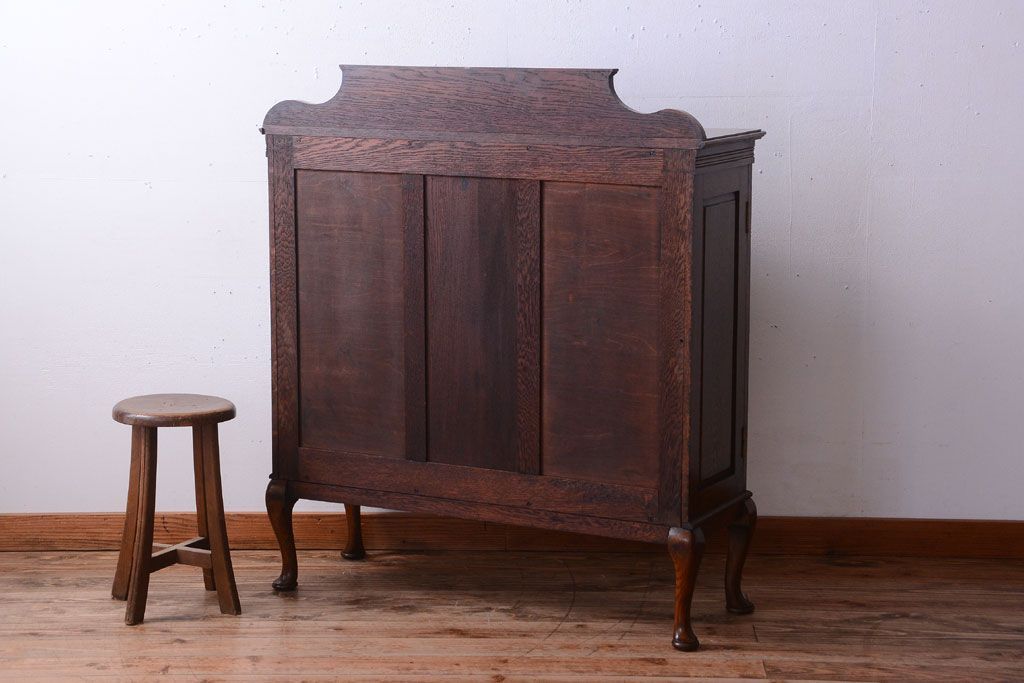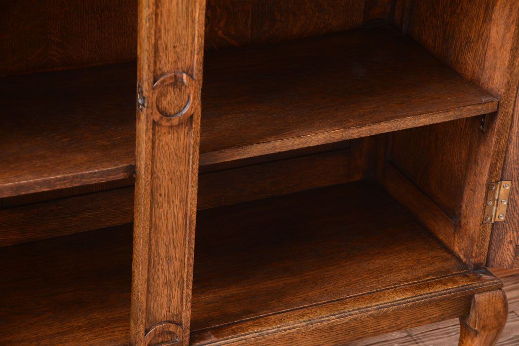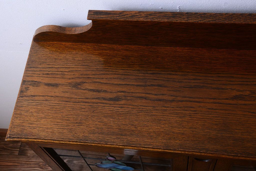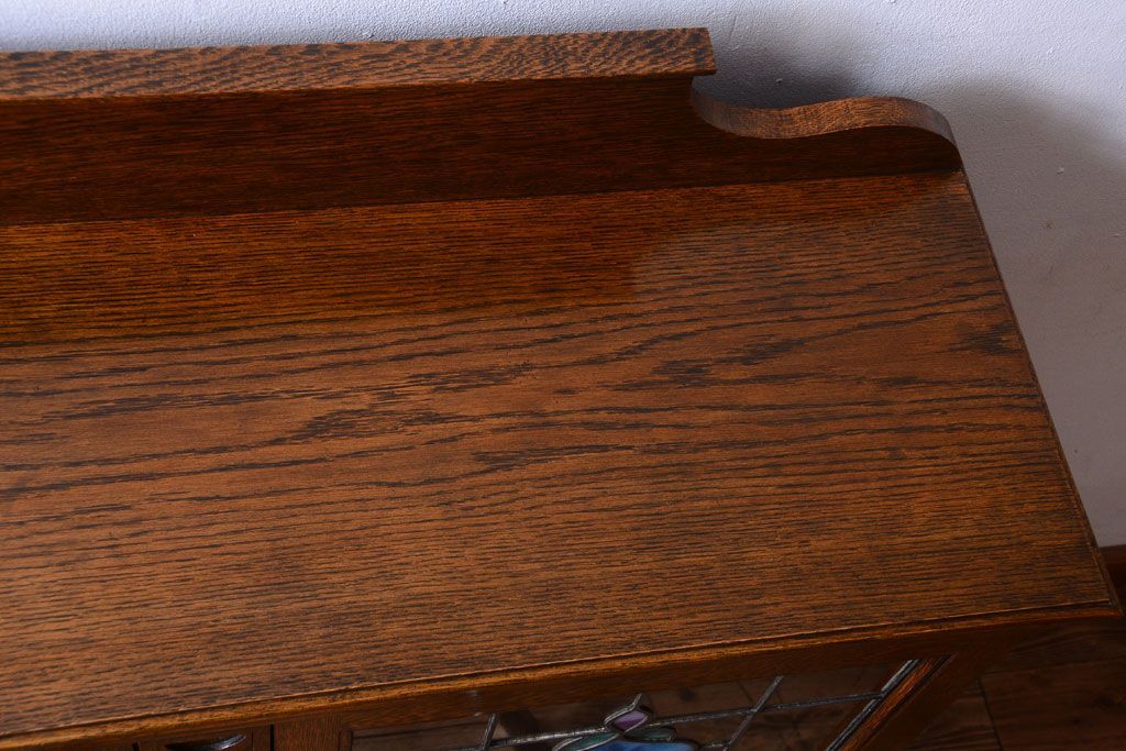 アンティーク家具 イギリスアンティーク ステンドグラス入り!オーク材製の上品で小ぶりなキャビネット(収納棚)