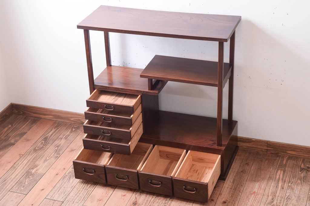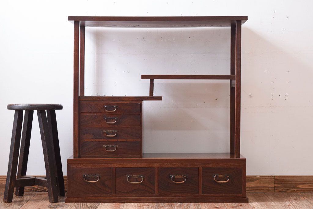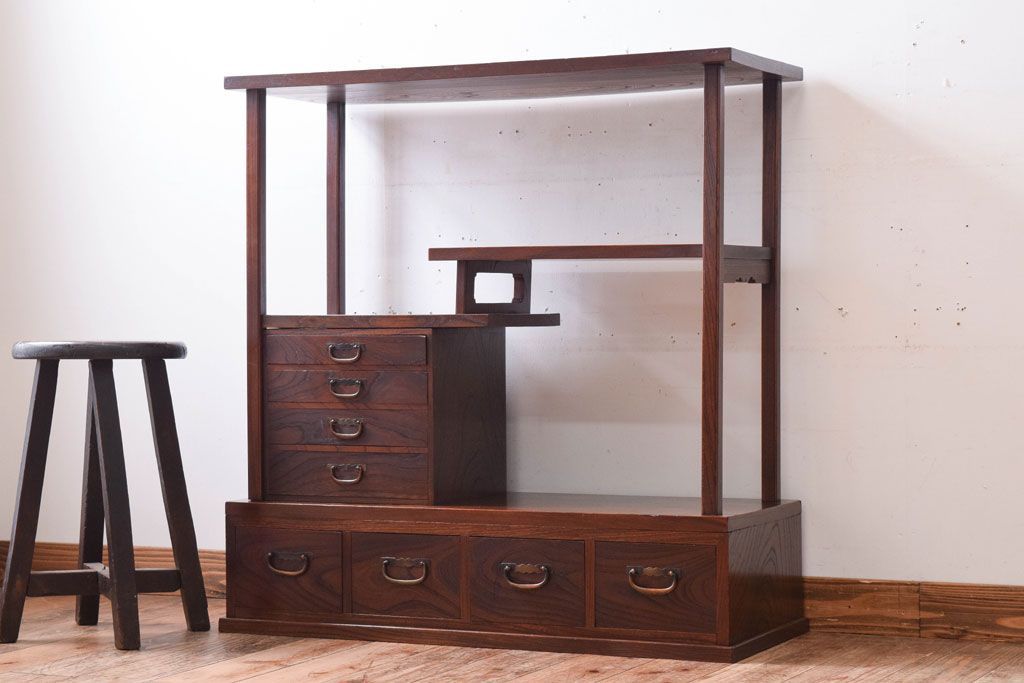 和製アンティーク 総欅材のシンプルな飾り棚(茶棚)です。