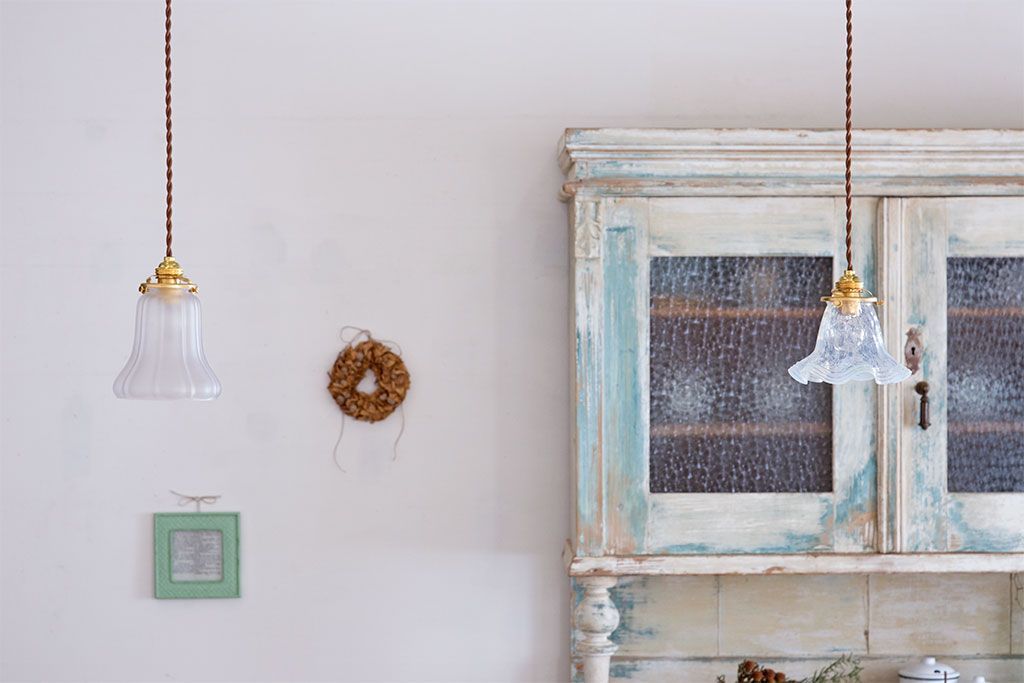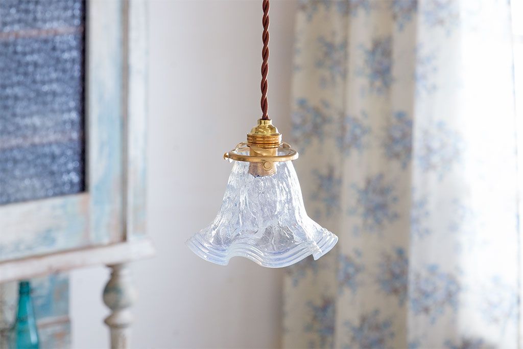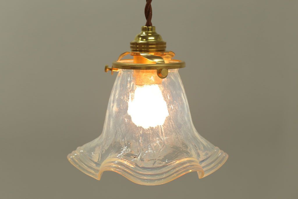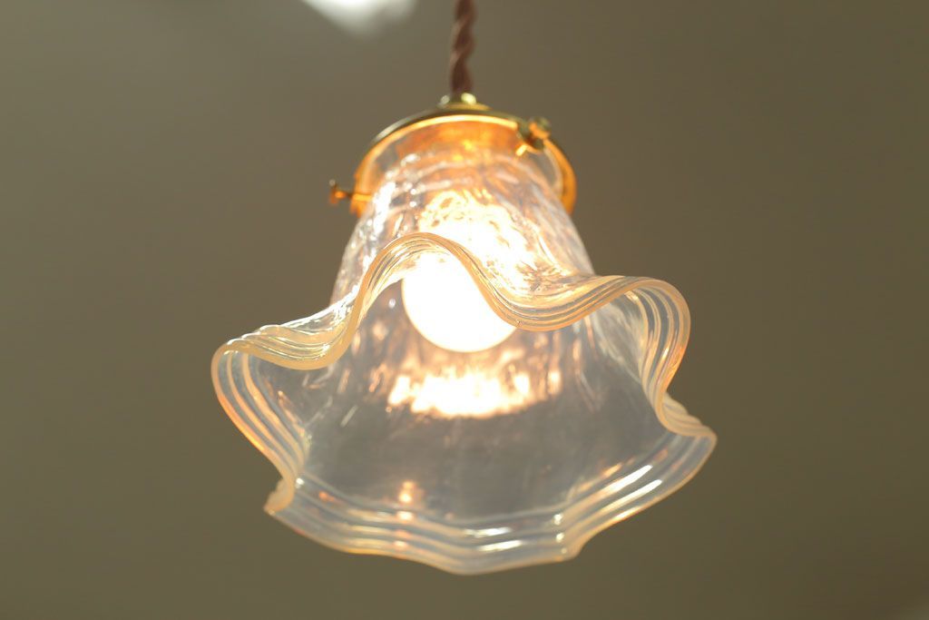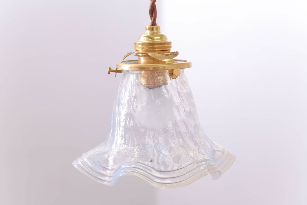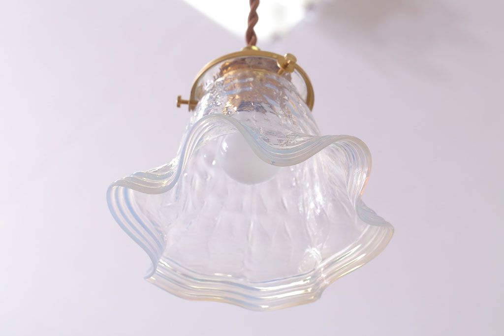 オパールセントガラスを使用したフリルシェードのペンダントライトです。