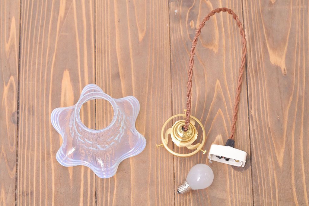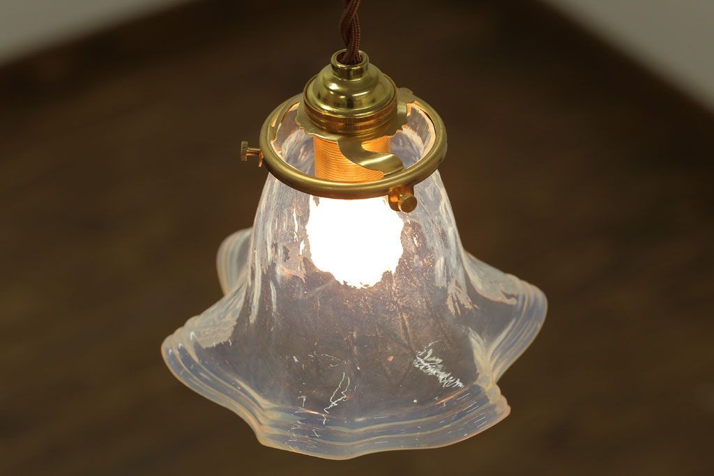 イギリスビンテージ オパールセントガラス!フリルシェードのペンダントライト