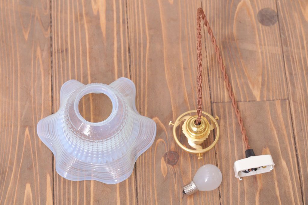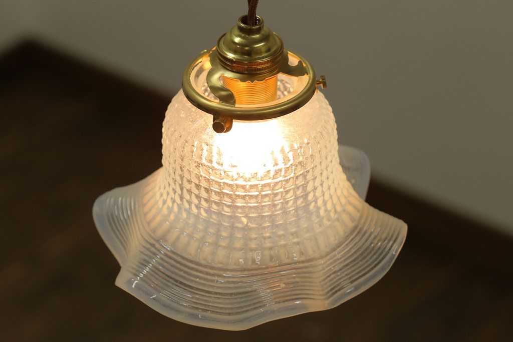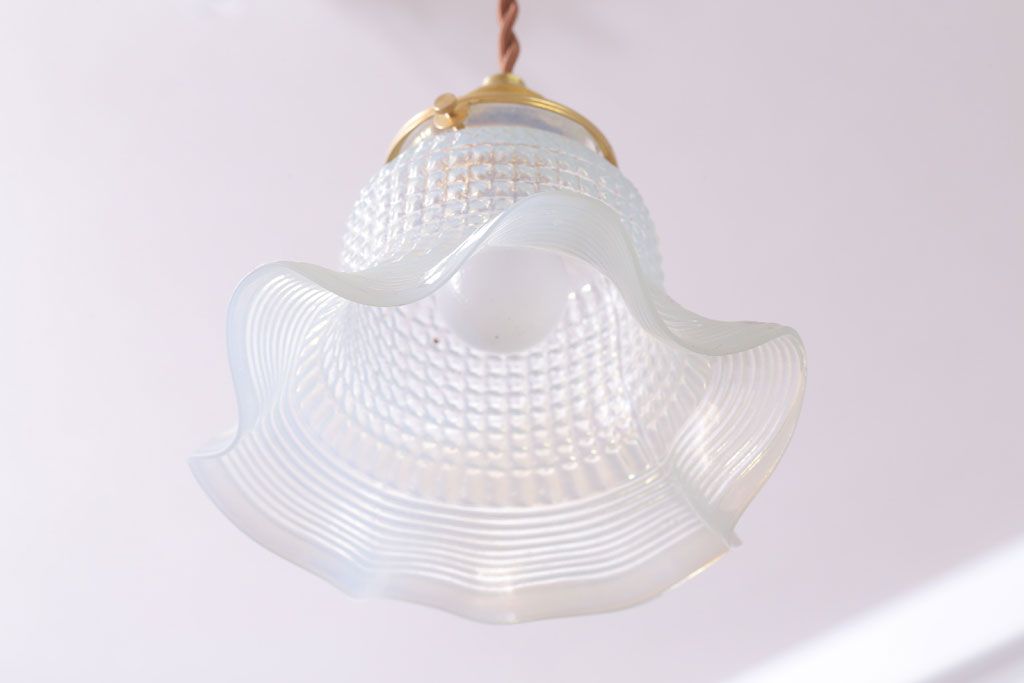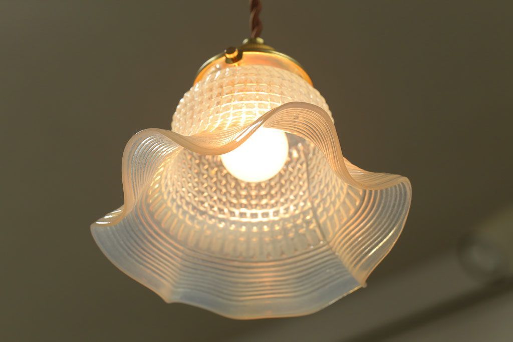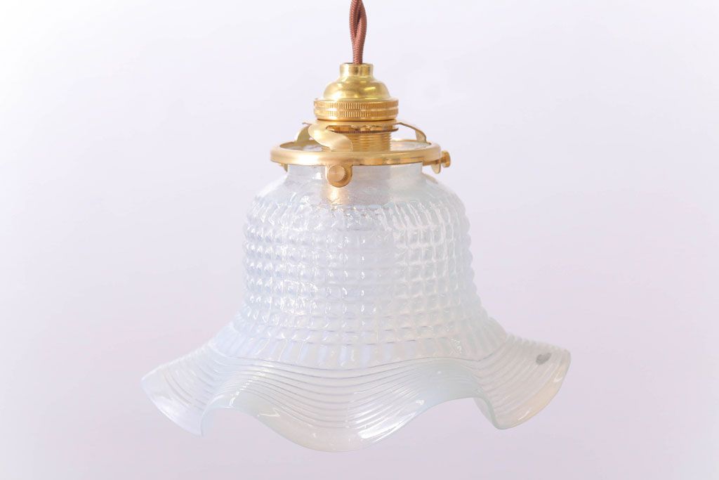 イギリスアンティーク 可愛らしいフリルシェードのペンダントライト(3)