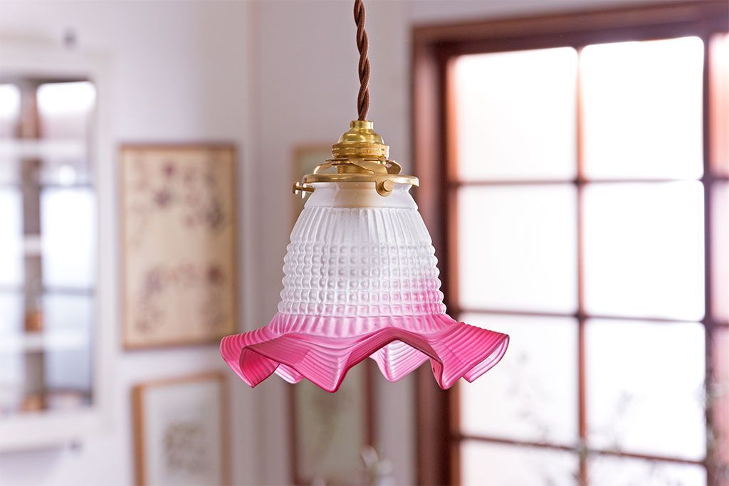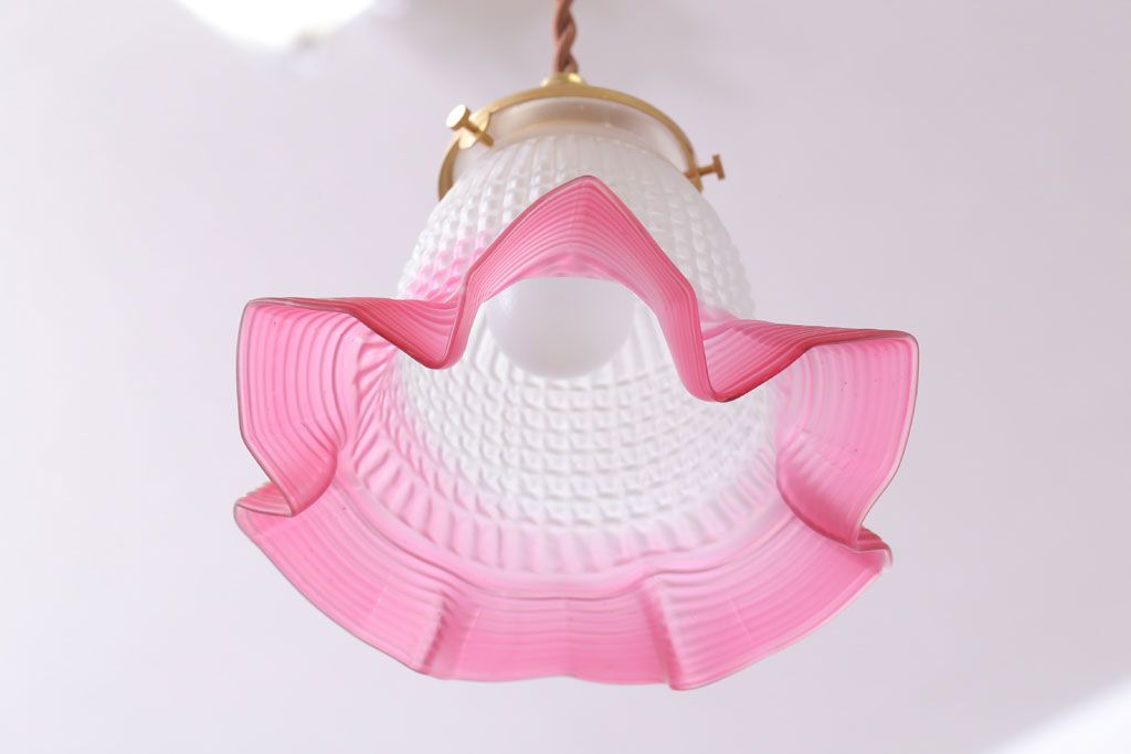 アンティーク フリルシェードの古いペンダントライト(2)です。