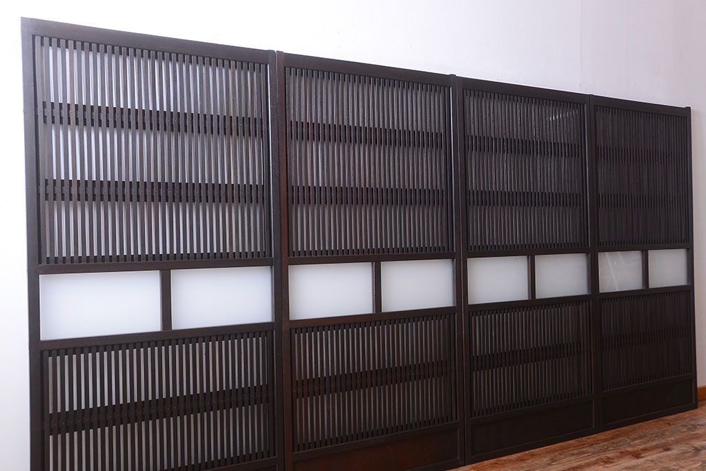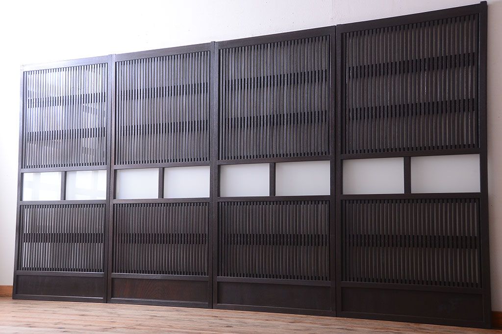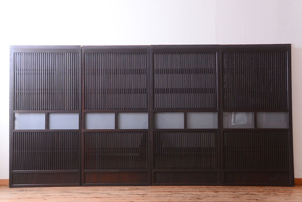 和製アンティーク 総欅材!最高級格子戸(引き戸、建具)4枚セット