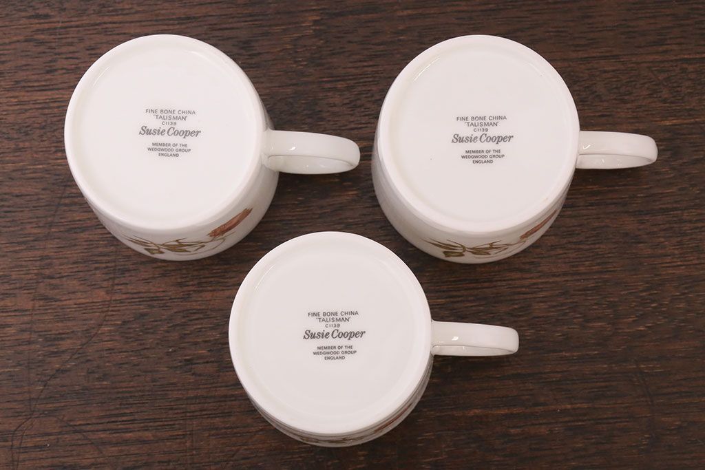 イギリスビンテージ Susie Cooper(スージークーパー) TALISMAN(タリスマン) カップ&ソーサー3客セット(1)(洋食器)