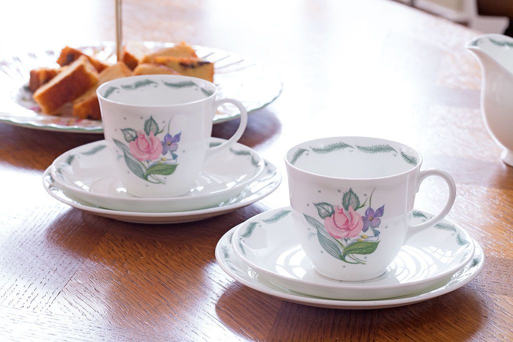ラフジュ工房> 洋食器・キッチン用品> 皿・プレート > イギリスビンテージ Susie Cooper(スージークーパー) FRAGRANCE(フレグランス) トリオ2客セット(洋食器)